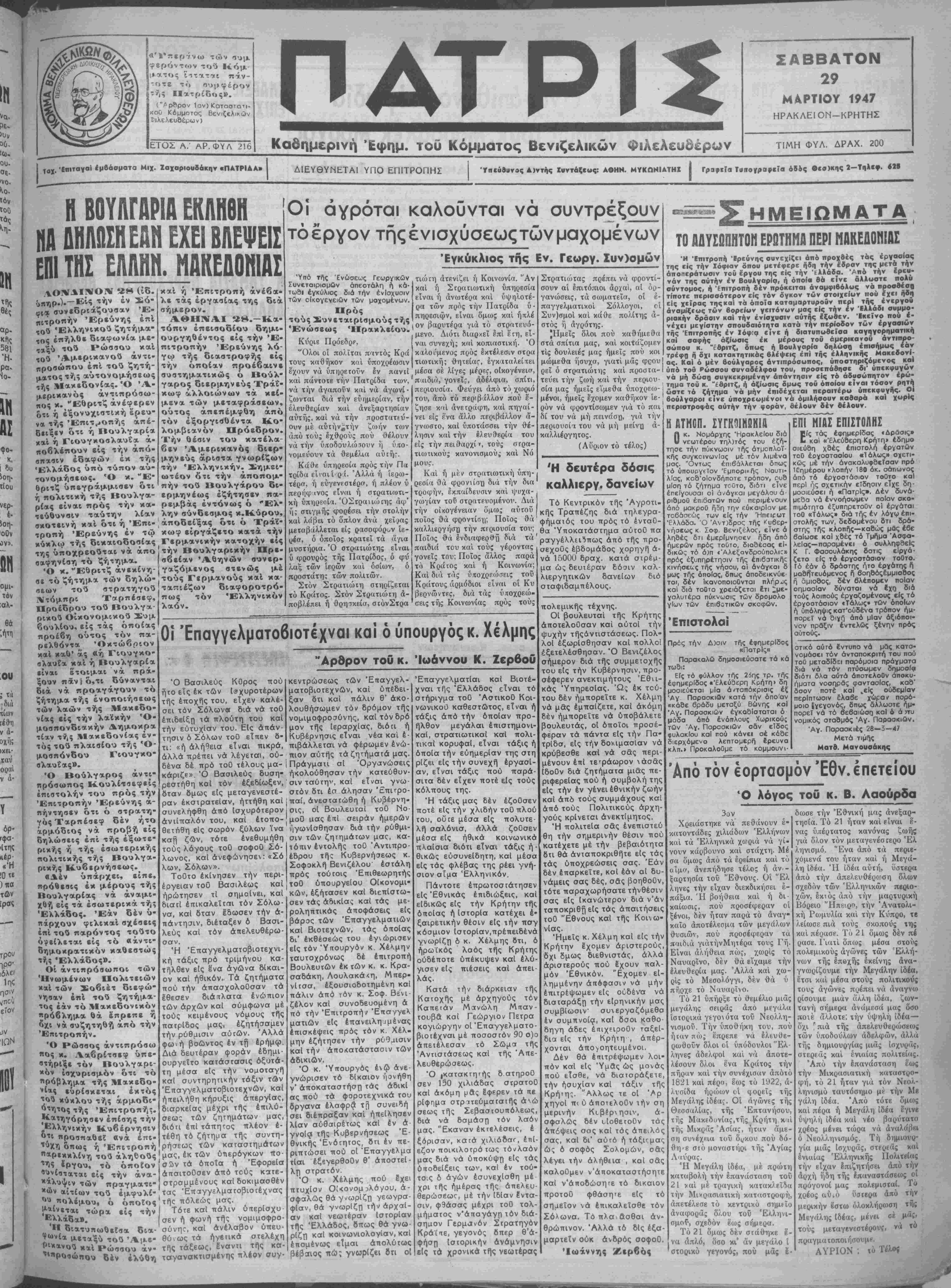 Καδημερινή Έφημ. τού Κόμματος Βενιζελικήν Φιλελεύθερον
