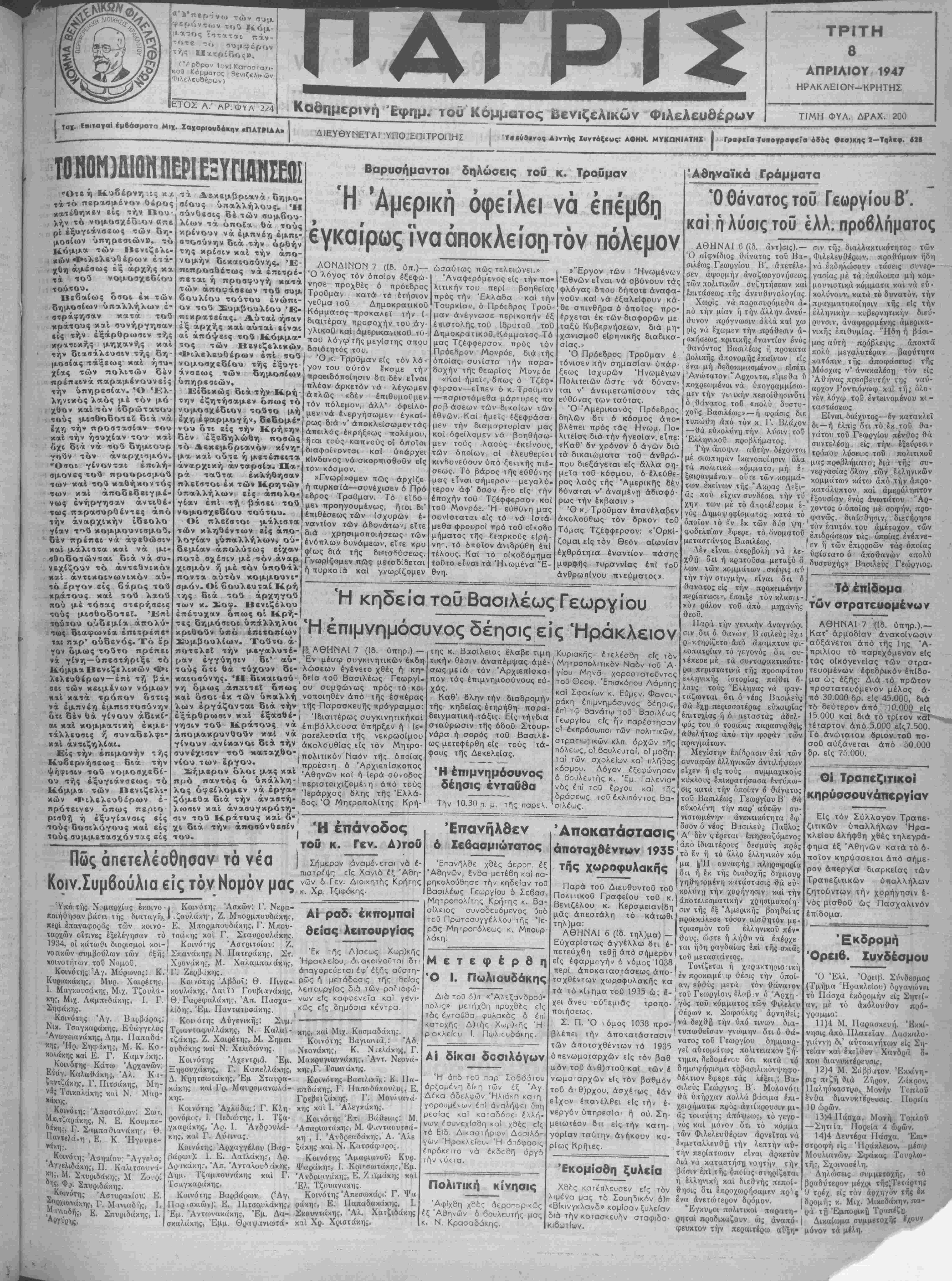 Καοημερινη -ψηυ. τού Κόυματος Βενιζελικών Φιλελεύθερον