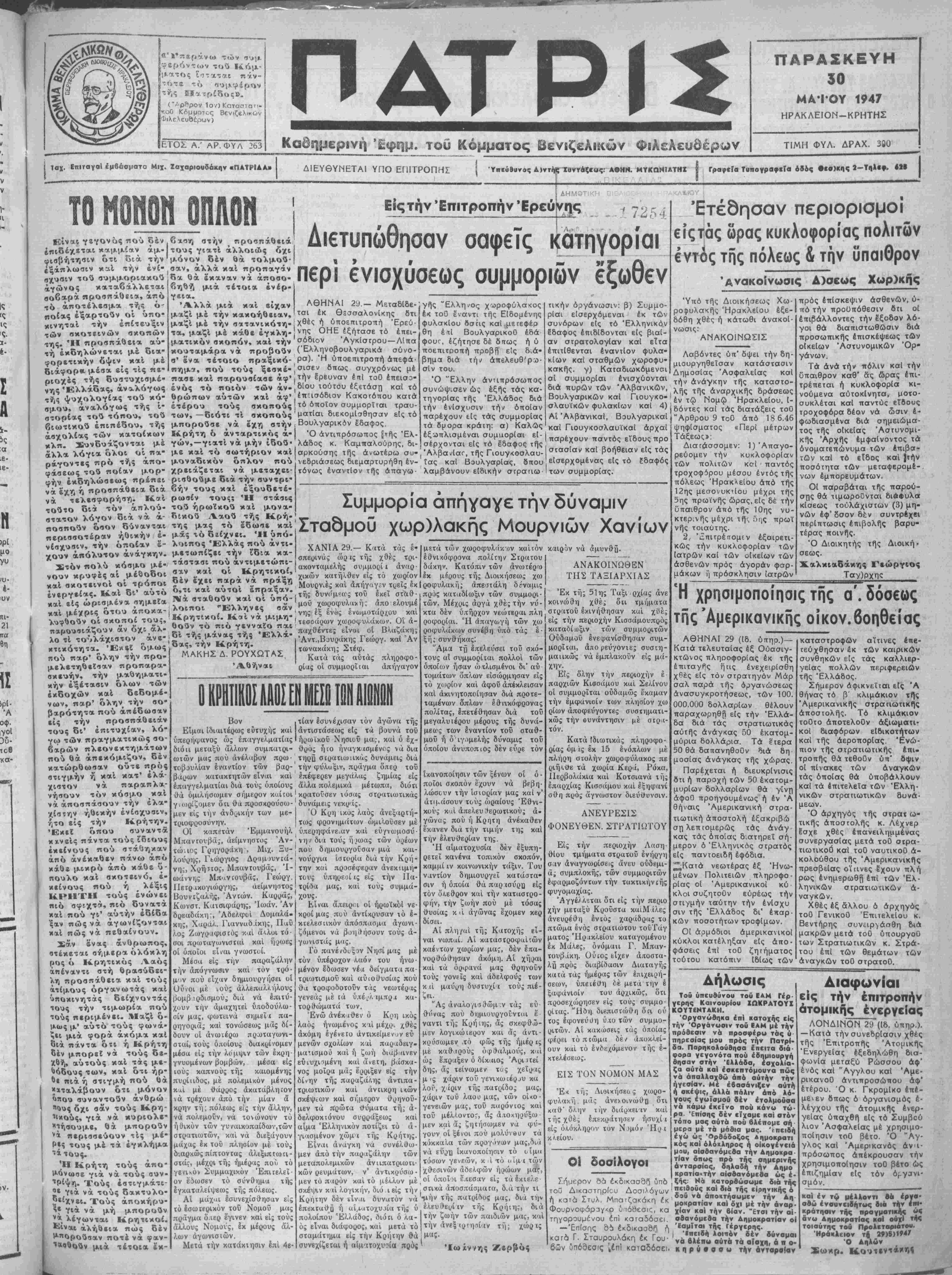 ματος Μ··..·*τ<νι πάν- ("Αρδρον 1ον) Καταοτατι- "οθ Κ<">μμοιος Βενιζελικήν