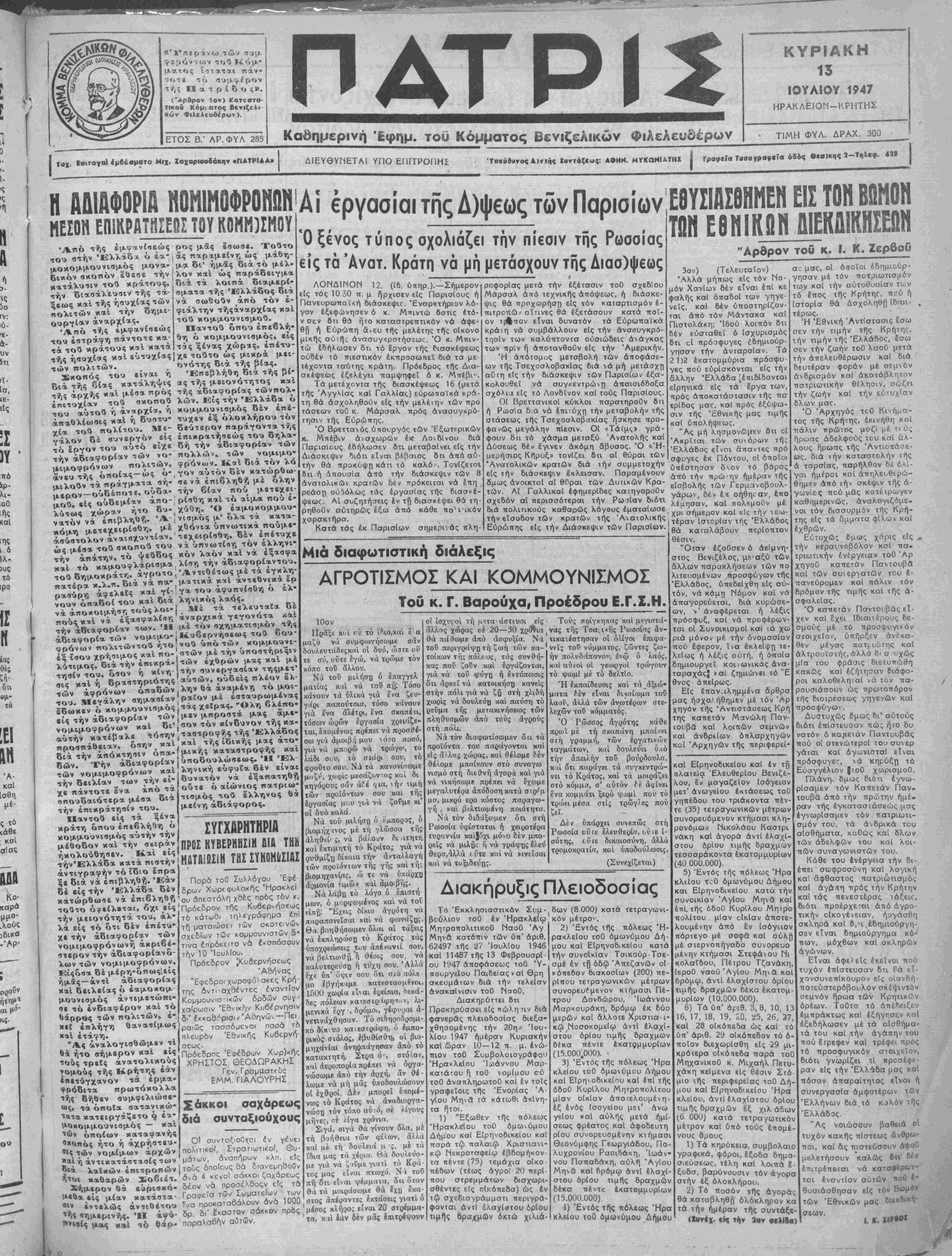 Κασημερινη Έφημ. τού Κόμματος Βενιζελικήν Φιλελεύθερον
