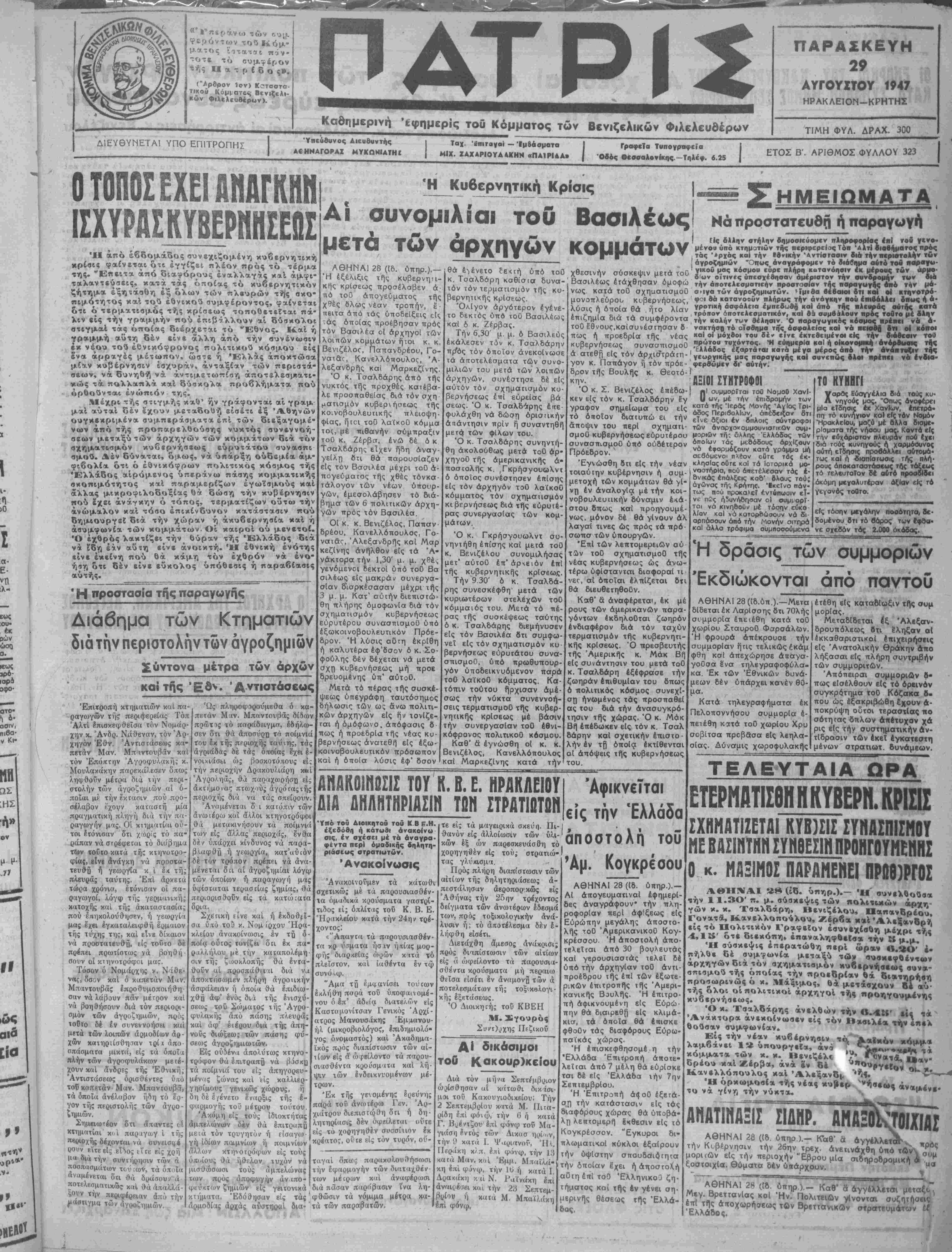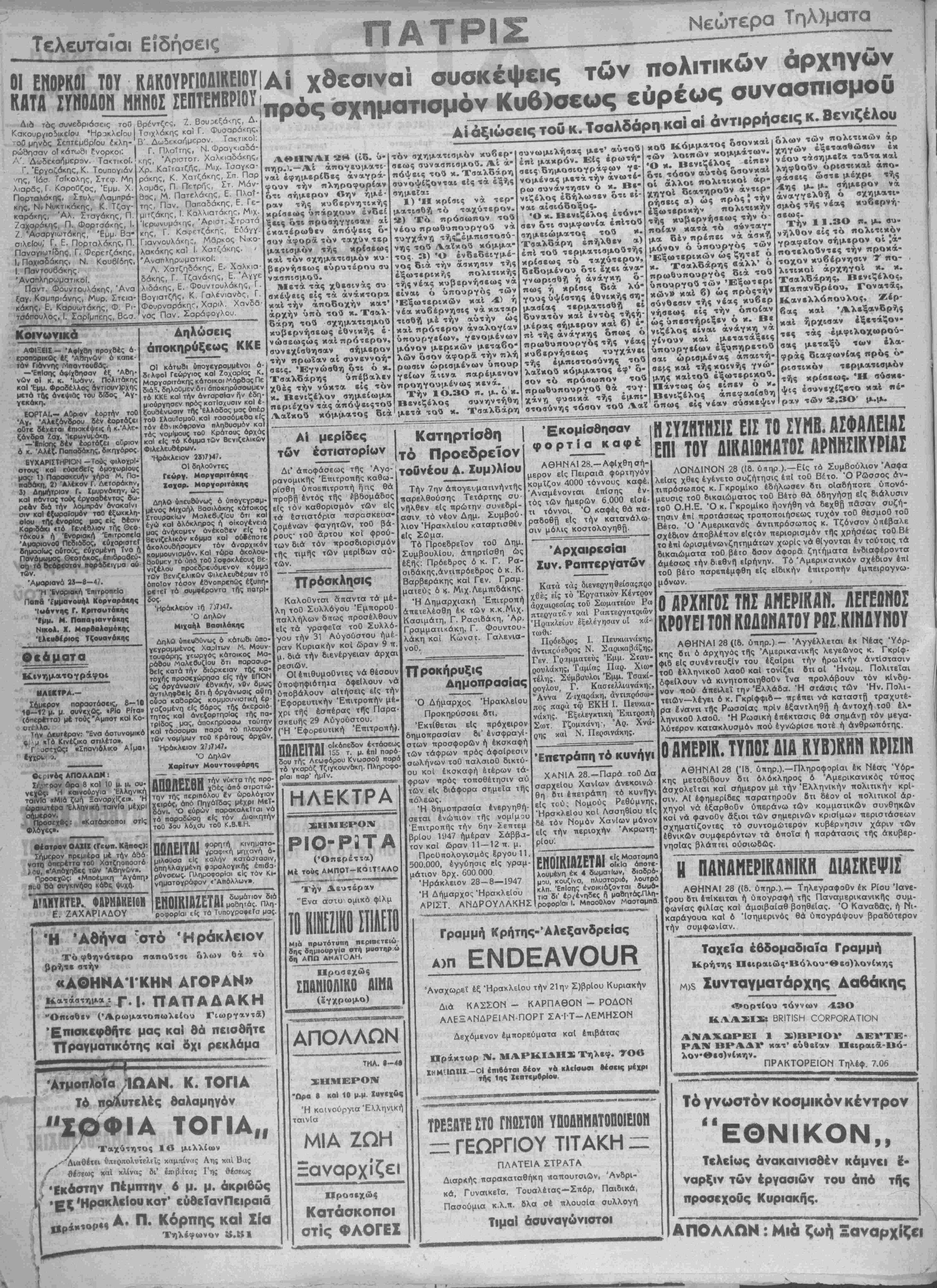 "Ηράκλειον 28-8—1947