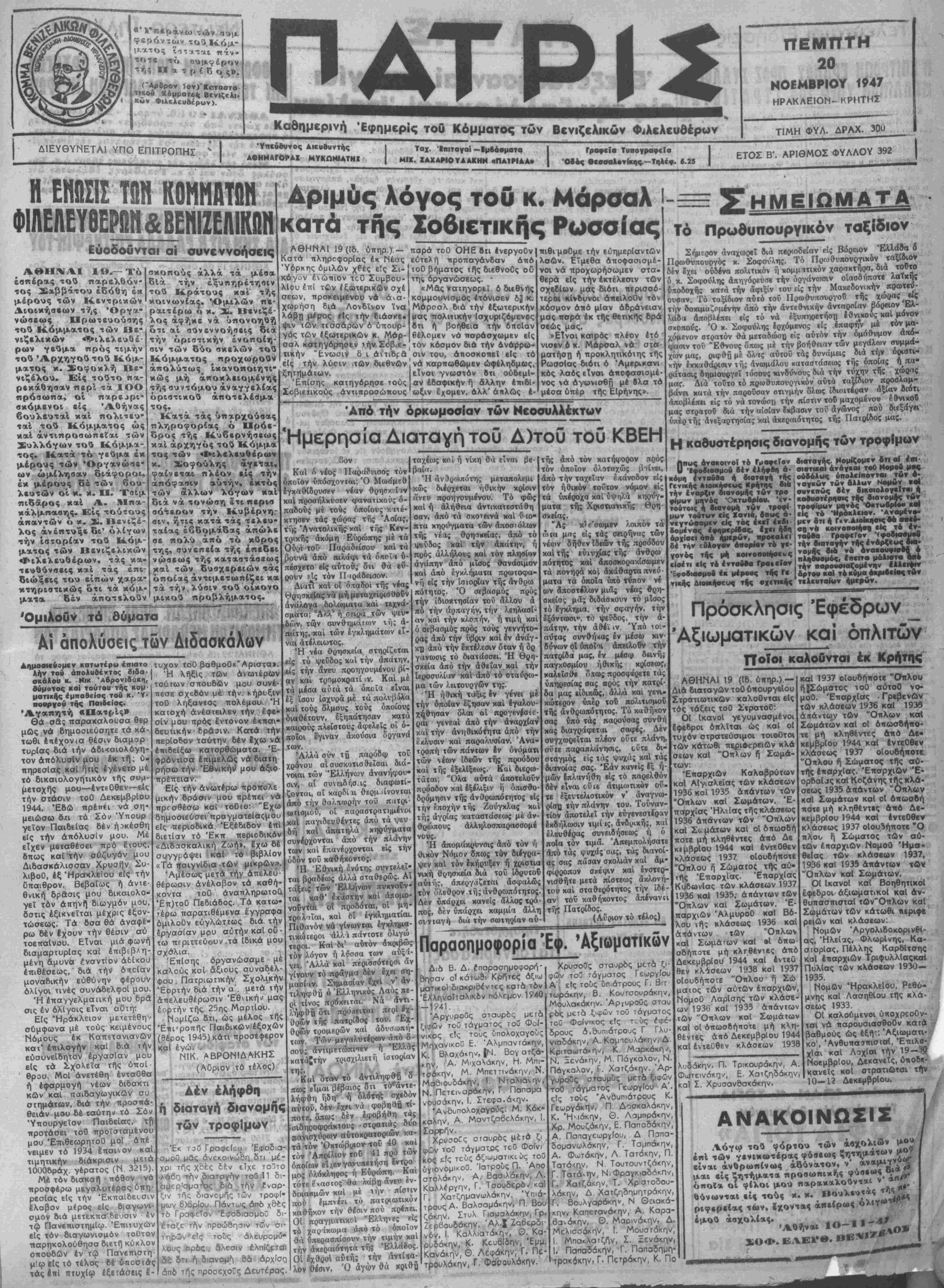 Καθημερ,νή Εφημερίς τοθ Κόμματος των Βενιζελικήν Φ,Αελευθέρων