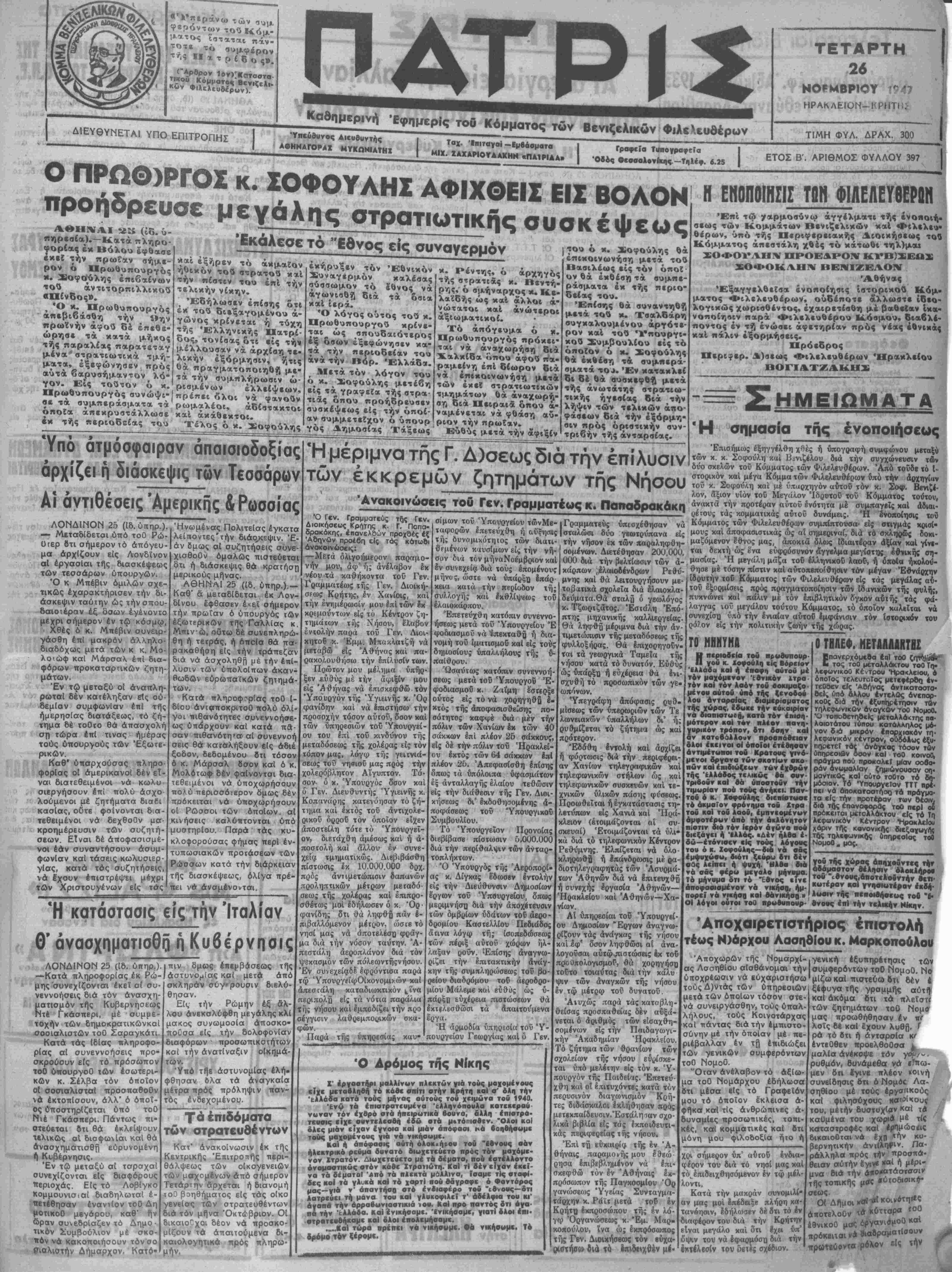τ '< ΡΑΤΡΙ ~■■*ε*ΜΗΙΙ1|ΐ—ρ~ Ι-----—----------------■------------—_-------·<°»ΐμ«Ρ<νή Εφημερίς τοθ Κουυοτ- τόν Βενιζίλικδν Φ,λεΗυβέρων Δ1ΕΥΘΥΝΕΤΑΙ ΥΠΟ ΕΠΙΤΡΟΠΗΪ >-Ί ' ^ ·»«*··" *ι..»ι«τ<κ," ,........ . ..-------------------------——------.____________-___ ———_.„_________ Ί > ΑβΗΜΑΓπεΐΛ* υ—,-.....____ Ι ** ■πιτβΥβ· —■μοασματα Ι ΓοαεΜΐα Τιη·ανΛα»··τ« Ι