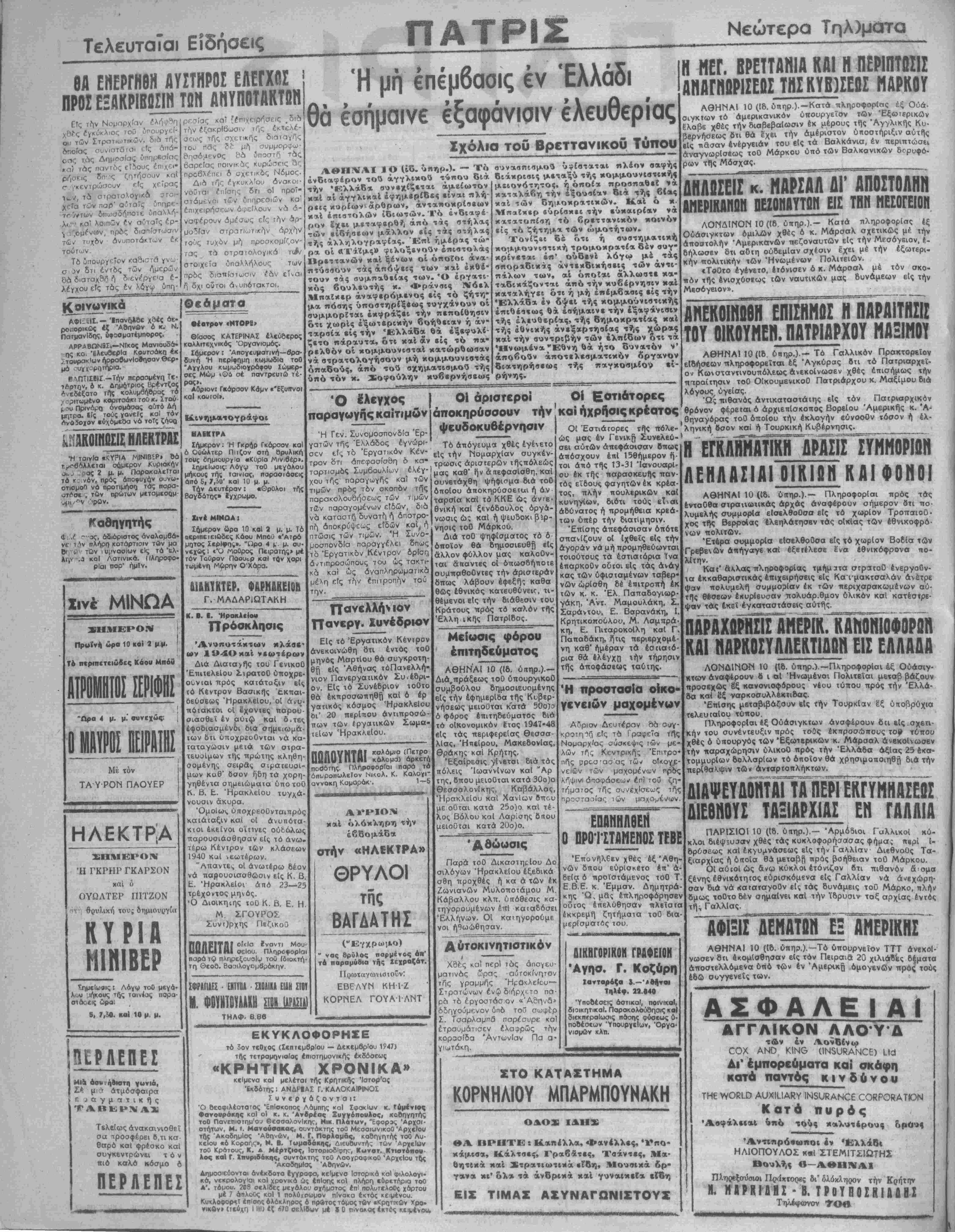 ΑΘΗΝΑΙ 10 (Ιδ. ύπηρ.).-- Πληροφορίαι πρός τάς