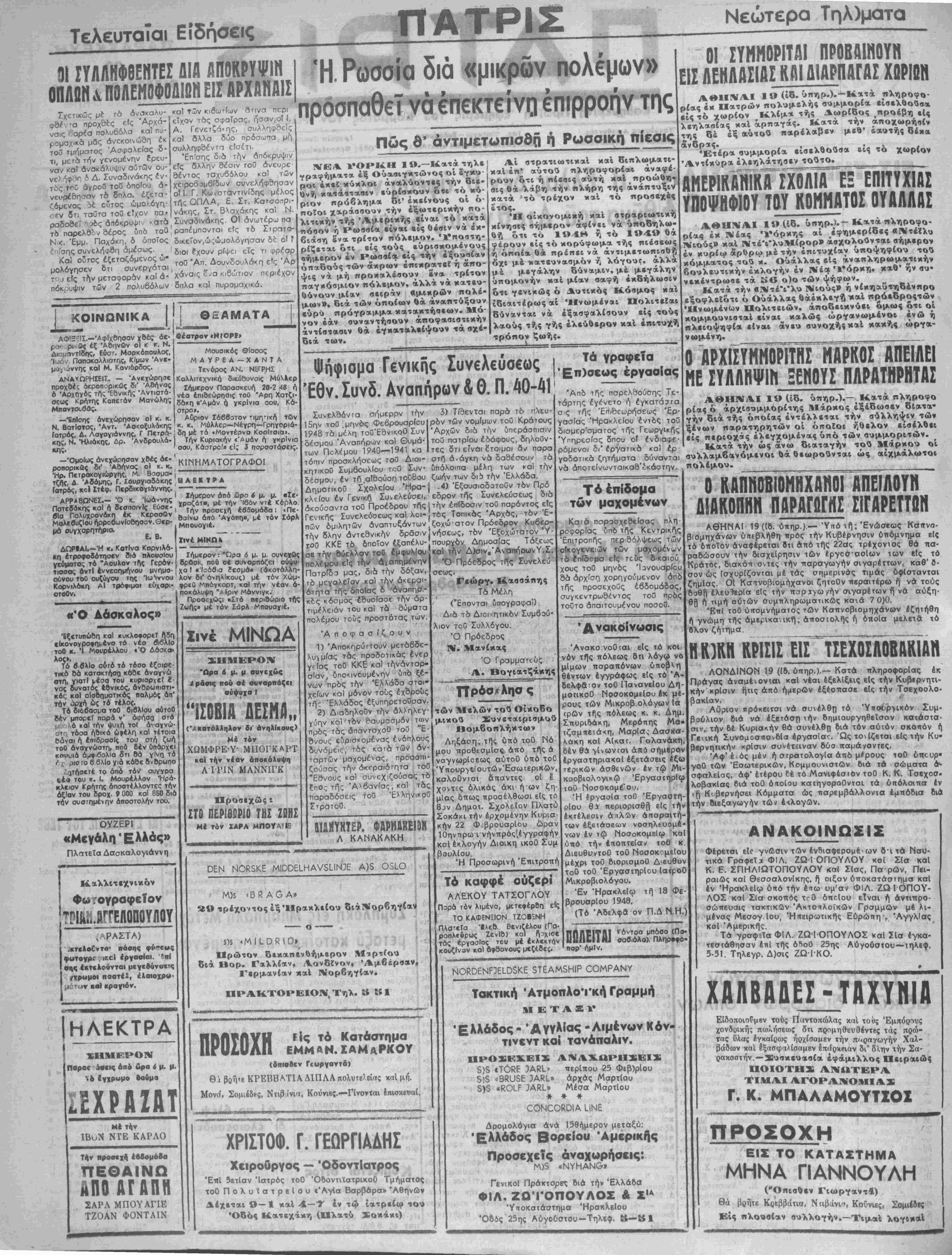 ΑΘΗΝΑΙ 19 (ΐδ. ύπηρ.).— Κατά πληροφο