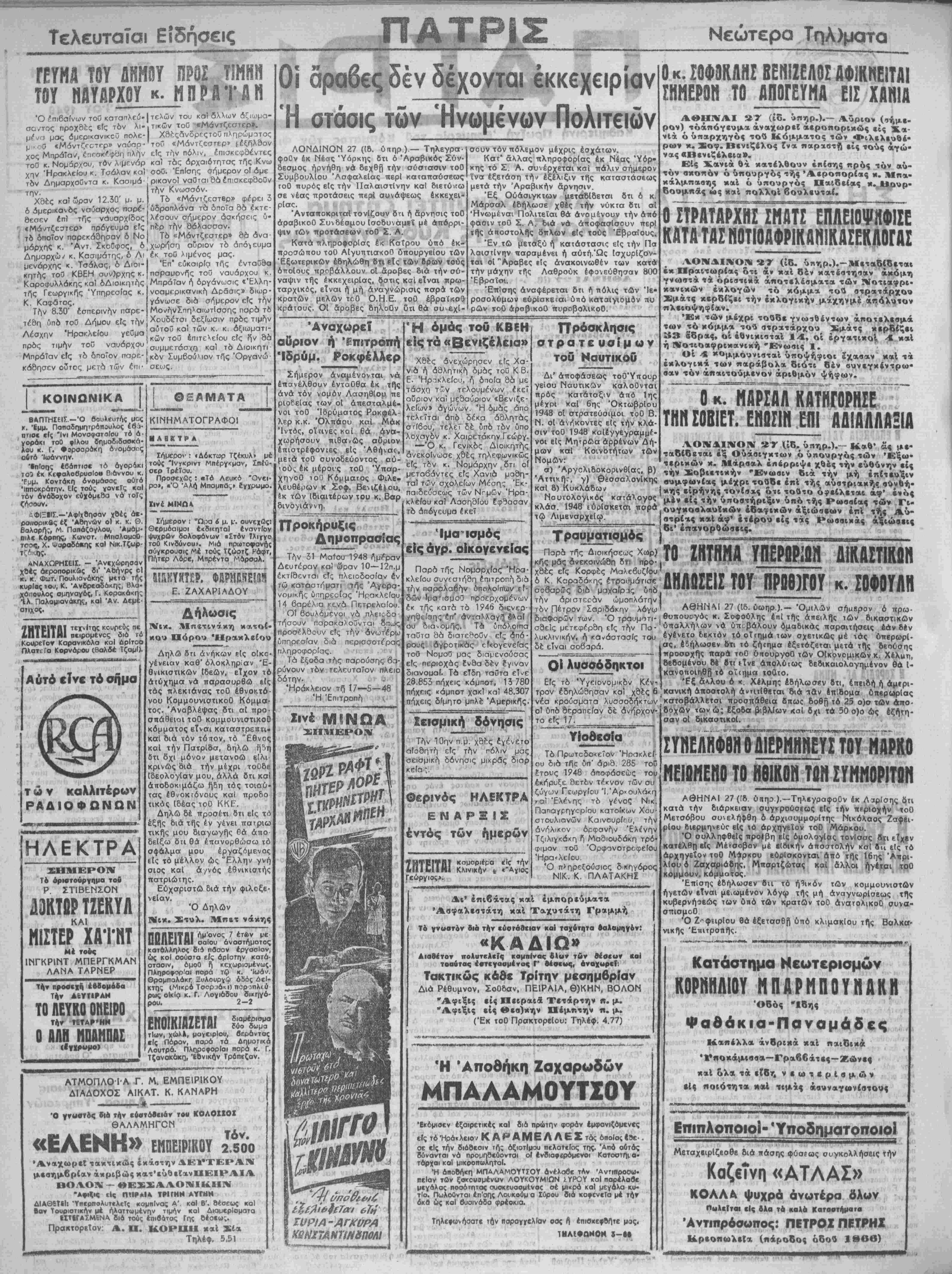 Έξ ά<λου 6 κ Χέλμης έδήλωσβν βτι, έτΐίΐδή ή άμίρι- κανική αποστόλη ά«τιτ.(θεται διά Λάν ίπ!8ομα οτιερωρΐας κστοβάλλετσι προσπαθεία δπωο δοθή τό 25 ο)σ των άπο· δοχθν των ώ; Εξοδσ β!βλ^ων καί δχι τα 50 ο)ο ώς εζήτη¬ σαν οί δικαστικοί. ΥΙοβεοΙοΓ Τδ Πρωτοδο<εΤον Ήρακλεί ου διά τήο ύπ' αριθ 285 τοθ £τους 1948 αποφάσεως τού έκήρυξε θετδν τέκνον των συ ζυγόν ΓεωργΙου Ί Άρ>οΛΛκΓ