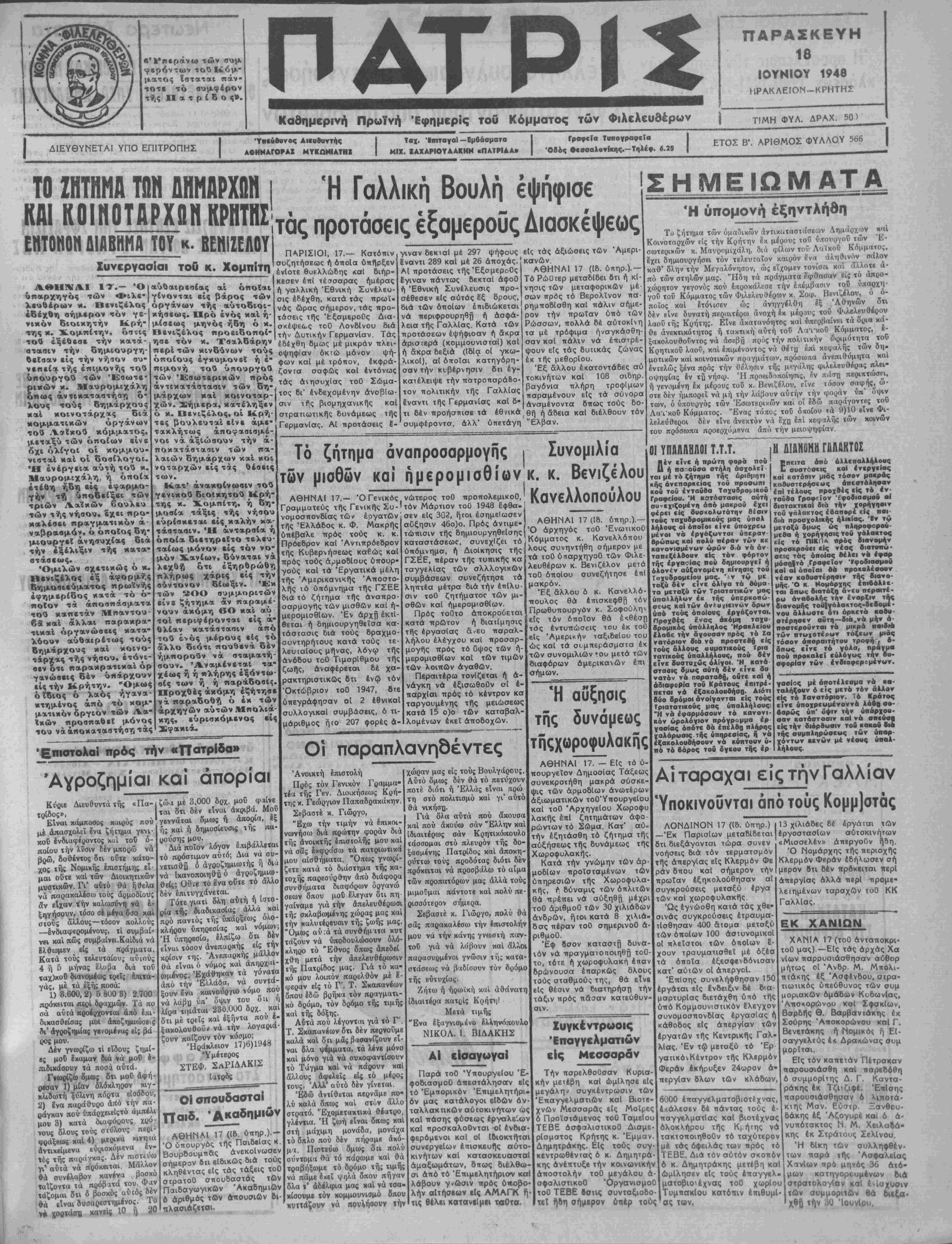 Καθημερινή Πρωϊνή Εφημερίς τού Κόμματος των Φιλελευθέρων | ΤΙΜΗ ΦΥΛ. δραχ. 50)