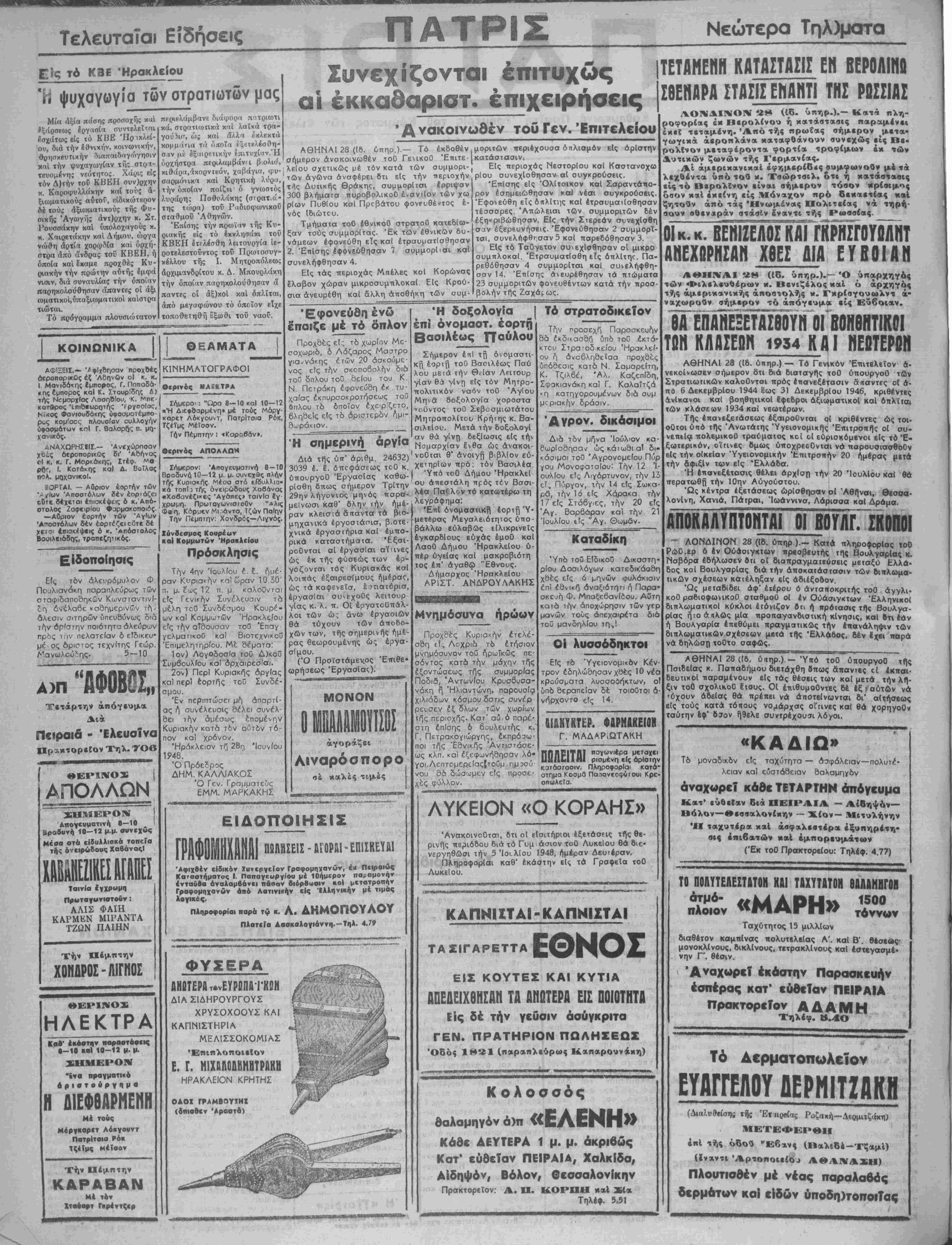 (Έκ τοθ Πρακτορείου: Τηλέφ. 4.77)