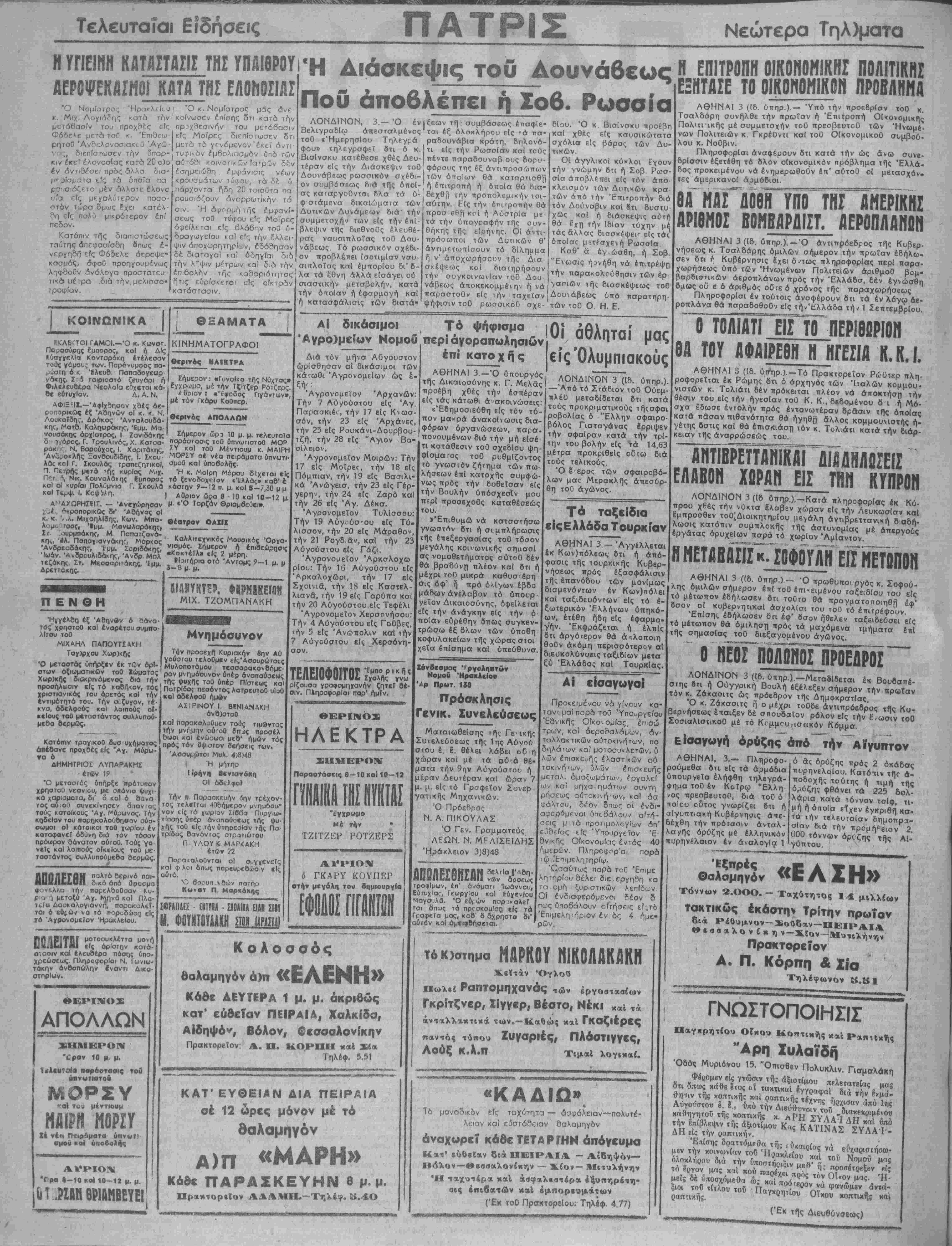 (Έκ τοθ Πρακτορείου: Τηλέψ. 4.77)