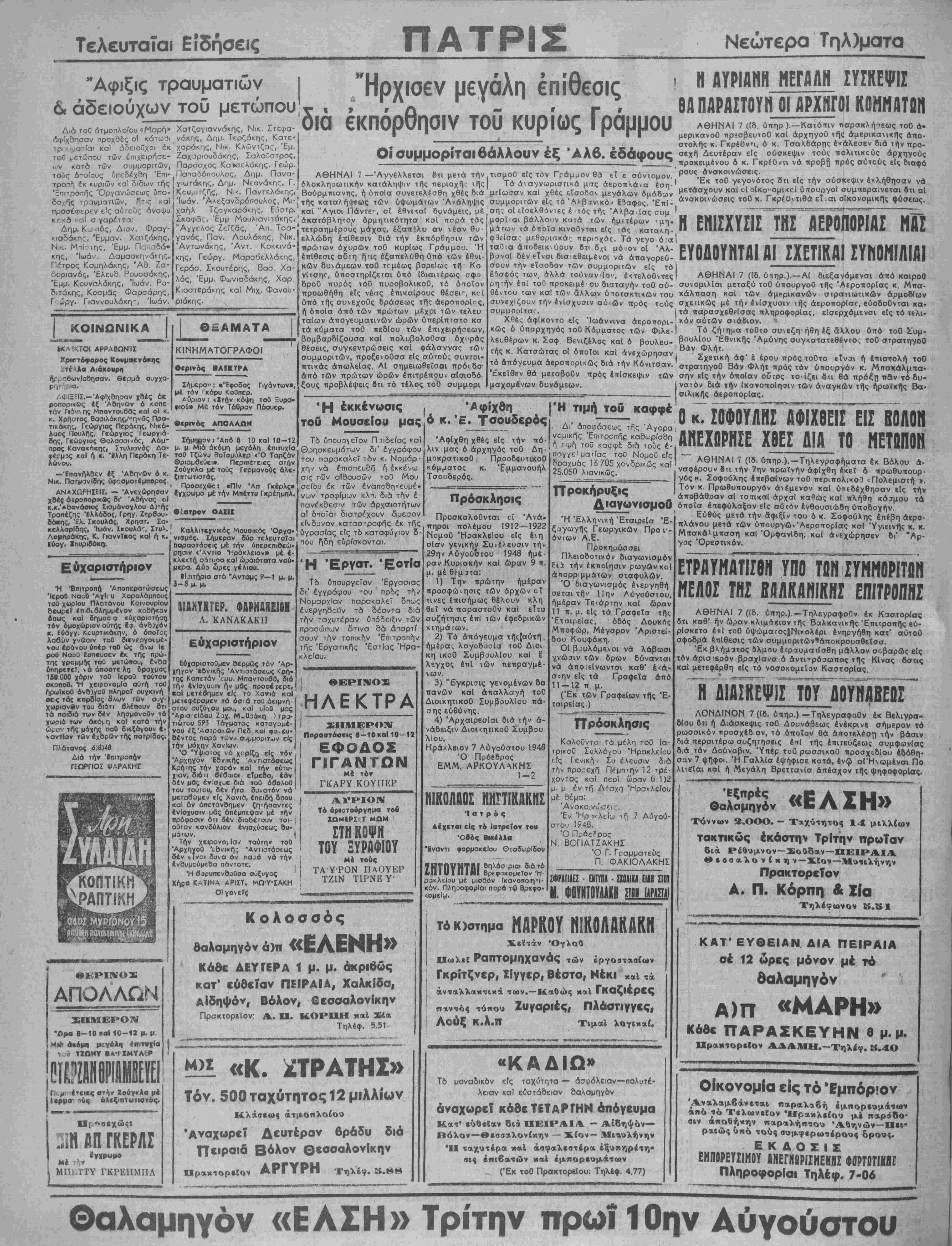 ' Ευθύς μετά την άφιξίν τού ό κ. Σοφούλης έπέβη άερο·