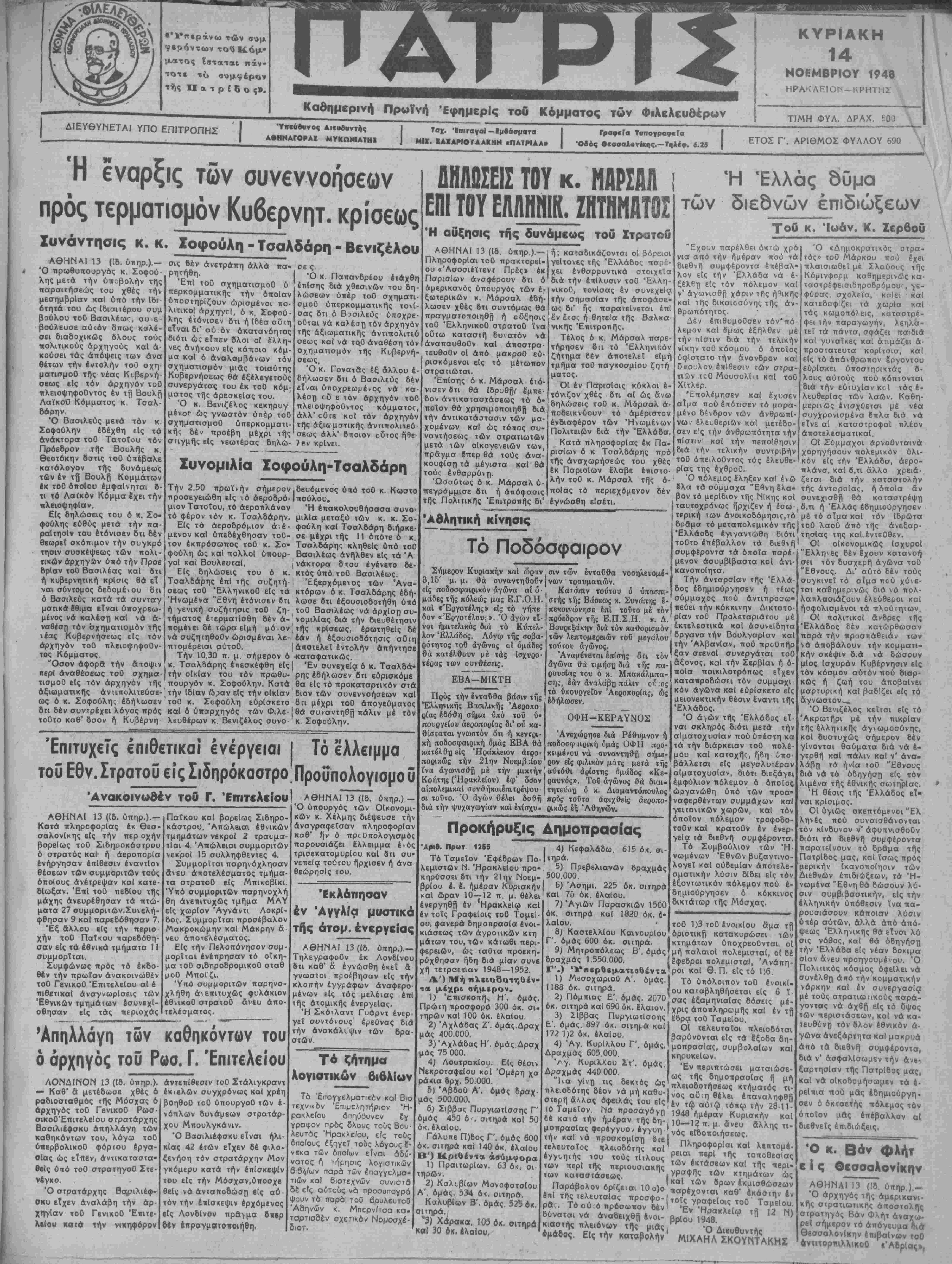 | Ό κ. Μαρσάλ ετόνισεν δτι ή διάδοσις υπό των Ρώσ-