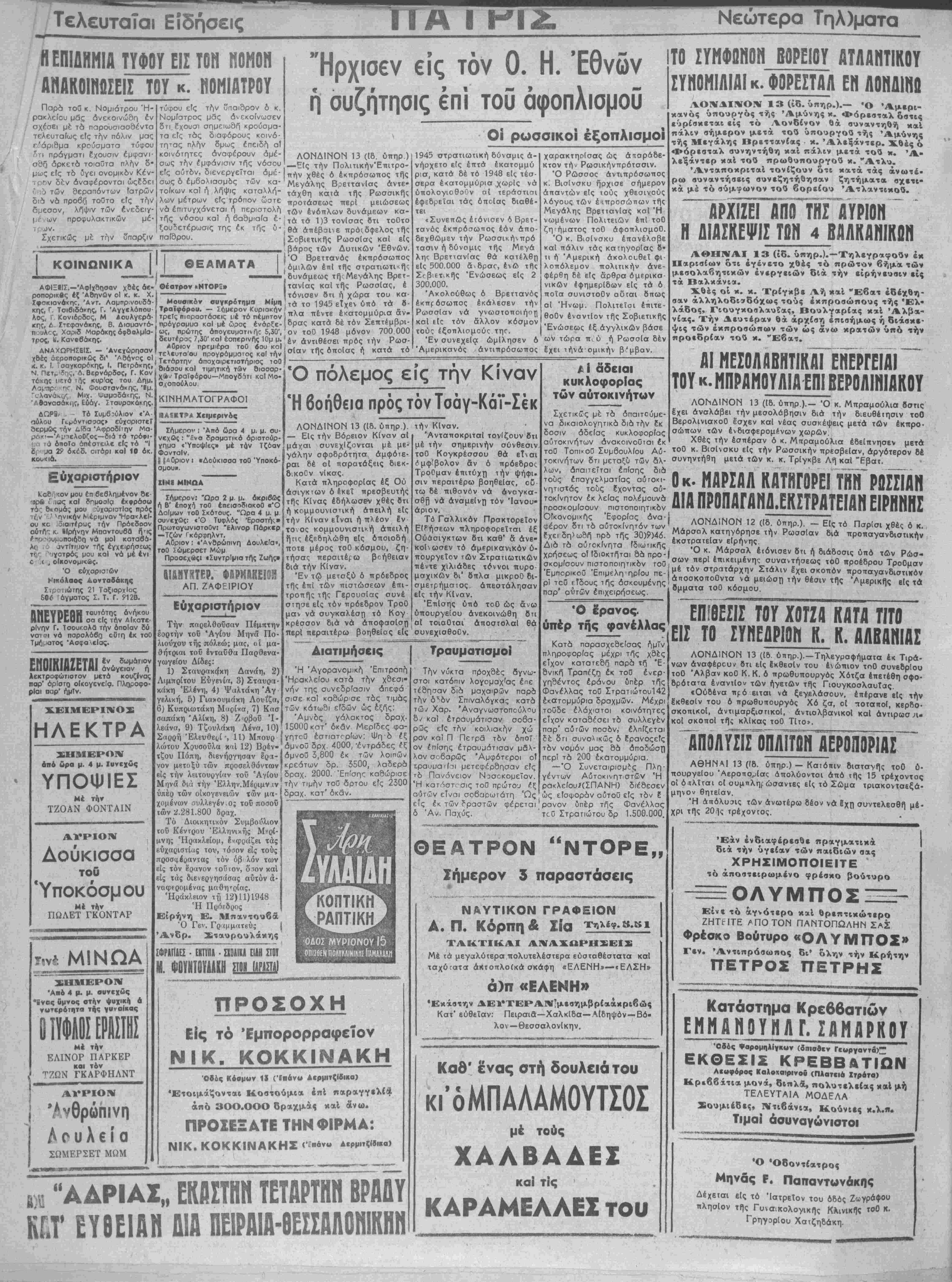 ΑΘΗΝΑΙ 13 (16. ύπηρ.).-