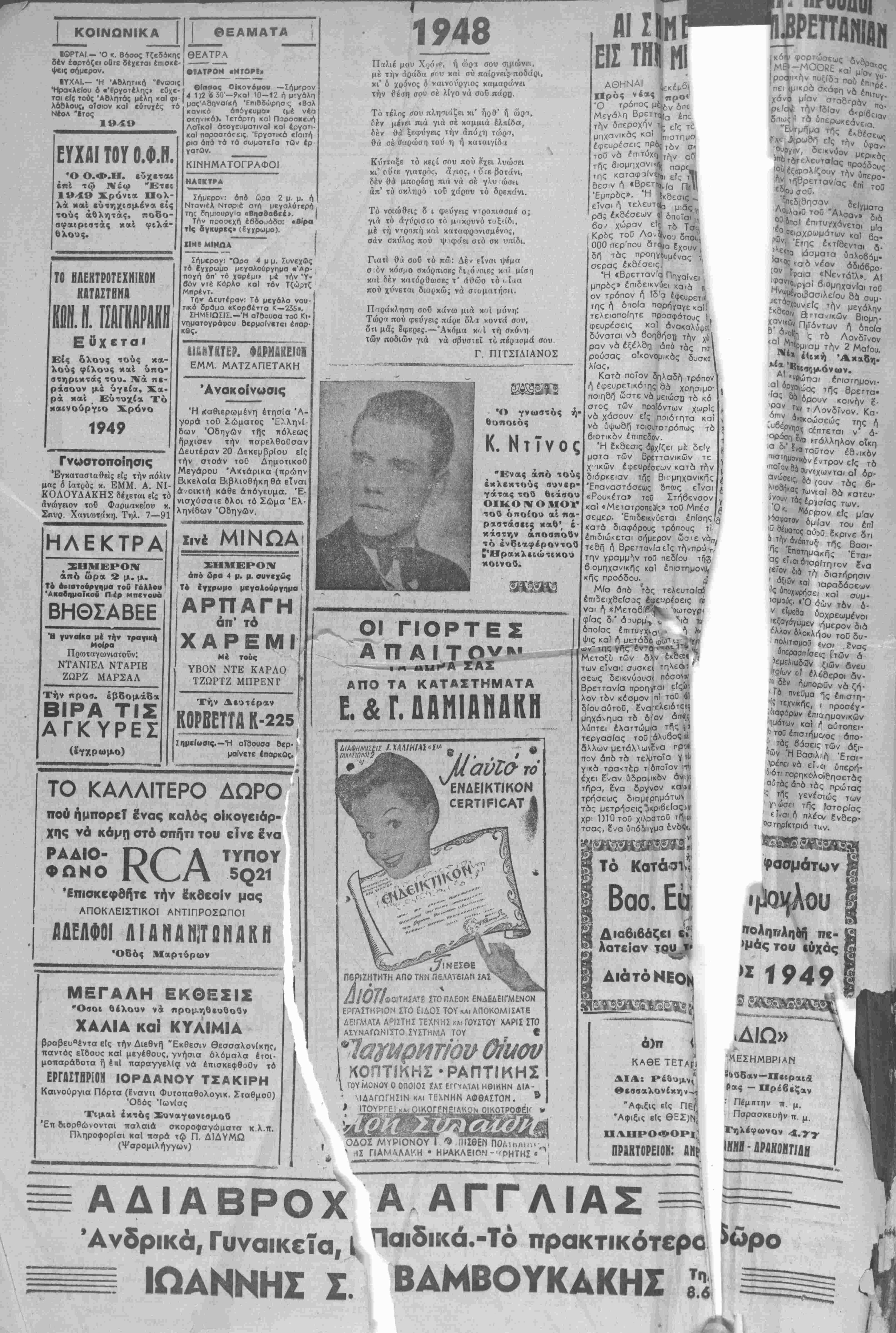 Θα: Μέ Βαθυτάτην λύπην'τ<3,ς (, γνωρΐζομίν ήρωίκόν θάνα·| τον προσηλοθς υμών συζύ !( γου τέκνα) καί άδελφο^ίί στπίντΐνοι. έπισυμβάτα τήν| 12 12 48 .Ις τάν άγνα κα- τά των άνχρχοχομμοιΐστών. '/ρχηγός Γ.Σ, ΠΑΝΤΖΗ Ταμείον ΆσφαΑίοει Τδ Τ Α Ε. προκεΐ(.νου να είς άνακατάιξιν των παλαιών ιΊσφαΧιθμέον είς τάς ίοχυούσας πέν (5) άσ φαλιστικάς κα'ηγοίας «αί είς κατάταξιν των ών τοι ού ω', παρακαλεΐ ου; κ κ. ΓρΦαλισμενους, δπς έντδς 45 ήυερών άπδ σήμ»ον $ύπο 6άλωσι δπευδύνους δηλώσεις περ) τού κατα&λομένου μηνια'ως φ'Ίρου έτηδεύμα- το<-. "Εντυπα δη^ώσε ών δύνανται νά ζΓησωτι ά τγ)ν 'ΥπηρεσΙανοϋ 'Ευπο ρικοϋ 'Επιμελητηρυ Ήρα «λε'ου δπου καί 8ουσι πα ραδώαει ταύτας ομπεπληρω μένας. Ή παρίλειψις ίο6ολί*ίς δ πευδύνου δηλώσως δύναν ται νά δχη ώς σνέπειαν τΓΐ κατάταξιν τού ιΊφαλισμένου ίς κατηγορίαν ά ωτέραν πρός την φορολςΊΚ?)ν ίκανό η α αυτού. Έν Ηρακλείω τή 31)12)48 ΕΚ ΤΟΥ Τ-,ΜΕΙΟΥ τάς ενεργείας τω- καί δέν άνα 'θ ζω ταύτας ός ίΐαιδιά μου Την χειρονομίαν ιου ταύτην ά φί ω είς την κρί*ν τή; ύγιούς κοινής γνώμης Έν Άνων8(οιςτΒ26 1948. Ό δτλών ΙΩλΝ. ΚΛΑΔΟΣ Τ Ή Καπνοβιομηχανία ΜΑΤΣΑΓΓΟΥ Εϋχεται είς τούς^πνοπόλας καί καπνιστάς ειϊτυχισμένον καί χαρούμκνον τόν κόι^ούργιο Χρόνο. νωσιν ιοι σχαν ύπε άνταλλαγ^ καί Γιουγΐί Είς την] γφ τής έχΐ! δεικνύει έι στη σχεδόι τω τό ύΐΐσ| ιλαβάνεΐ;) ρές μικρόν π ι ιθογ, ύττέγραψ! ΐ0 ΰπουργεΐου , μβτά την ύηο Γιουγκοολαυ' ΔΪίΓοΤ» ΕΠΙ ΓΤΡΛ ΑΘΗΝΜ ημ πιτελεΐον ( πεφάσΐσαν Β λογοκρ'οία έι φύσεως εΐδήο ι —--------------------- «Μ) (ίδ.« ύπηρ.)-. Τό Ρώυτερ Ι# ο έξ Ού^σιγκτων δ τι ή έττα- ς συζητεΐ τό Ατλαντικόν τάς εργασίας της "ίνα :»αΙ υβερνήσβις Ήνωμένων Πολι- Μεγάλης Βρεττανίας καί < Μπβνελί-ύξνά μβλετήσουν ;τής Έπιτροπής. αί έργαοΐαι διά την εχουν έπΐτελέσεν λ δέ ότι οί ένδισ- ;θά συζη ήσουν λε- >υ μεταξύ των