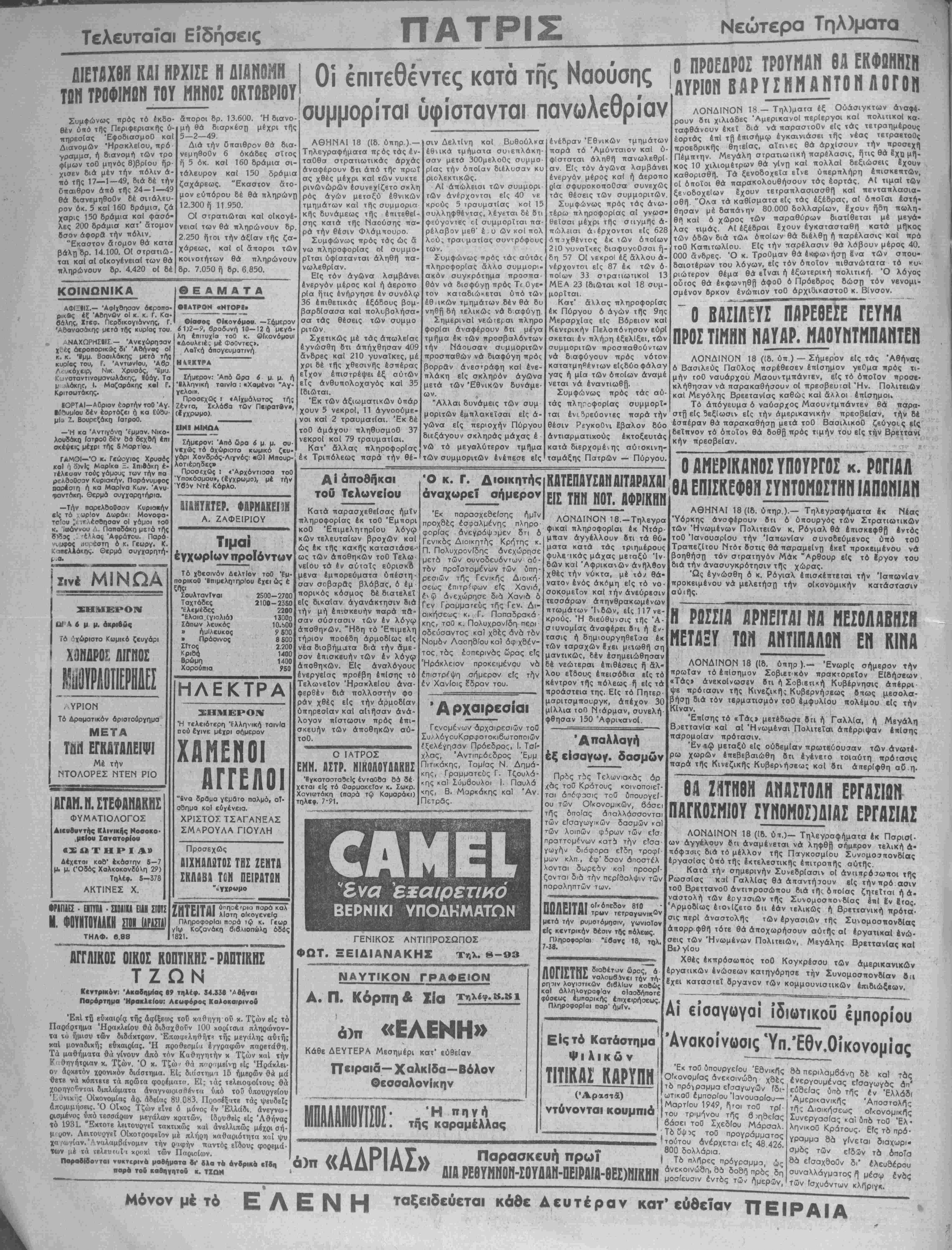 οί<ονομικής ΰπ6 τοθ Έλ· — - — ^ - ^^ ^ ^ * ι ^^ ι Άμερκανικής τής Διοικήσεως Συνεργασίας _ Μόνον μέ τό ΕΛΕΝΗ ληνικοΰ Κράτους. Είς τδ πρό· Υραμμα 8α γίνεται διαχωρι- σμδς των είδ5ν τό 6ΐτοΤα δό είσαχδοΰν δι* έλευθέρου συναλλάγματος Ι] μέαφ ένδς Των ίσχυόντων κλήοιγκ. κάθε Αευτέραν κατ'ευθειαν ΠΕΙΡΑΙΑ
