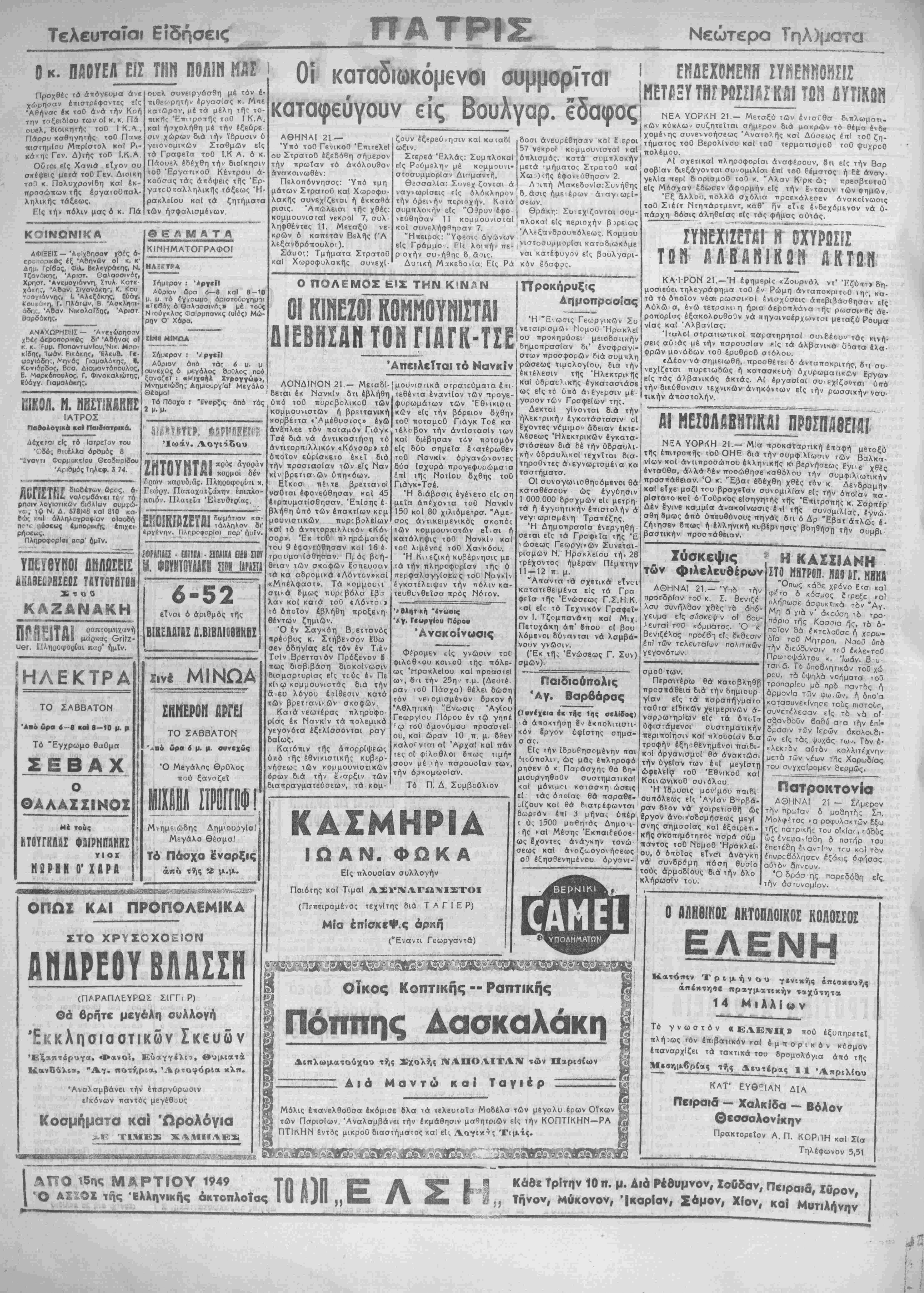 ΑΘΗΝΑΙ 21.— "Υσί> τρ)-