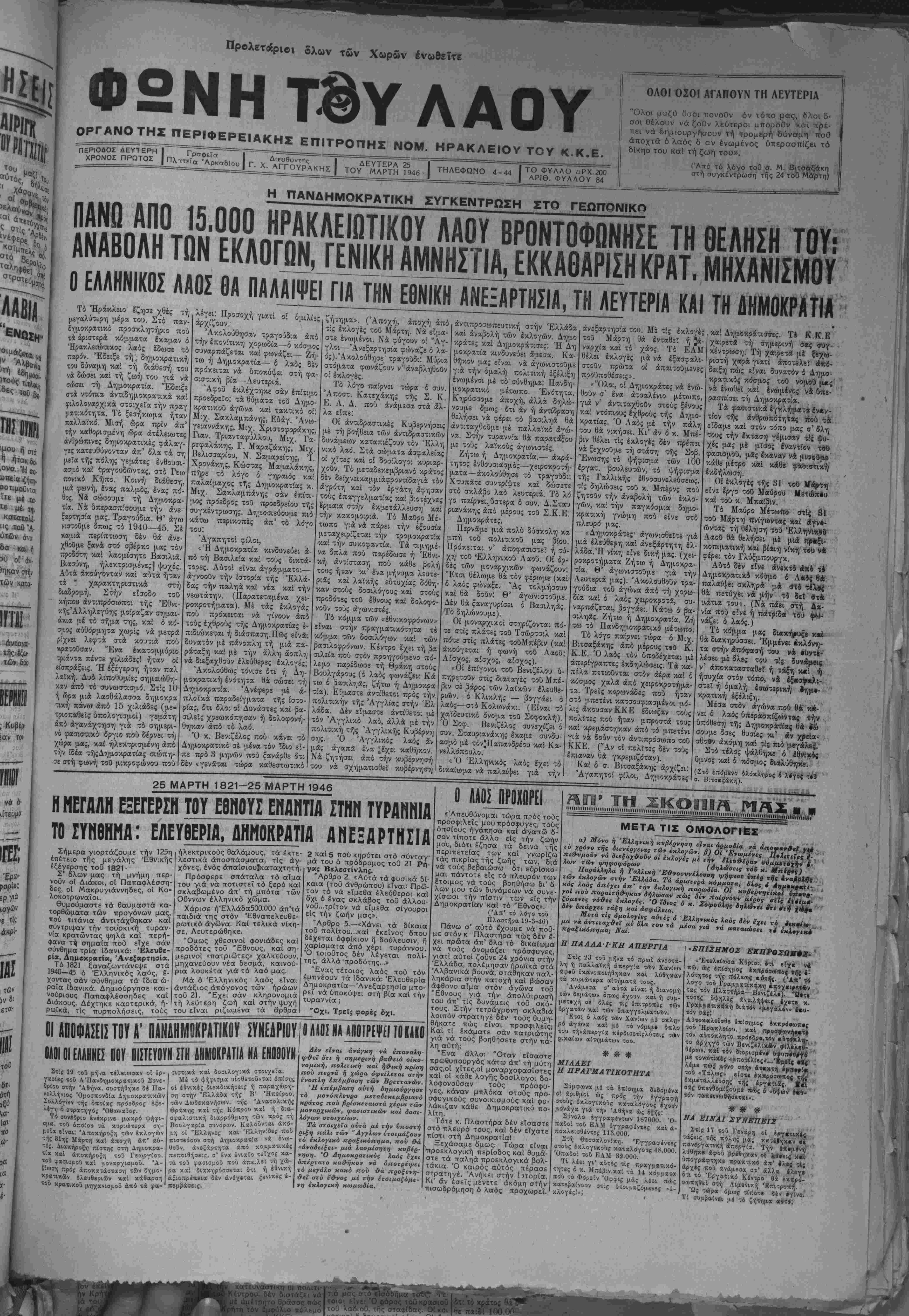 μάζεται «έκλογές τής 31 Μαρτίου;ΐ946», καί διατρανώνουν