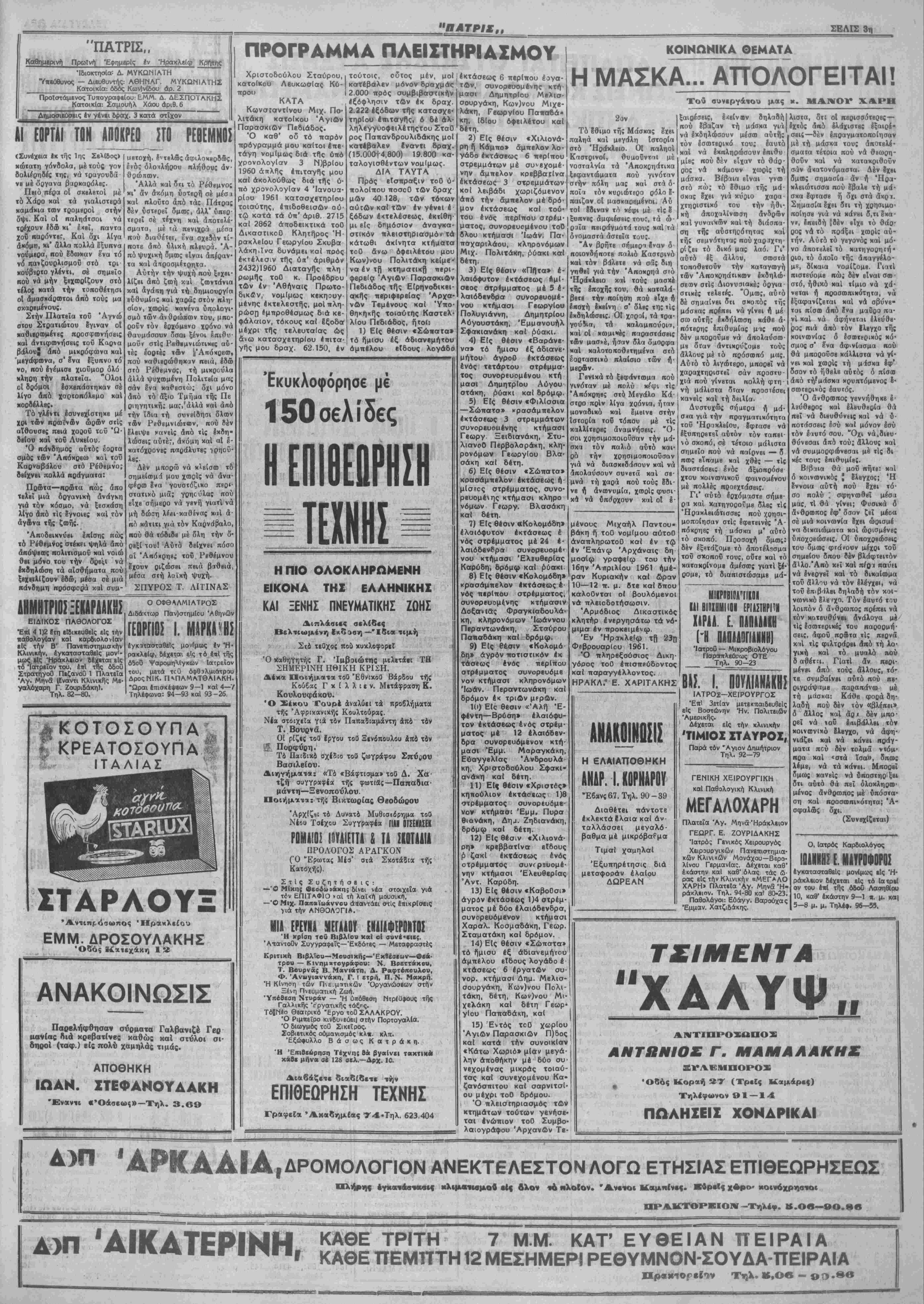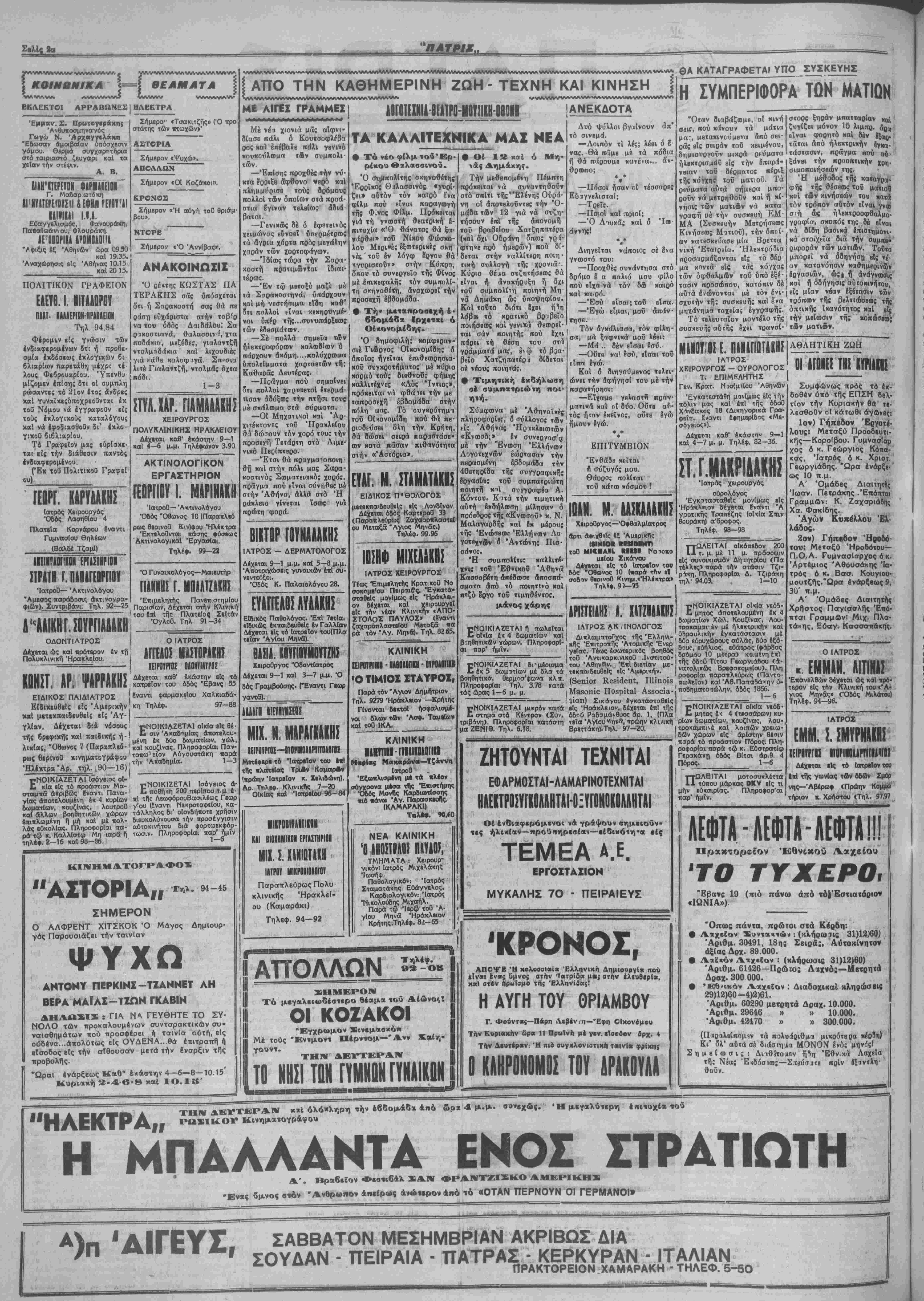 βιατ·θέννα<ύηέρ τής 'Κ- ^ηαρχίας χονδύλια διε- βπαθίαθησαν άνευ προ- γραμματισμοΰ ώατε έ λάχιστα άπέδωσαν. Ή μη ίερΑρχησις των Α- ναγκώ» τής ύηαίθρου και ή Κλλειψις προγραμ, ματισμοΰ κατέστησαν δώρον άίδωρον τας έηεν δύσεις είς την *Έπαρ- χίαν καί δέ» έπέτρεψαν την ίσόρροπον καί συν- τονισμένην Ανάπτυξιν των διαμερισμάτων τής χώρας. Άηοτέλασμα τούτου υπήρξεν ή ύηερμετρος αύξησις τού πληθυσμόν τού Κέντρον μέ αντί¬ στοιχον έρήμωσιν τής ύηαίθρου. Ου τω έδημιουμγή- Θησαν πολλΑ οημογρα- «ρικΑ χαί κοινωνικόν προ· βλήμ,ατα τΑ ό ποία ϊ· λαβαν επικινδύνους δια σνάσεις. Όλαι αί δρα- στηοιότητες (χούν συγ- κεντρωθή <ίς τό κέν¬ τρον μέ Αηοτέλεβμα τόν ύδροκεφαλισμόντή'ς' πρωτευούσης καί την συνκχή έξασθένησιν τής ύηαέθρου. Χαραχτηρι- στικόν είναι έ* προκει- μέ ω ότι καί αυτή Ακό- μη ή Γεωιονική Σχο- λή λειτουργεί είς τάς ' Αθήνας! Έν πάση πε ριητ—σει ή συζήτησις • Ις την Βουλήν οίανδή ποτε εξέλιξιν χι' έ*ν| λάβη, θά κατασταιλάξη' αναμφισβητήτως είς τό συμπϊραομα δτι ή Έλ ληνική έπαρχία ϊχει τε¬ ραστίας Ανάγκας καί δτι Απαιτείται εύρυς προ- γραμμττισμος κβί £ηΙ· πονος προσηάθεια διά την Ανασυγορότησιν της κβί Αξιοηοίηαιν των δυ· νατοτήτων της.* Έη' αυτού ομως γεννάται τό Αρώτημα: Είναι ·ί; θέσιν ή παροϋσα Κυ¬ βέρνησις νΑ αντιμετω¬ πίση τό Θίμα τής Έλ- λη»ι«ής Επαρχίας; Δ'ότιέηΙ& Χτη ούδε* έπραξεν. Επιπροσθέτως ευρί¬ σκεται είς τας 5ν>αμάς