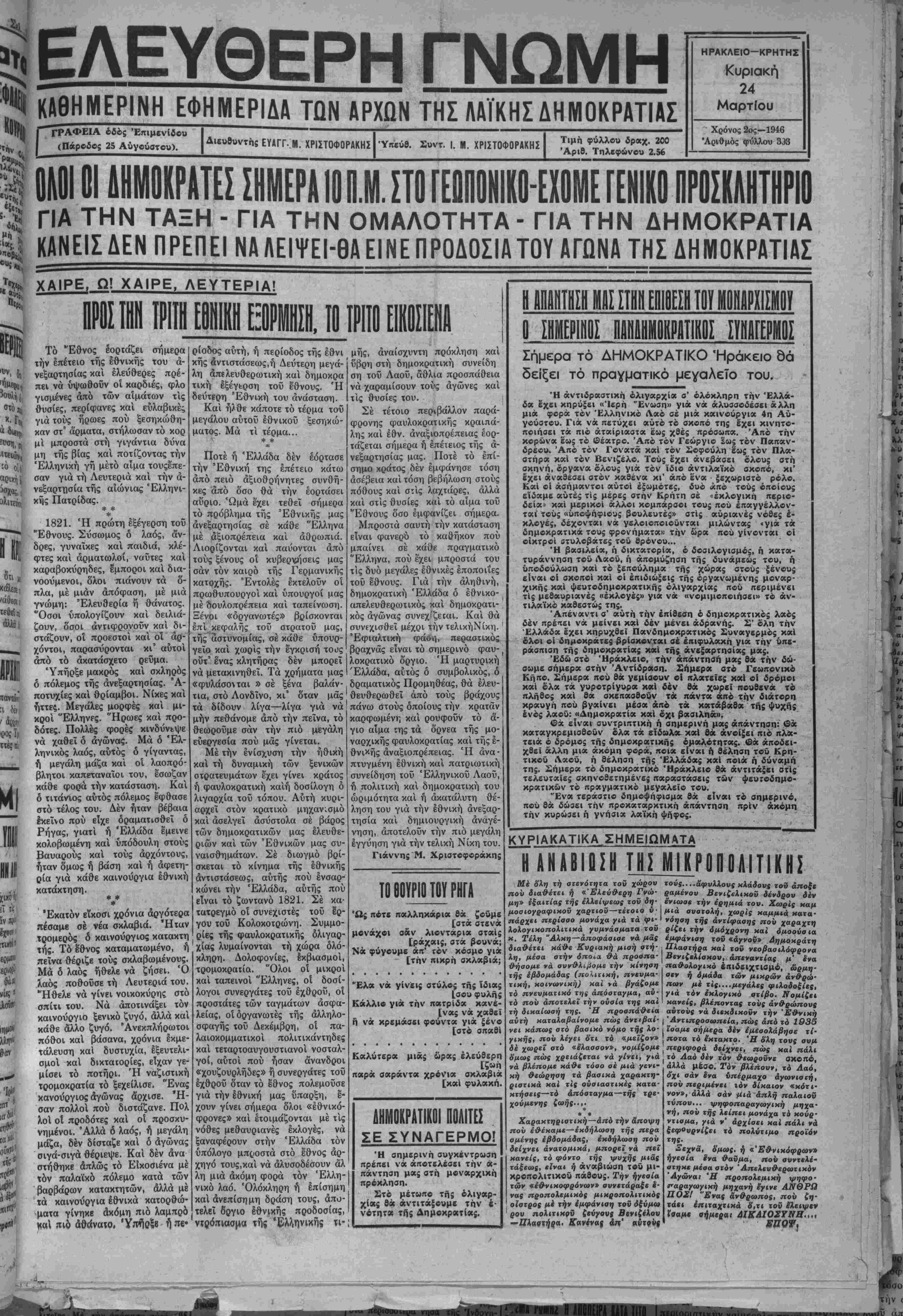 Ηράκλειον τχί 23-3-46.