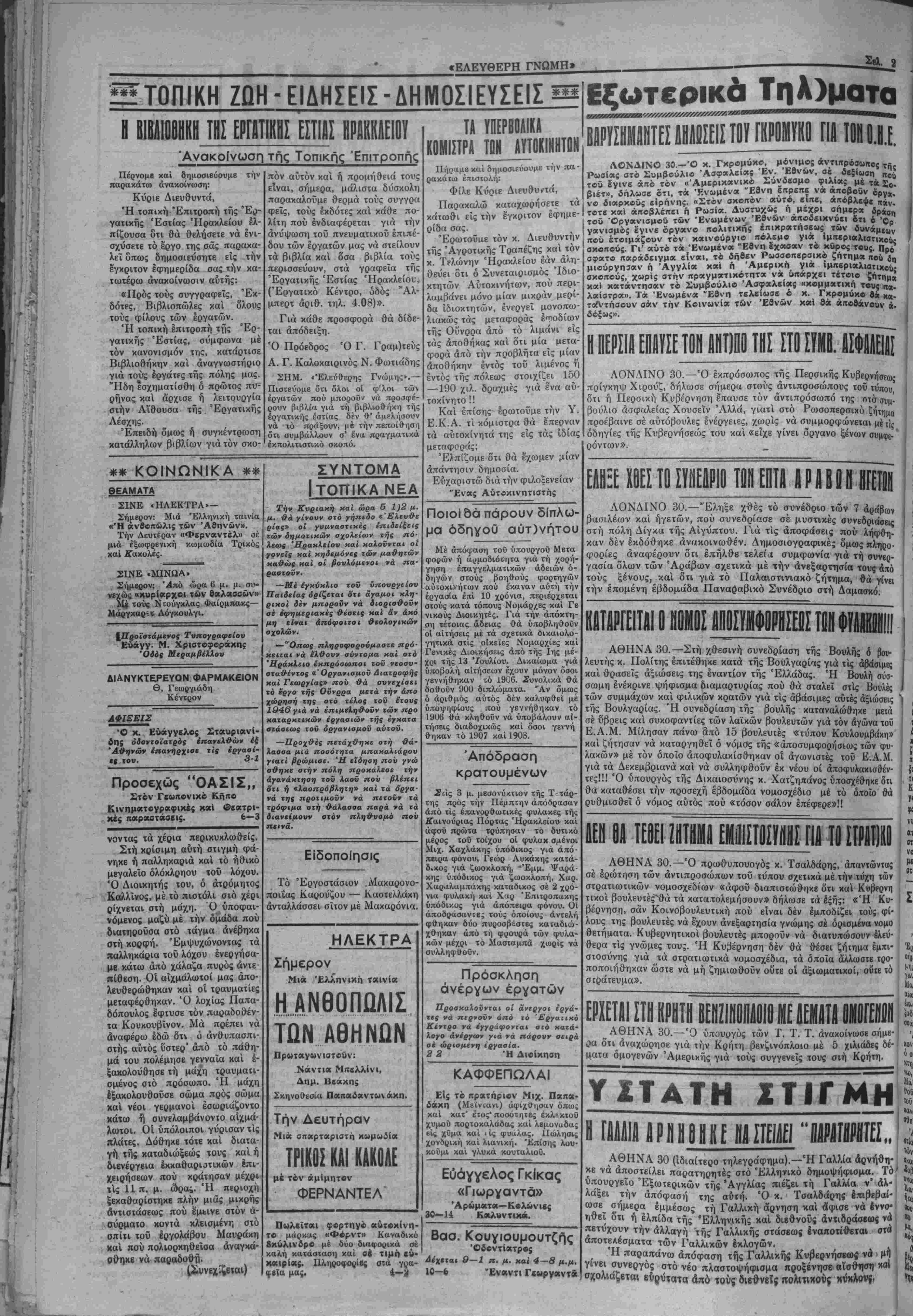 ^ ΑΘΗΝΑ 30.—Ό ύπουργος των Τ. Τ. Τ. άνακοίνωσε σήμε-