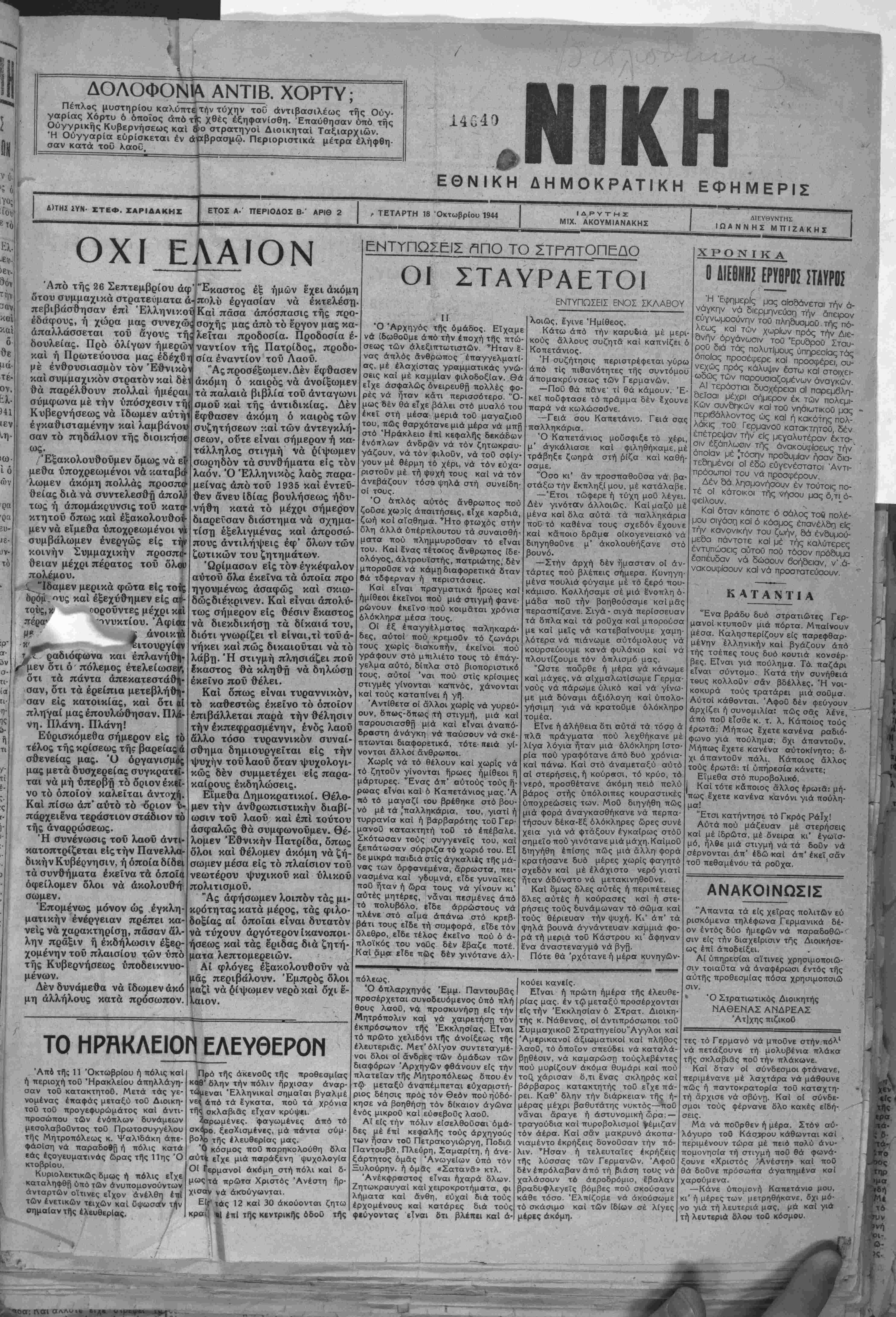 ---<----------- ' Πέπλος μυστηρίου καλύπτβτήν τύχην τοΰ άντιβασιλέως τής Ουγ¬ γαρίας Χόρτυ ό οποίος άπό τκ χθές εξηφανίσθη. Επαύθησαν υπό τής Ούγγρικής Κυβερνήσεως καί δνο στρατηγοι Διοικήται Ταξιαρχιών. Ή Ούγγαρία ευρίσκεται έν άΐχβρασμω. Περιοριστικά μέτρα ελήφθη¬ σαν κατά τού λαοθ. Δ)ΤΗΣ ΣΥΝ- ΖΤΕΦ. ΖΑΡΙΑΑΚΗΧ .Ν ΙΚ Η ΕΘΝΙΚΗ ΔΗΜΟΚΡΑΤΙΚΗ ΕΦΗΜΕΡΙΣ ΕΤΟΣ Α.' ΠΕΡΙΟΔΟΣ Β·' ΑΡΙΘ 2 ΤΕΤΑΡΤΗ 18 Όκτωβρίου 1944 ΜΙΧ. ΔΡΥΤΗΣ ΑΚΟΥΜΙΑΝΑΚΗΣ ΟΧΙ ΕΛΑΙΟΝ ^ Άπό τής 26 Σεπτεμβρίου άφ'|"Εκαστ0ς έξ ημών εχει άκόμη ότου συααανικη Γΐτη«τΡΐ'>ιι«·τιν α.]—«ι , λ___„.'.... ..λ α..-~α~~
