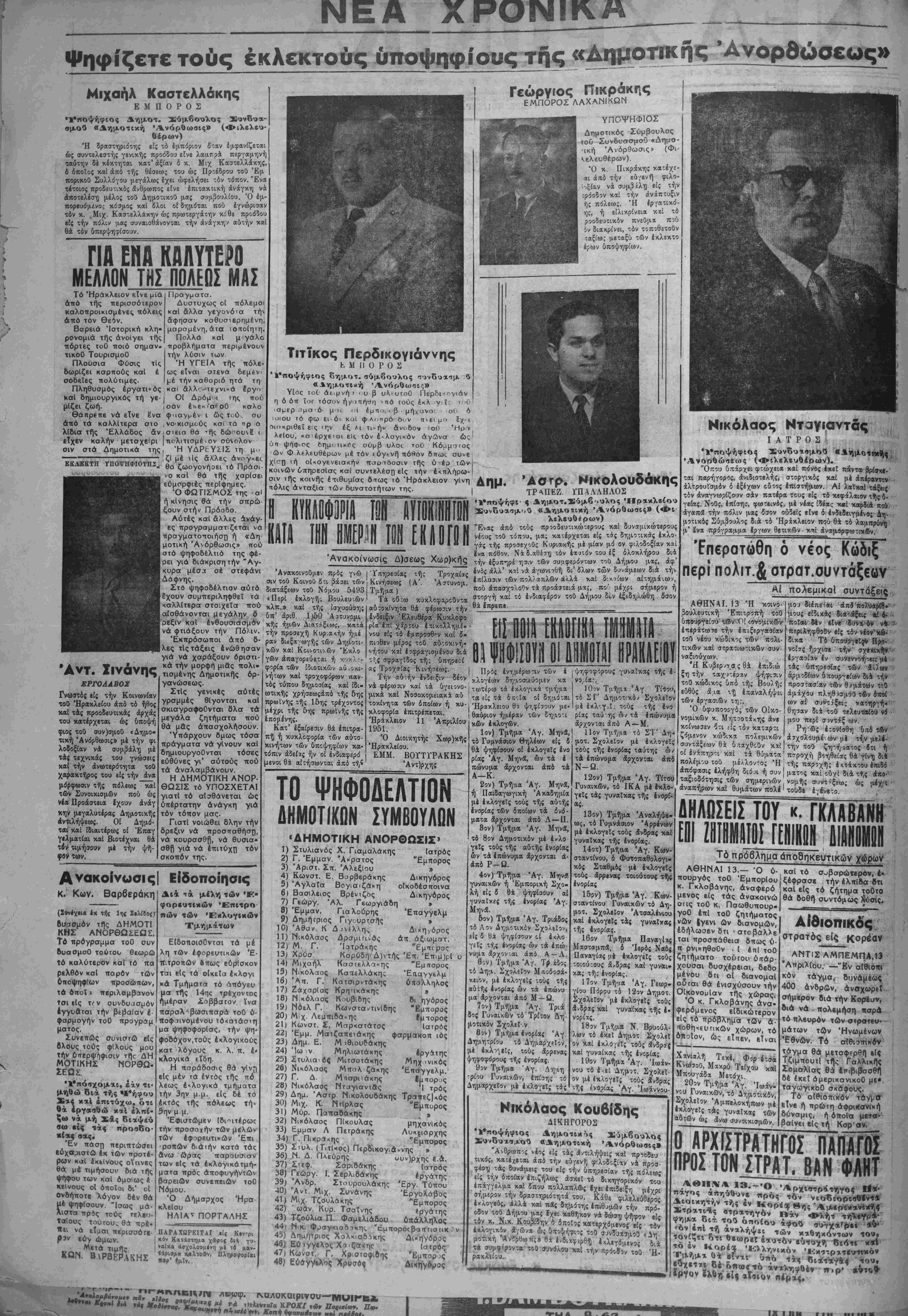 είς την πολ<:μικήν καί μεταπολεμικήν άνώμα λον κατάστασιν , αί είς δυσχερεΐς οικονομικάς συνθήκας. Ουδέποτε έξεδήλωσα επιθυμίαν άναμΐξεως είς την πολιτικήν ου τε καί πρόκειται είς 'ό μέλλον ν' άνσμιχθώ διότι ή πό λιτική είναι άντΐθετος μέ τόν χσρακτήρα μου. Ά- ττησχολήθην μόνον μέ τα ανωτέρω ζητήματα καί τα αροβλήμοτα τοθ Δήμου μας καί μοθ εδό¬ θη ή εύκαιρΐα νά τα με- λετήσω μέ προσοχήν. Φρονώ δ τι πολλά έκ τούτων δύνανται νά ιϋ ρωσι την λύσιν των πά ρά τάς συνεχιζομένας καί σήμερον δυσχερε σΐάτας οί ονομι άς συν¬ θήκας. Έπ'σης πιστεύω 8τι καί άλλα δυσκολώτερο προβλήματα εΐνα δυνα¬ τόν νά εισέλθουν είς τό έγ>ύς μέλλον είς τόν