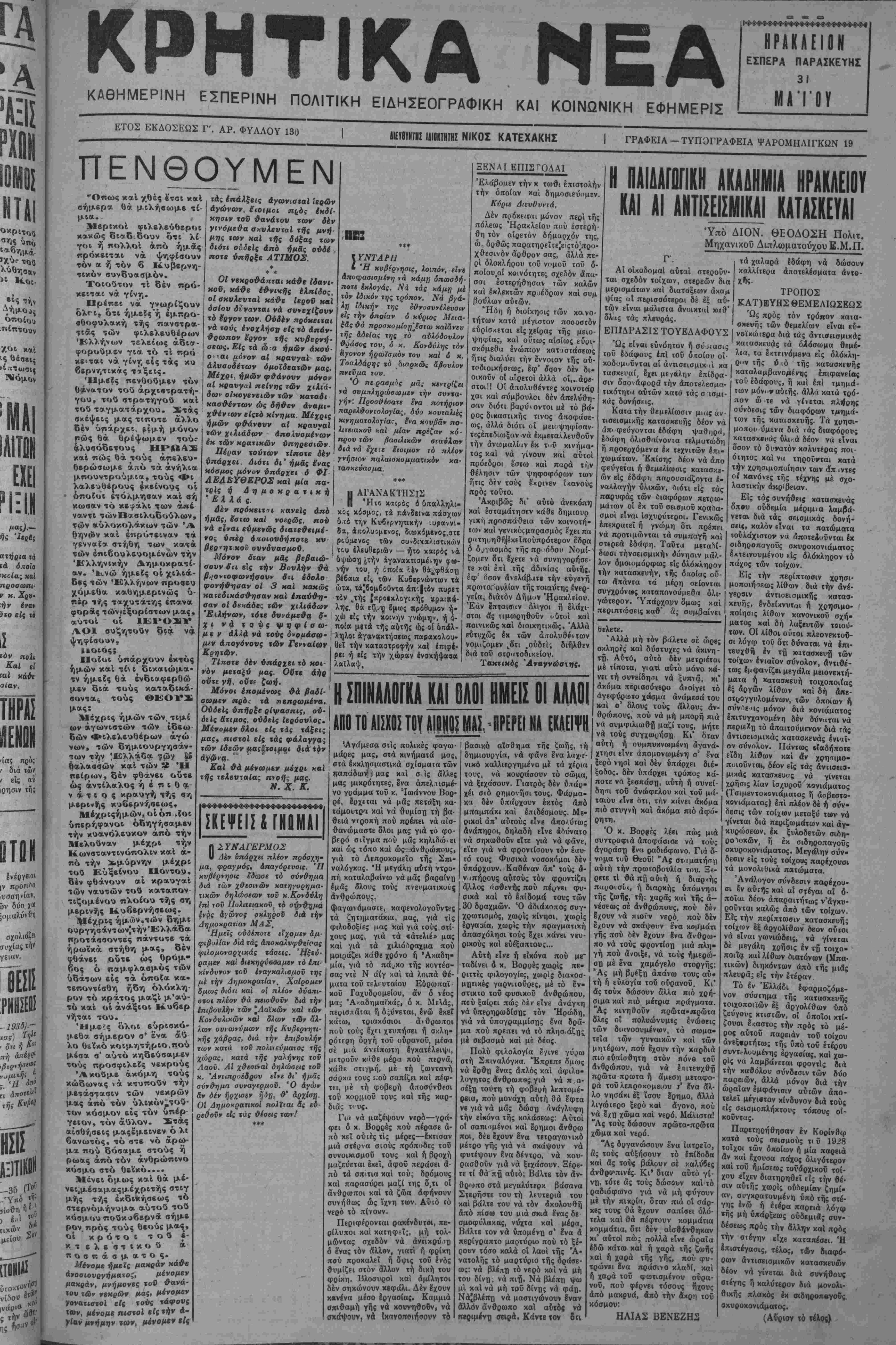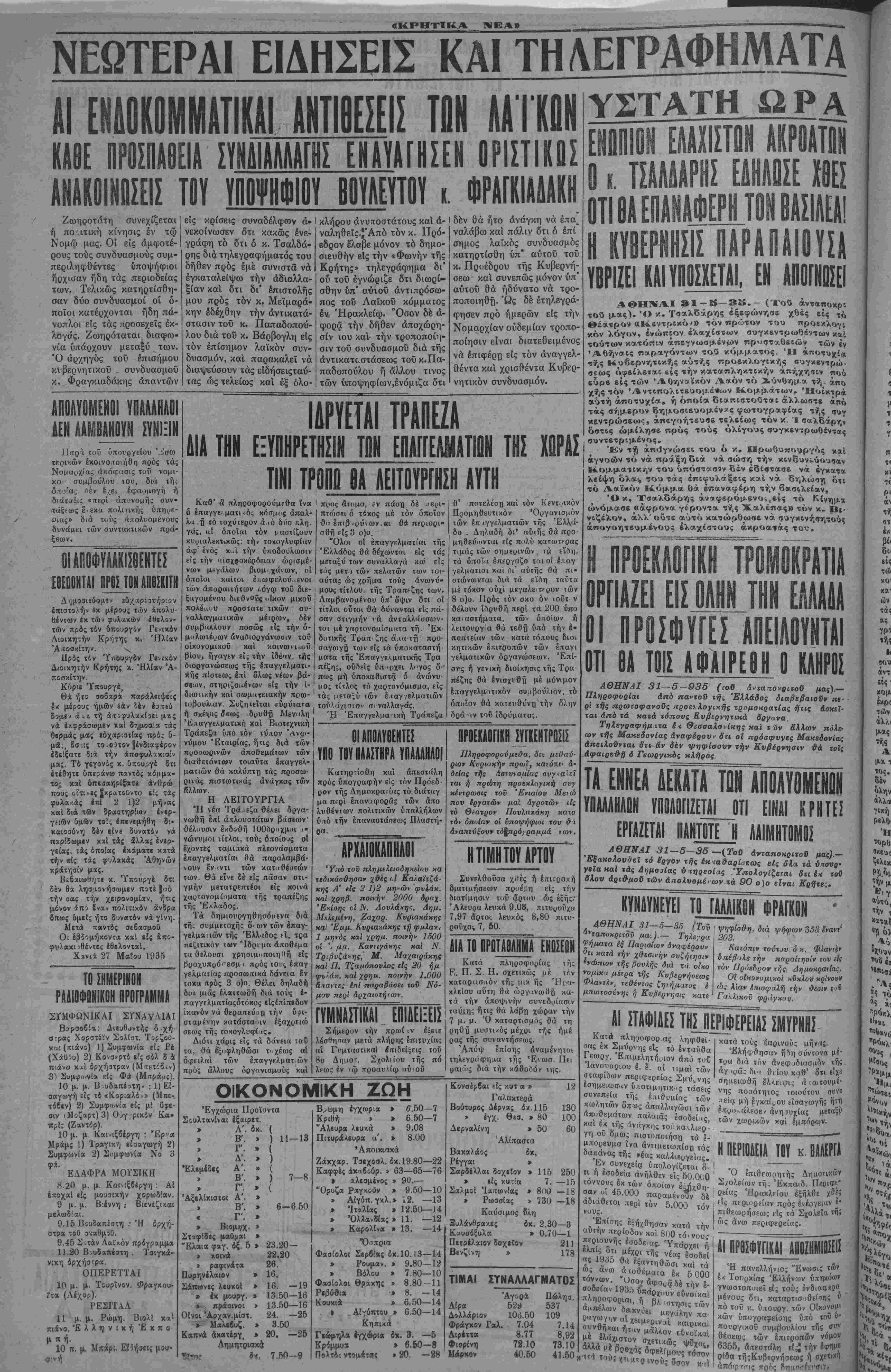 ΑΘΗΝΑΙ 31-5-35 -(Τού άνταποκριτού μας(.-