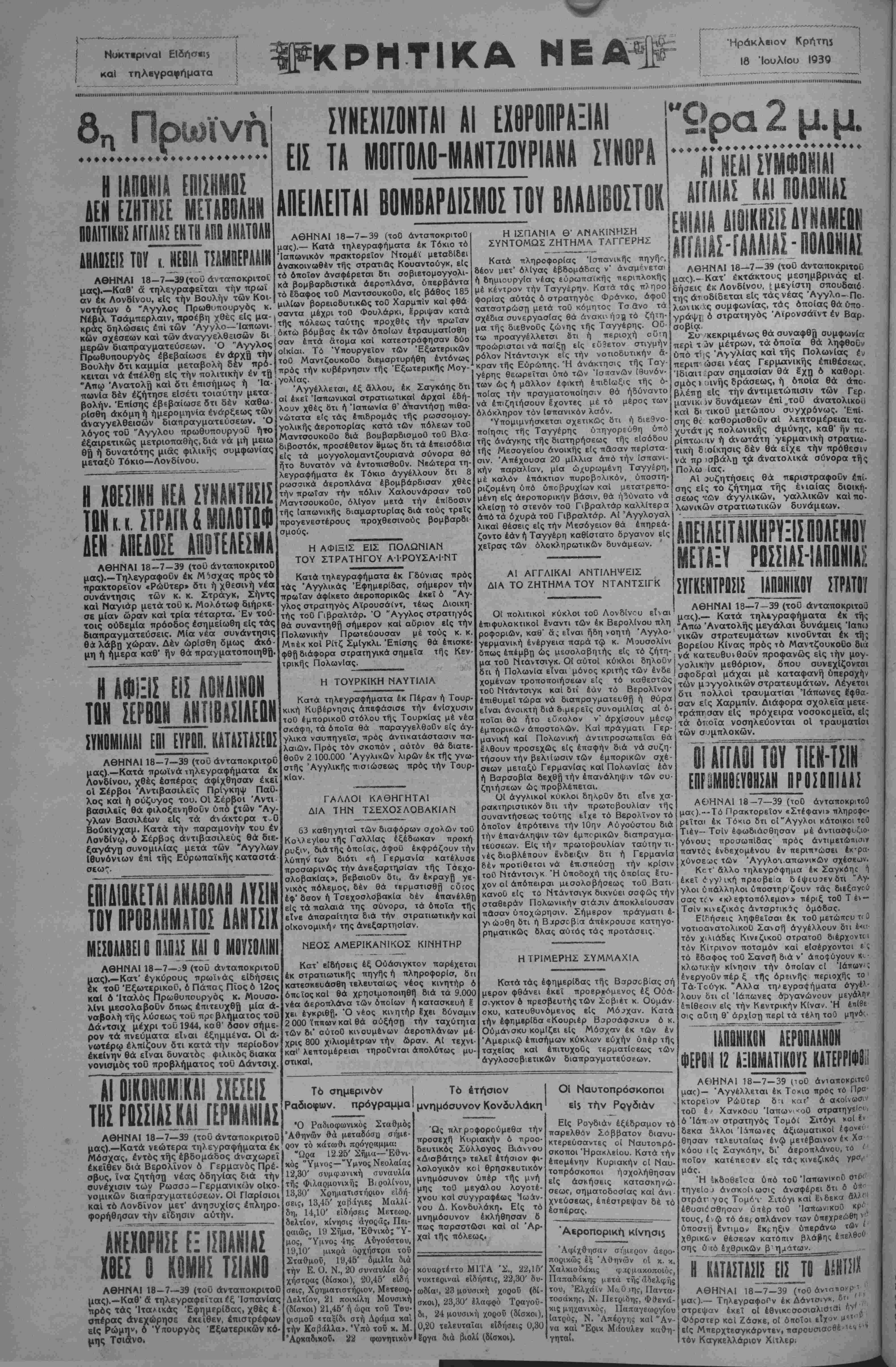 ΑΘΗΝΑΙ 18-7—39 (τοθ άνταποκριτοθ