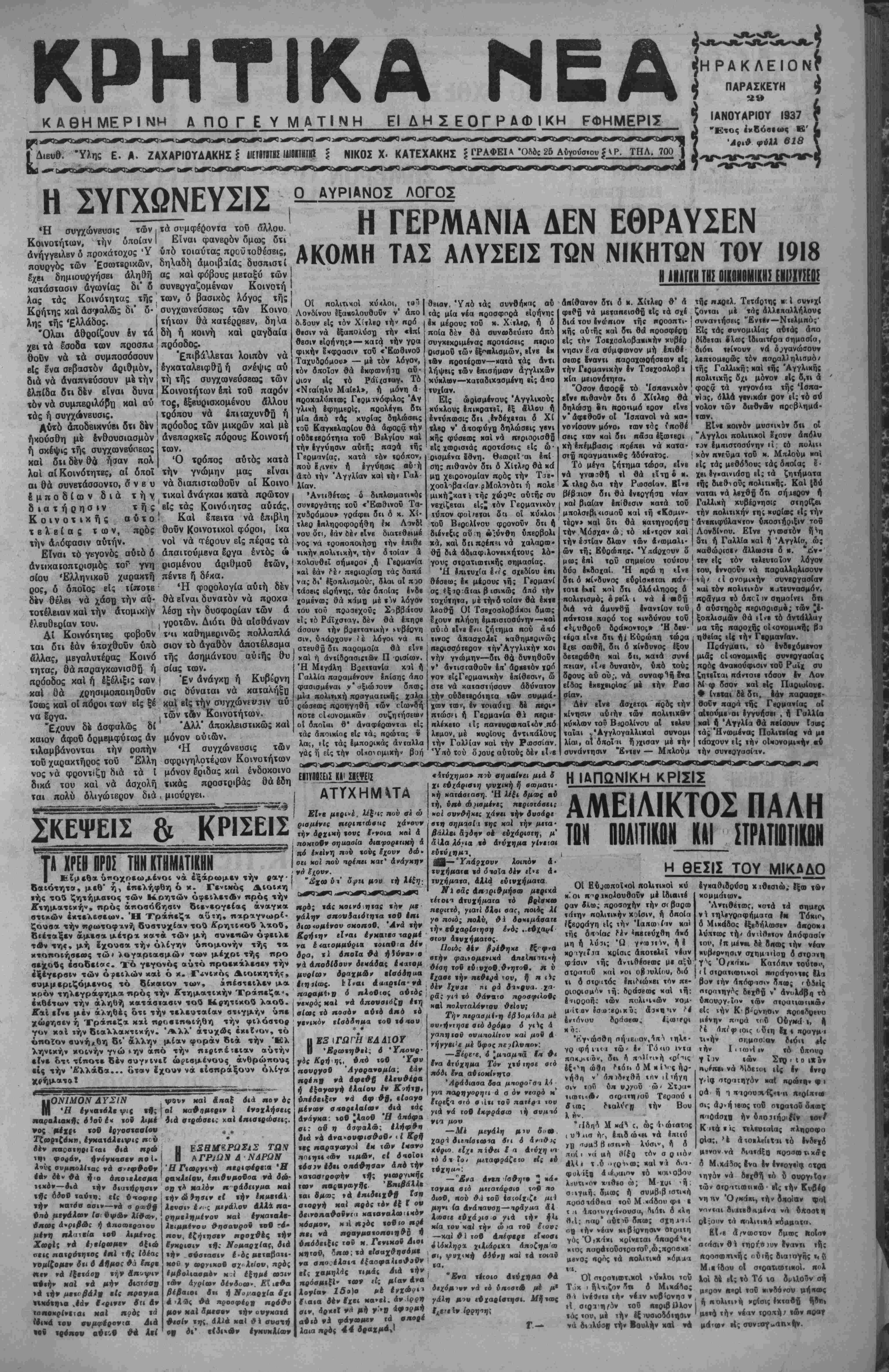 σημΐιώιη έλο<λη?ωκκήν καί * νεπανόρσωτον οΝονομκήν αυ/τρι βήν αυτών Πχραχαλ^νμΐν δια τάξητε άναατολήν μίχρι προσΐ χοθς Σ/6ρίο^ δή προβλεΐομέ νης πλουσίας γΐνιχν]ς ποιραγω γής έ' ΐχα εύνςι ω:άτω/ καιρι κων σ«ι*Θτ}χών καταστή ·υχε· άς δυνατή ϊχπλήρωίΐς 5ποχρεώΐ« ών έφειλετών. Ύπϊυργάς Γ. Δ Κρήτας Σφακιανάκης Ή Διοίκησις τί)ς Κτηματι κης Τραπέζης, κατόπιν τούτου δι' έγγράφοιι της πρός τόν κ. 1 "Υπουργόν ίγ-ώριοε χ4έ, Ια ίνε ι τάλησαν τα ύποκαταατ-ήματα «ΰΐής δπαι; δια μίχν άκόμη φ? ρίν μή ένεργήοουν ττλειοτπρια ύς μίχρι νεωΐέρας δπταγής —ο— 1« ΣΥΖΗΤΗβ ΤΟ ΖΗΤΗΜΑ ΔΙ ΕΟΙΤΛΞΙΣ ΕΛΑΙΟΥ Αποφάσει τού κ. Γεν. Διοίχη χον εγένετο προχθβς ίηίτοξις 15 χιλ. δ*άόων ίαίον έ« των άποθηχών Πραοτοηαηαόά%η — Παλαιολόγον—ΙΙρέβι Χανίων διά τάς ανάγκας των ηόλιαιν Χανίων χαί Ρί9ύμ*η;. ΑΓΟΡΑ ΙΟΠΟΝ ΑΘΗΝΑΙ 29-1-37 (τού μας). Έκ Καΐοου μβτκδόθτ] δτι σονΐοχβιαι «θοστχώς διάσκεψις είς Μοντραί δπου θά συζη τηθοΰν υπό των ενδιαφερομένων Δυνάμεων τα ζητηματα των διοιιολογήσβαιν έν Αίγύπτφ καί ιδιαιτέρως ή κατάργησις των Μιχτιον /^ικαστη- θ(α>ν, Ή Αίγυπτιαχή Κυβέρνησις 8έν δόχβται