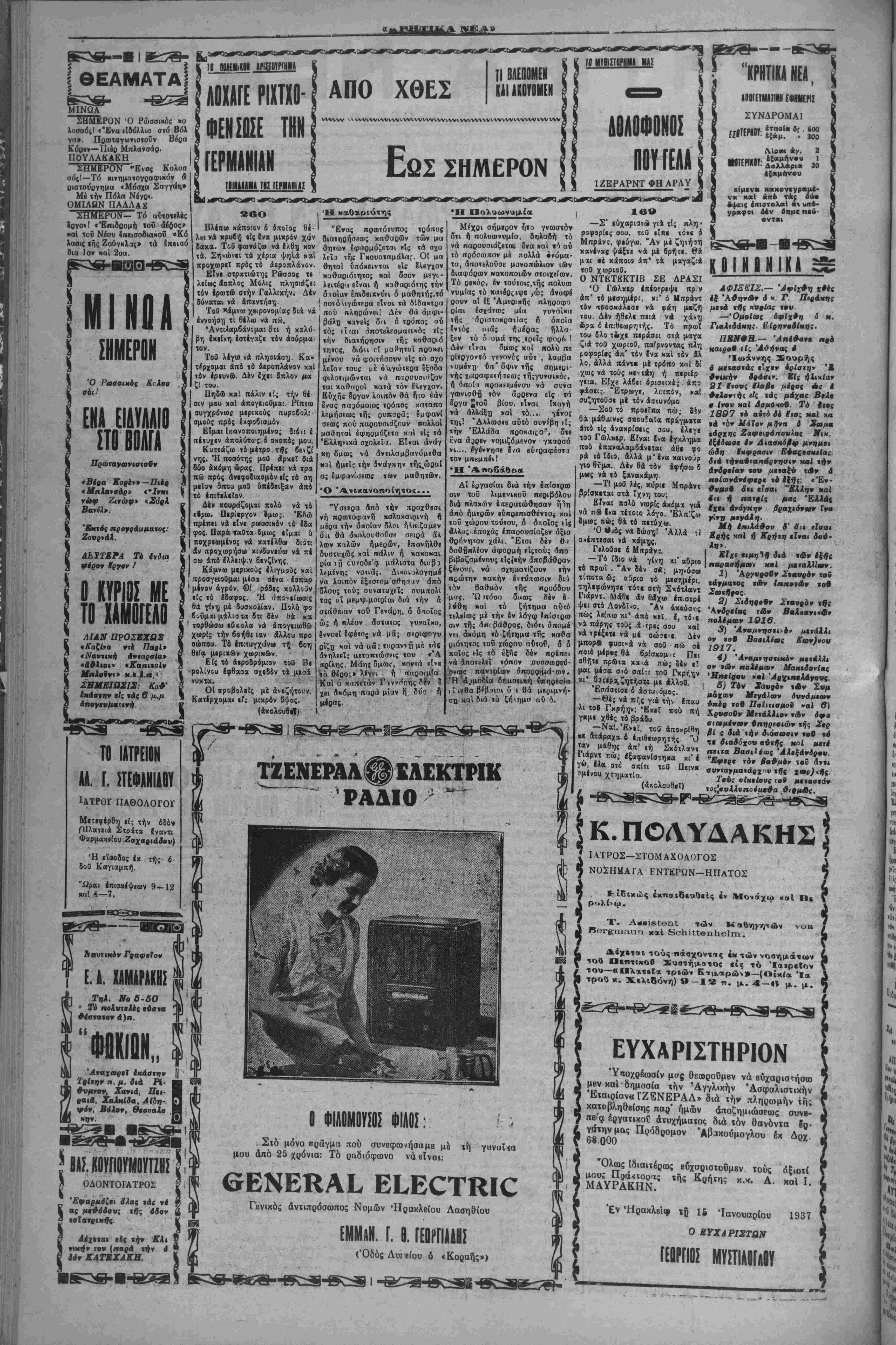 'Επίσης π< λών άιευΐιΗ£ν πλοι α<){<ΰν ή ιυχη άγνοεΐΐαι. "Εν Βραζιλιανόν βπιβατικον άτμό πλοΐον άπτολέβθη, «τό τή; πά Οβλΰουσης νυκτός, δΐτηρχουν δέ φόβοι διι χατεποντίσθη αν τανδοον. ΤΟΚΟΪ ΤΡΑΠΕΖτΐί ΓΑΑΑΙΑί ΑΘΗΝΑΙ 29— 1 -—37 (τοΰ άνταποκοιτοΰ μαθ Αγγέλλεται έκ Παρισίων οί ή Τραπέζα τής Γαλλίας ηδ,ησΒν τόν ποοι ξοφλητΐΜΟν τόπον άκο 2 Λ3 εί; 4 ο)ο. Α,ΗΕΙΟΝ ΓΑΛΛΙΑ! ΑΘΗΝΑΙ 28—1—37 (τοϋ άνταιοκριτοϋ μα() — Κατά τη λβγοαφήματα έκ Δινδίνου χθές ϊο Ισπροας ΰιτβγιάφη συμορωνία μβταξύ τποστολής τής Γαλλι- κίς Κι # Ο» ΠΐΒΐος «αί Όιιίλου Άγγλων Τϋΐι.ιβζΐ'ών, δι* ή χ) ρηγιΐ'αι δάνριο" είς την Γυλλί αν έκ 50 000,000 λιρών οτβολ. ΛΕ4 ΕΣΧΗΜΑΤΙΣΘΗ ΚΥΟΕΡΝϋΣΙΣ ΙΑΗΟΝΙΑΣ ΑΘΗΝΑΙ 29-1—37 (τοΰ άνταποχοΐϊθϋ μας).— Σημϊοι νά έκ Τόκιο τηλενοαφηματα αγγέλλουν δτι Λ κιβκο^ητική χθίσις Ιν Ίαπαανία Ιξαχολουθβϊ. Ό στριιηγός Ού^χάκι, είςδν Ανετέθη /| ίντολή σχημαιισμοϋ κυβερνήσεως εδήλωσεν δτι έντός των ημερών θά δπι.ύχη τόν σχηματισμόν μικτής κυββρνη Οίαις. ΛΕΗ ΕΑτ-ΘΗ Η ΚΡΙΣΙΣ Εΐί ΒΕΛΓίΟΝ ΤΑ ΧΡΕΗ ΠΡΟΣ ΤΗΝ ΚΤΗΜΑΤΙΚΗ Ό Ύπουργ&ς κ Σφακιανά¬ κης κατόπιν πολλων διιμαρτυρι ών δφειλετθν τή; Κττ,μαπκή; Τραπέζης επί τ&ν πιίοειβν τάς δ ποίας ύφίοτκνιαι δ λ νά έξαφλή οουν τάς υποχριώσιις των άύ Θυνι τό ακόλουθονλ Κτηματικήν Τρ Έπΐκρατούαης ίν Κρή η άφαν τάοτου οί«ονομι»ή, δ^αηραγίας Ενεκα τής πρωτοφανοΰς >ατά