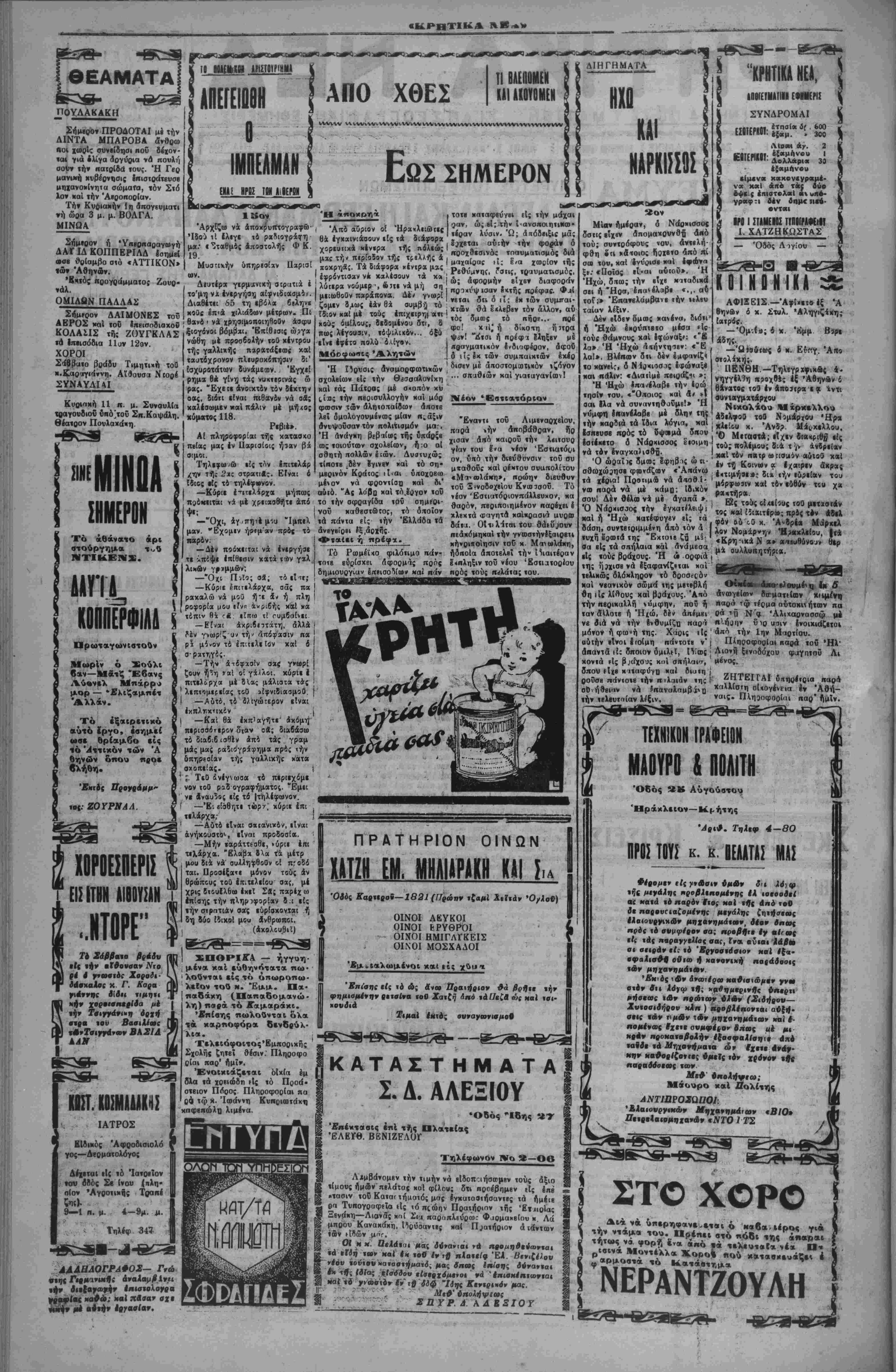 <ά όποϊα παρακο- μέ ενδιαφέρον τάς προσπαθείας τής κνβερνήσε ως διά «ήν δρ«άνω·ιν μιά; συγχρόνου καί τελιίας έξα· γββγής νωπών οπωρβν, δέν είνειι ύπερβολή εάν είπομεν ότι την πρωενν τΜεΤΐν κατέ Κ χ η Διότι ι) Κρήτη Ιέν πρέπει πλέον νά θεωρείται Ας τό· πος, έκ το9 δποίου έξάγσν «αι άφ#ονοι ξη,ροί καρποί, Ι Ιαισν Μοί οΐνος. "-χει καί εύρύτατον μέλ λον ώς περιφέοεια έ(αγωρή; νωπών καρκών καί «ό μέλ· ««*> %ΐ)ς αύτό #ά εξαρτηθή