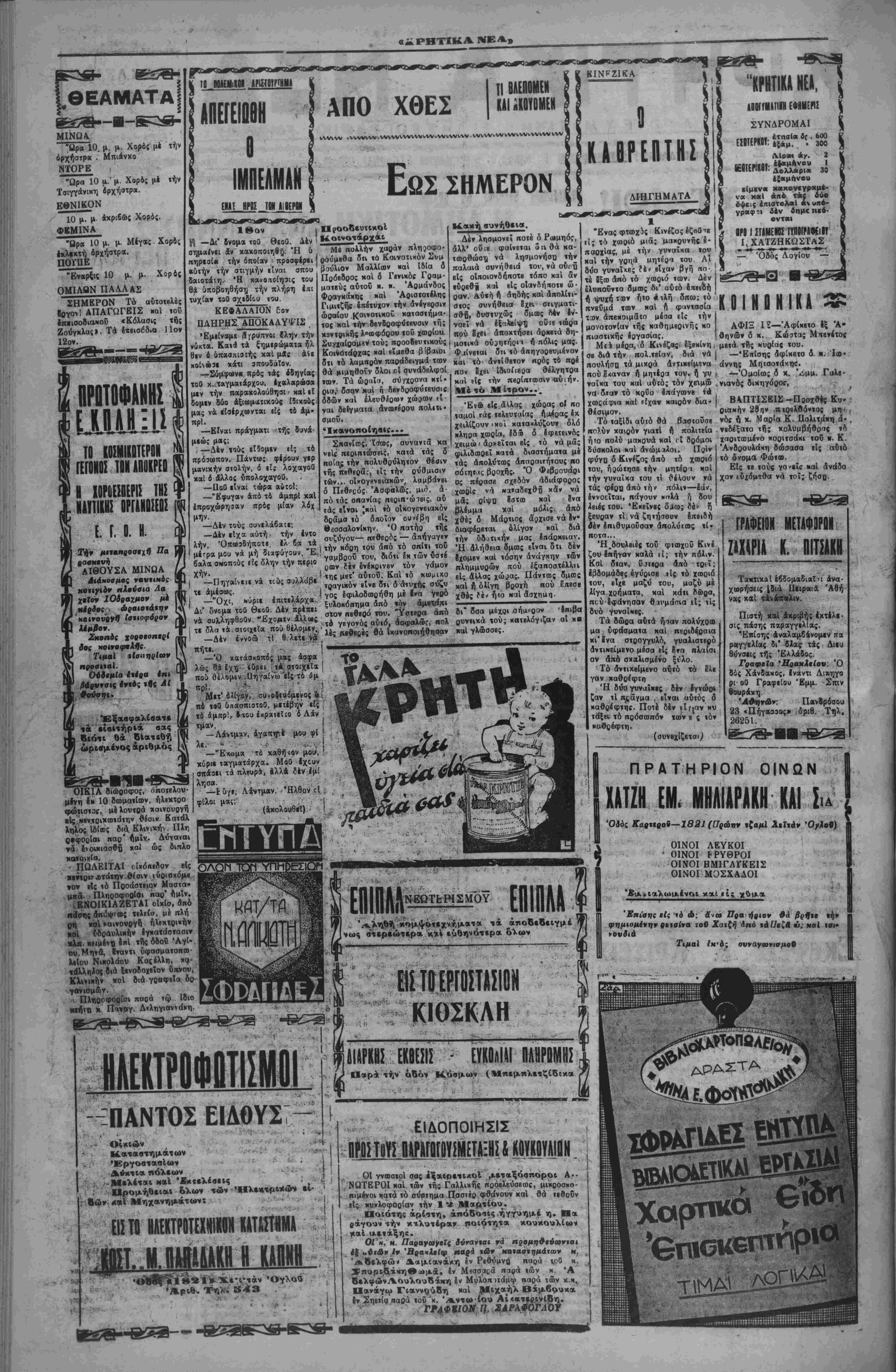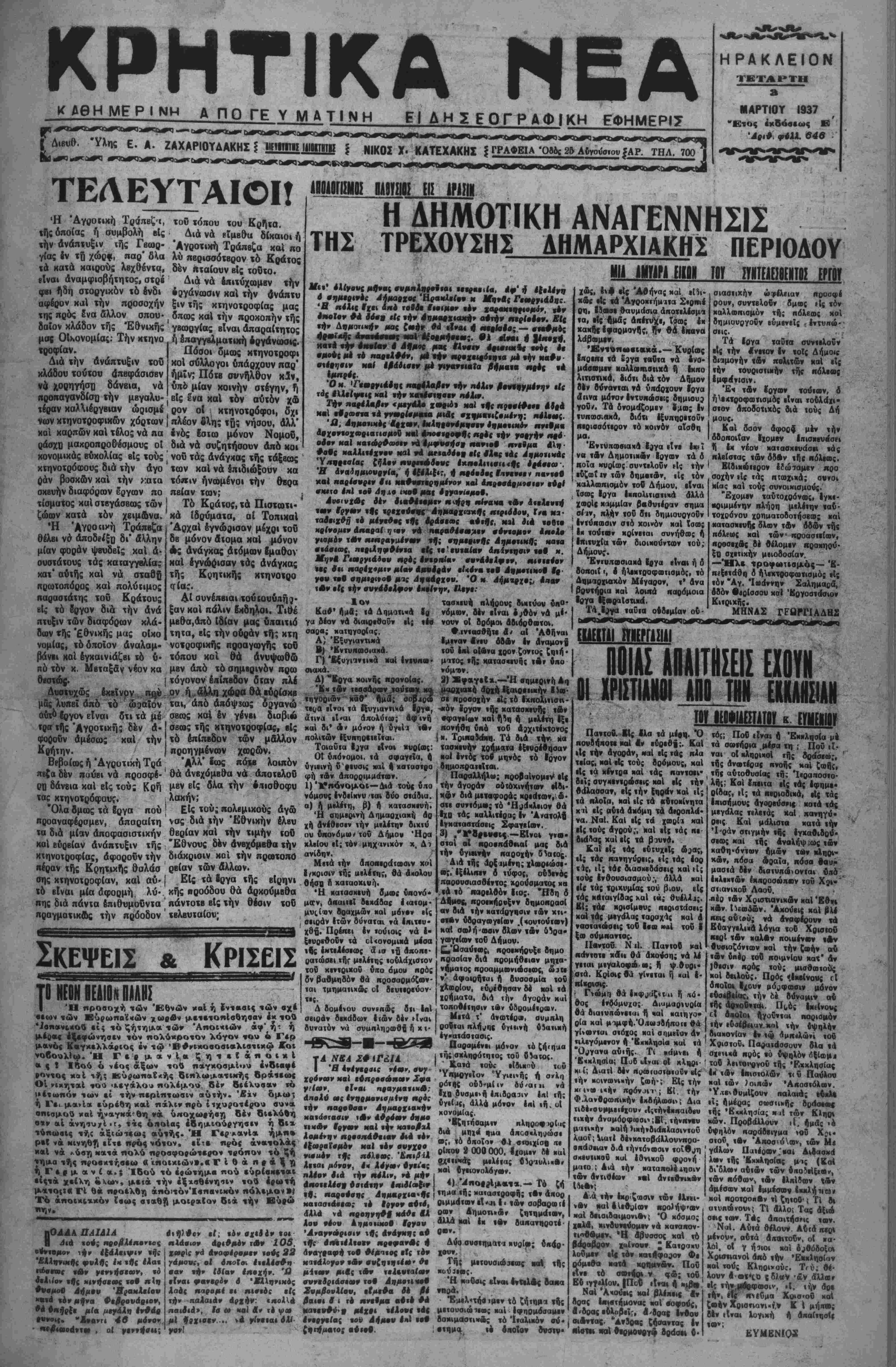 Ι Διβυθ. 'Υλης Ε. Α. ΖΑΧΑΡΙΟΥΔΑΚΗ! | ΙϋΤΙΗΤΙΙ Ι4ΙΙΙΤΙΤΙΙ | ΝΙΚΟΣ Χ· ΚΑΤΕΧΑΚΗΣ *ΓΡΑΦΕΙΑ Όδ&ς 26 Αυγουστον ?ΑΡ. ΤΗΛ. 700