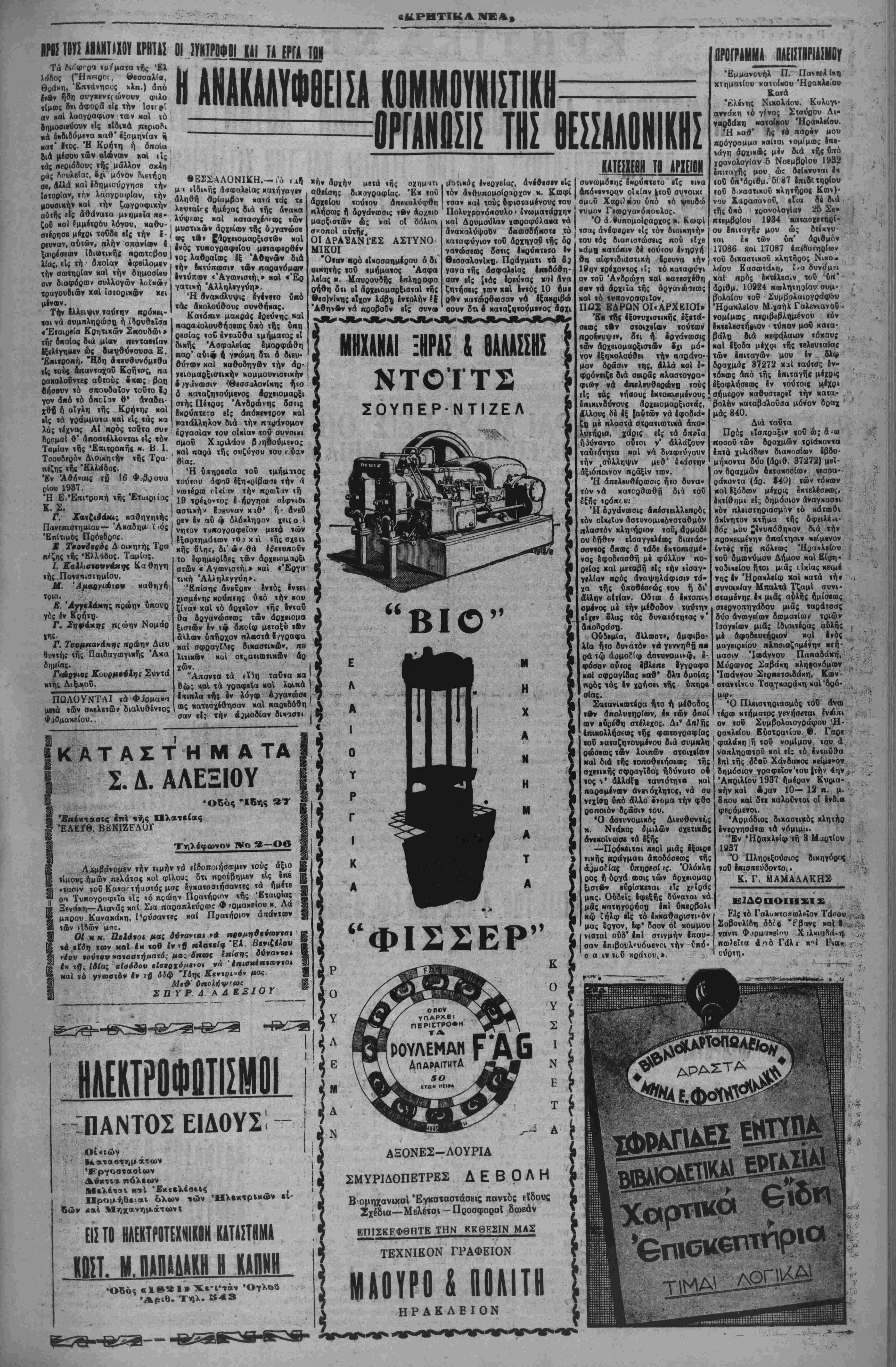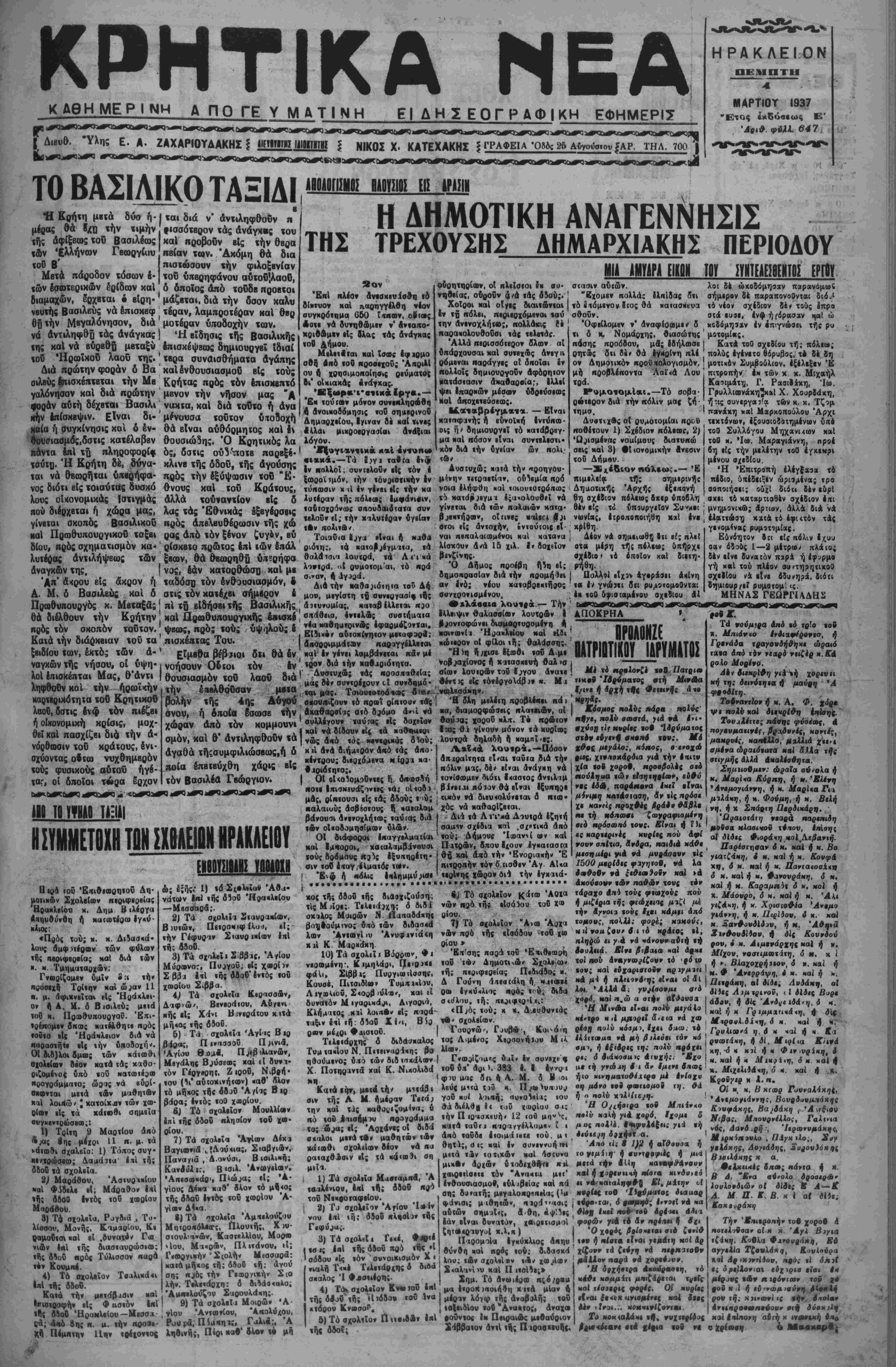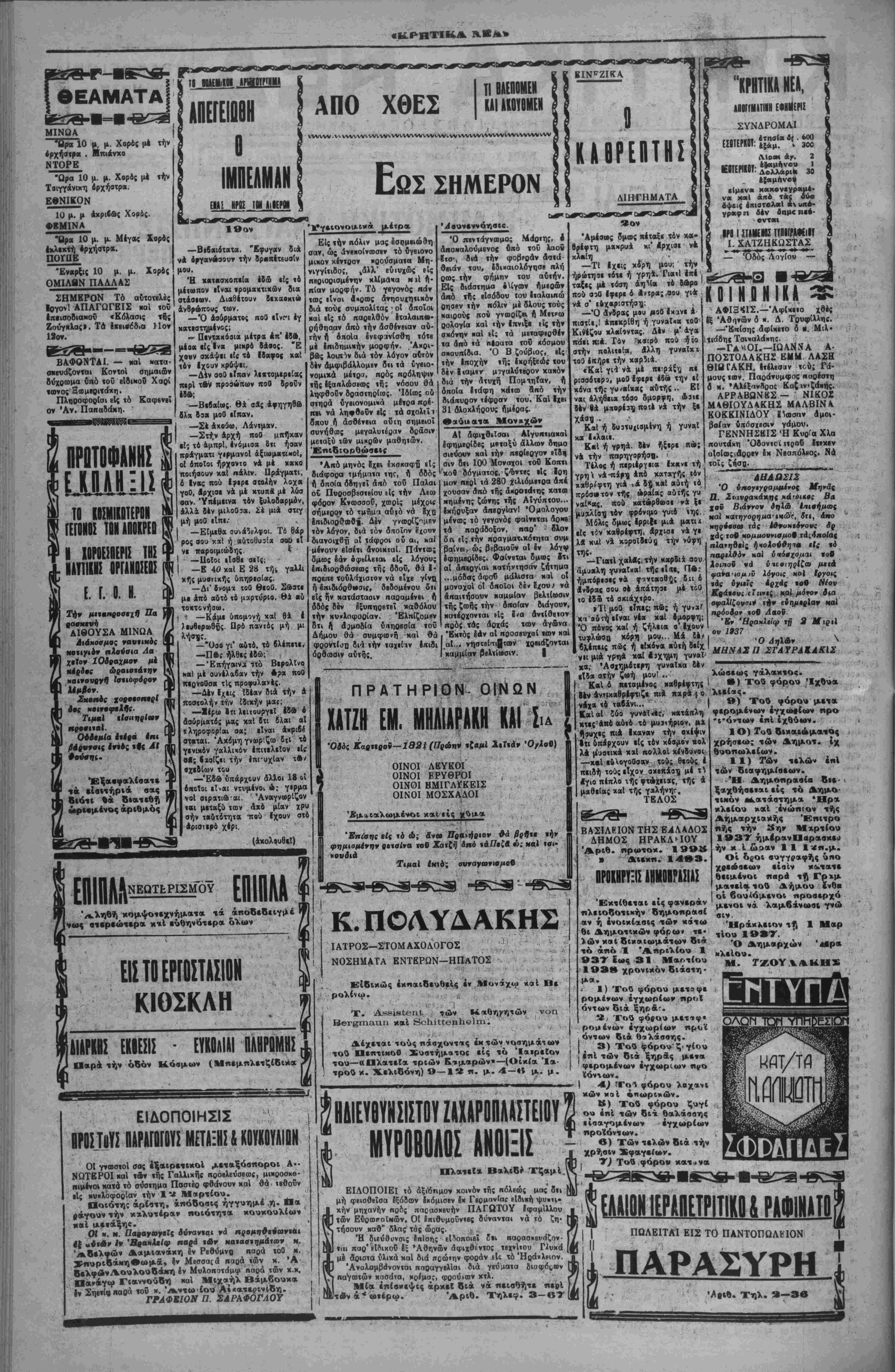 θά είναι αύθόρμητος καί <λ θουσιώΒης. Ό Κρητιχός λα ό;, δστις ούν-^οτε παρβξέ· κλινβ τής δδοΰ, τής αγούσης πρός την εξύψωσιν τοθ "Κ- θνους καί τοΰ Κράτους, αλλά τουναντίον βίς δ λας τάς Έθνιχάς έξβγέρσβις πρός απελευθέρωσιν τής χώ ρας άπό τόν ξένον ζυγϊν, βύ ρ.σκβτο πρώτος επί «ών έπάλ ξβων, θά θβωρηθά ΰη?ρήφα νος, εάν κατορθώση καί μι ταδόσχ) τόν ενθουσιασμόν, & στις τόν χατέχβι σήμίρον έ πΐ τή Β.δήσβιττ,ς Βασιλάκης χαΐ Πρωθυπουργικής &ι.σκέ ψβως, πρό; τού; ύψηλού; έ πισκέατας Τού. Είμβ&α βεβαιοί δτι θά έν νοήσουν Οίϊοι τόν έν θουσιασμόν τοθ λαοΰ διά την έπβλθο'ΰσαν μ»ια βολήν τής 4ης Δύγού βνου, ή Αποία δσωσε την χώραν άπό τόν κομμουνι σμόν, καί θ' άντιληφθοΰν τα αγαθά τήςσυμφιλιώσβως,ή δ ποία έπβΐϋύχθη χάρις βίς τόν Βασιλέα Γεώργιον. Η ΔΗΜΟΤ.ΚΗ ΑΝΑΓΕΝΓΜΣΙΣ -~ ΤΗΣ ΤΡΕΧΟΥΣΗΣ ΑΗΜΑΡΧΙΑΚΗΣ ΠΕΡΙΟΔΟΥ ΜΙΙ ΑΜΥΛΡΑ ΕΙΙΟΝ ΤΟΥ ΙΥΙΙΕΑίϋίΝΙΙ! ΕΡΓΟϊ β όν ΈκΙ πλίθν αν·σκίτ»ίοθη ιό δίκτυον καί ηαρηγγέλθη νέον συγκρόιι,μα 650 ϊτηαιν, οϊιβ; Αα«ι νά δυνυθδμιν ν' ά»«αηο- χςιθδμεν είς δλας τάς ανάγκας «οβ Αήμου. ΜΐΑειβ,ΐαι καί ϊοαις Ιφιομο σθ!) Αηό «οθ κροοεχοΰ; *Ακριλ( ου 4 χοτ)θιμοηο(ησ»ς οεύματος β." οΐκιακάς ανάγκας. ξά Έκ τού ιαν μόνον συνεπληοήθη 4 ανοικοδόμησις τοΰ σηιιεοινον Δημαρχείον., Ιγιναν δέ κα( «ινες έΗλαι μιχθοεογααΐαι ανάξιαι λόγον. 'Ε^υγιαντικν. «αί «ντυιι«ο σιακά.—·Τά ί,ιγι «α*^α έν-φ Ιν πολλοΐ, συντβλοϋν είς «όν έ ςΊοοαυμόν, την «ο«9ΐσ«ιχην Ιν «ύποοσιν χ «Ι Ιν γένει βίς «ην κα λυτέοαν «ή; ΐτόλκβ; εμφάνισιν, <αύιοχο4ν<α; σηουδοΗοτατα συν «ελοΰν εί; «ήν χιλντέραν υγείαν «Αν πολιτβ' Τοιαδια ίογα »1»αι ή κιθα οιότη;, τα κατοΙ;έγμα»α, «ά θαλάιαΐΊ λουτθά, «ά Λι'ιχά λονιρά, <<( ουμοτομαι, τό ποά Δια την κα9ο;ιό«ηια τού Δή μόν, μεγίστη «{ ακνεογααί· «(); κα«α0ίλλειαιι κ*)θ ίνιελδς συσιήααια 1 νέα καθηα«ο·νά»ς ίφαομόζονται, • ΕΙΪι»·/ αύιοκίνηιον με«αφ3θβ; Ι άιιοοοιμμάΐΛν παοιγγίλλιταν «αι Ιν γένει λαμβάνεται παν μί ' «ρ^ον διά «ήν καθαοιόιητα. |' Δυστυχδ; τάς κοοσΛ'ΐθβΙα; μας δεν συντρίχουν ίί σννδημδ· «α· μας. Τσιον«»(οο«α>ς β τε«