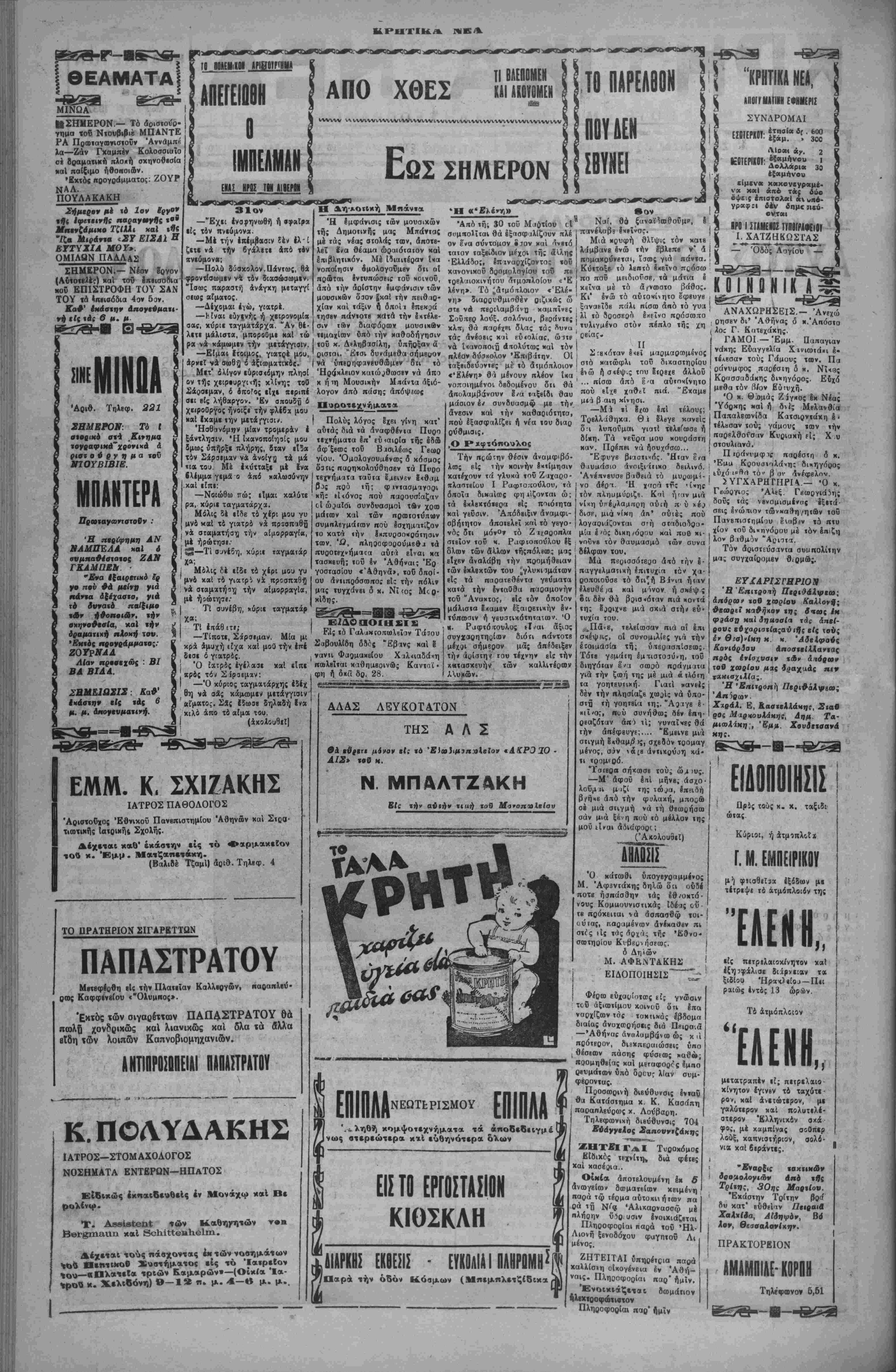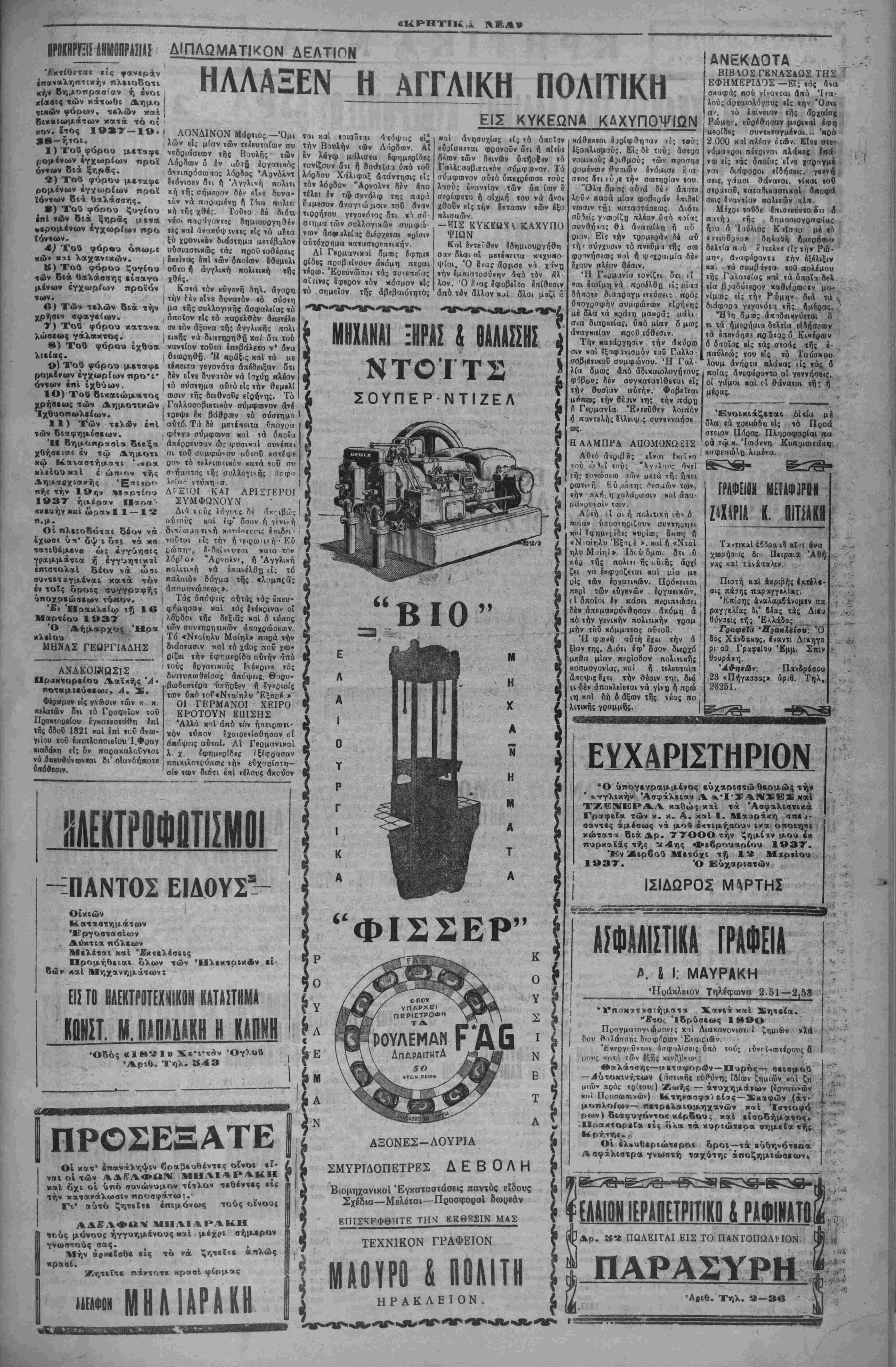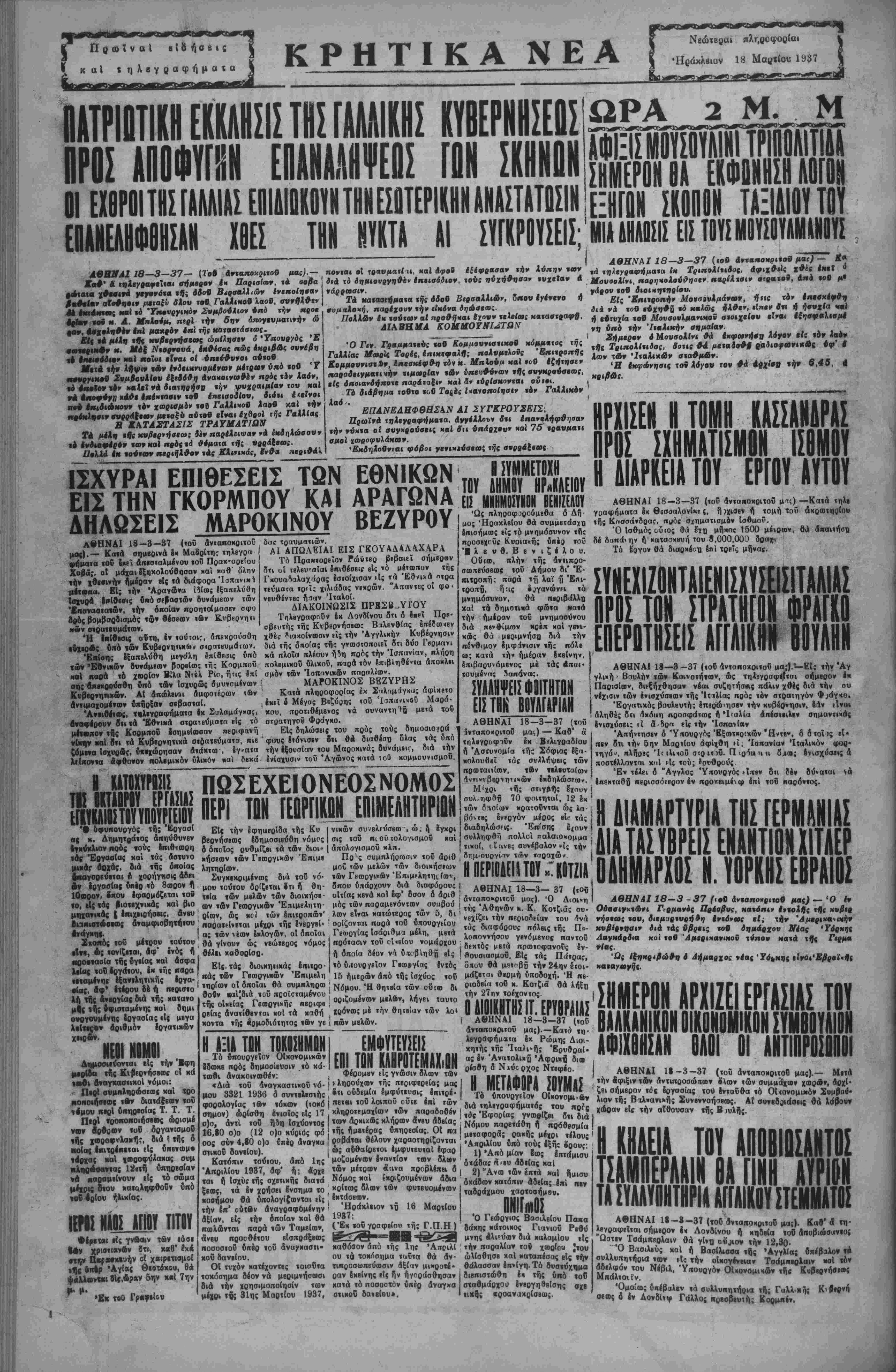 ΑΘΗΝΑΙ 18-3 -37 (<οΟ δν«αποκβιτο0 μας( — Ό Ιν Ουασινχτώνι Γ,ρμανβς Πβέσβυς, κατόπιν έντσλής τής κυβερ νν)σ«α»ί «ου, διεμυο.υρτ}*»} Ιντόνως ·ί, την μ β^ διά τάς «βρει; «ού δήμαρχον Νίας η καΐ «ού Άμεοικανικοδ τύπον καιά τ«« Γ$ομΛ ν/ας. ό Δήμαοχος νέας Γό^ης ιίνθι·£βραϊ.«( κβ- χοντα τής «ομοδιότητο; «Αν γε ι πών μελών. Ι *:ΙΑ ΤΟΝ ΤΟΚΟΣΙΜΟΝ Τό υπουργείον ΟΙκονθμικών ίβωκε πρός δημοσίευσιν «ό χά· ταιθι ανακοινωθέν: «Διά τοϋ Ίίναγχαστικοϋ νό¬ μου 3321 1936 δ συντελβσιής φορολογΐας ι ών «όκων (τοκό σημον) ωρίσθη ένισϊος είς 17 ο)ο, άντί τοϋ ήδη Ισχύοντος 16,10 ο)ο (12 ο)ο κύςιος φό οος συν 4,10 ο)ο υπέρ άνογκα σιικοϋ δανιίου). Κατόπιν τούιου, άπό 1ης Απριλίου 1937, άφ' ή; ϋοχβ ται ή Ισχΰς τής σχετικής διατά ξεως, τα έν χοήσβι Ινσημα το κοοίμου θά ύπολογίζωνται είς «ήν Ια' ούτβν άναγραφδμίνην αξίαν, ΐΐς «ήν οποίαν χαί θά πωλώνται καρά των Ταμβίων, άνευ ποαοθέτου ξ ποσοστοϋ υπέρ ιοΰ αναγκασιι- κου δανβίου. ΟΙ τυχόν κατέχοντες «οιοΰ»α τοχόσημα δέον νά μβθΐμνήΌωσι διά την χοηοιμοποΐησίν των μέγ,οι τής 31ης Μαοτίου 1937, ΕΜΦΥΤΕΥΣΕΙΣ ΕΠΙ ΤΟΝ ΚΑΙΙΡΟΤΕΜΑΧιΟΗ Φέοομβν ΐΐς γνώσιν δλτον των »ληοοΰχα>ν τής πεοΐφβοκία; μας
