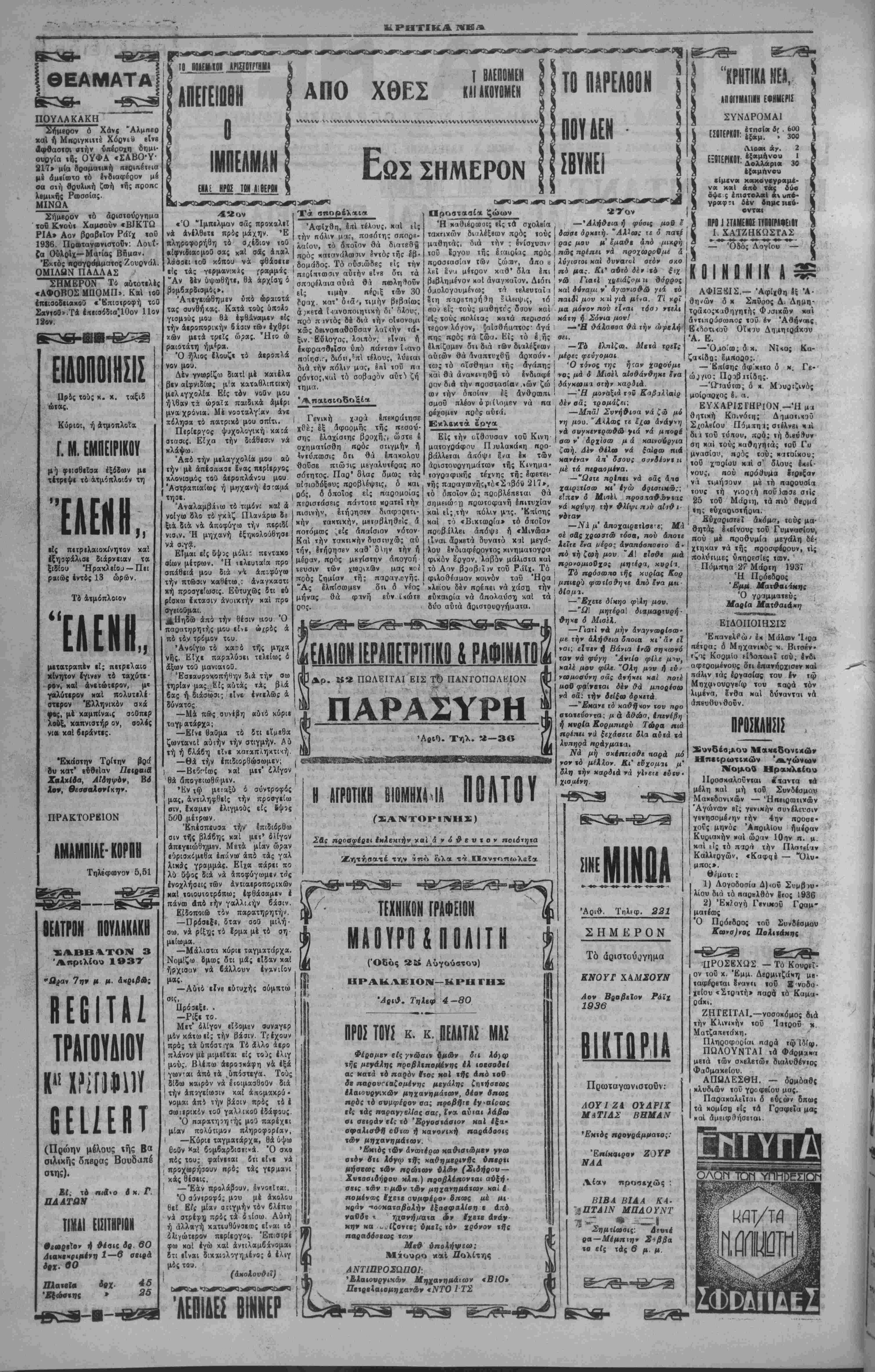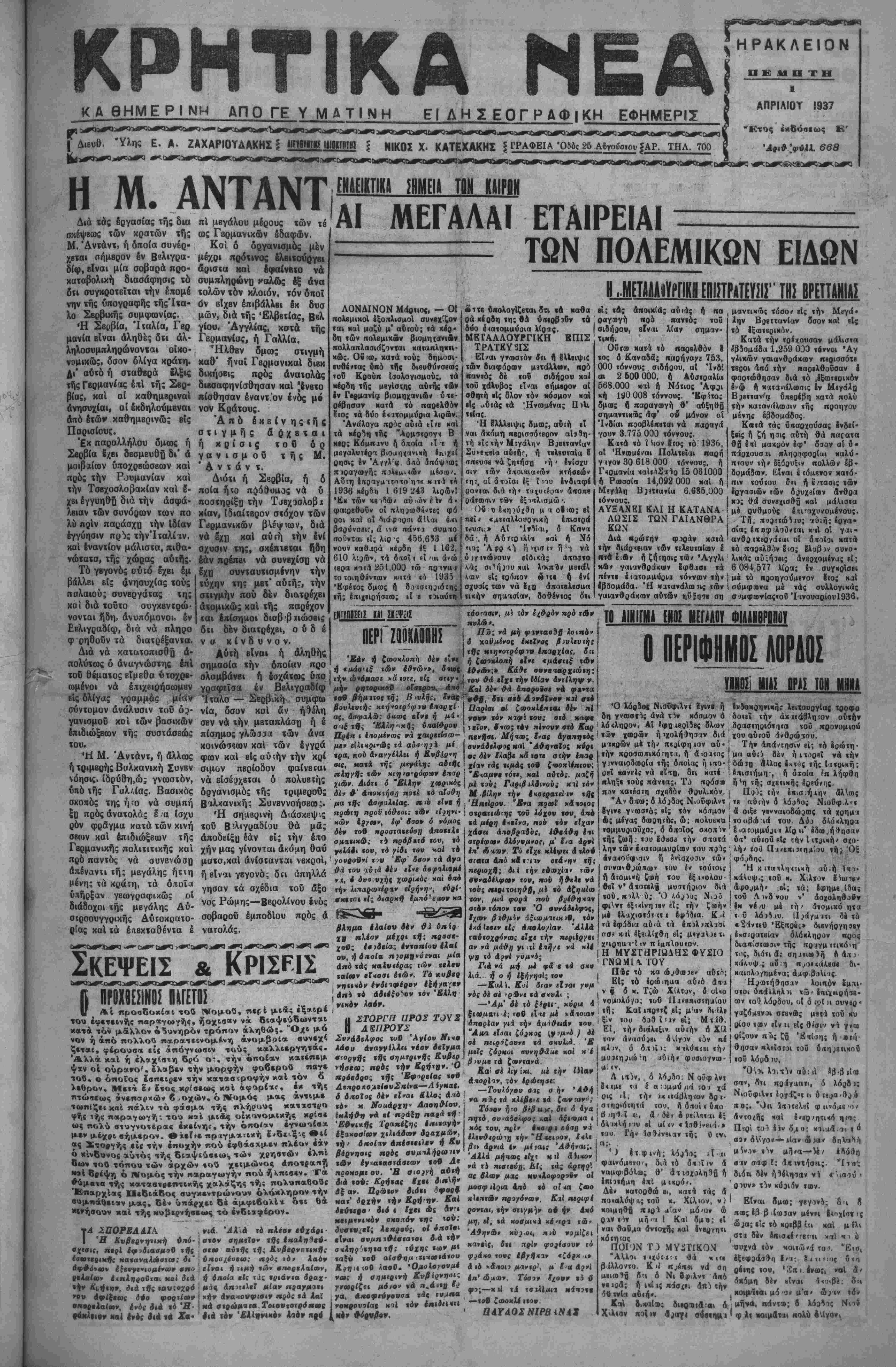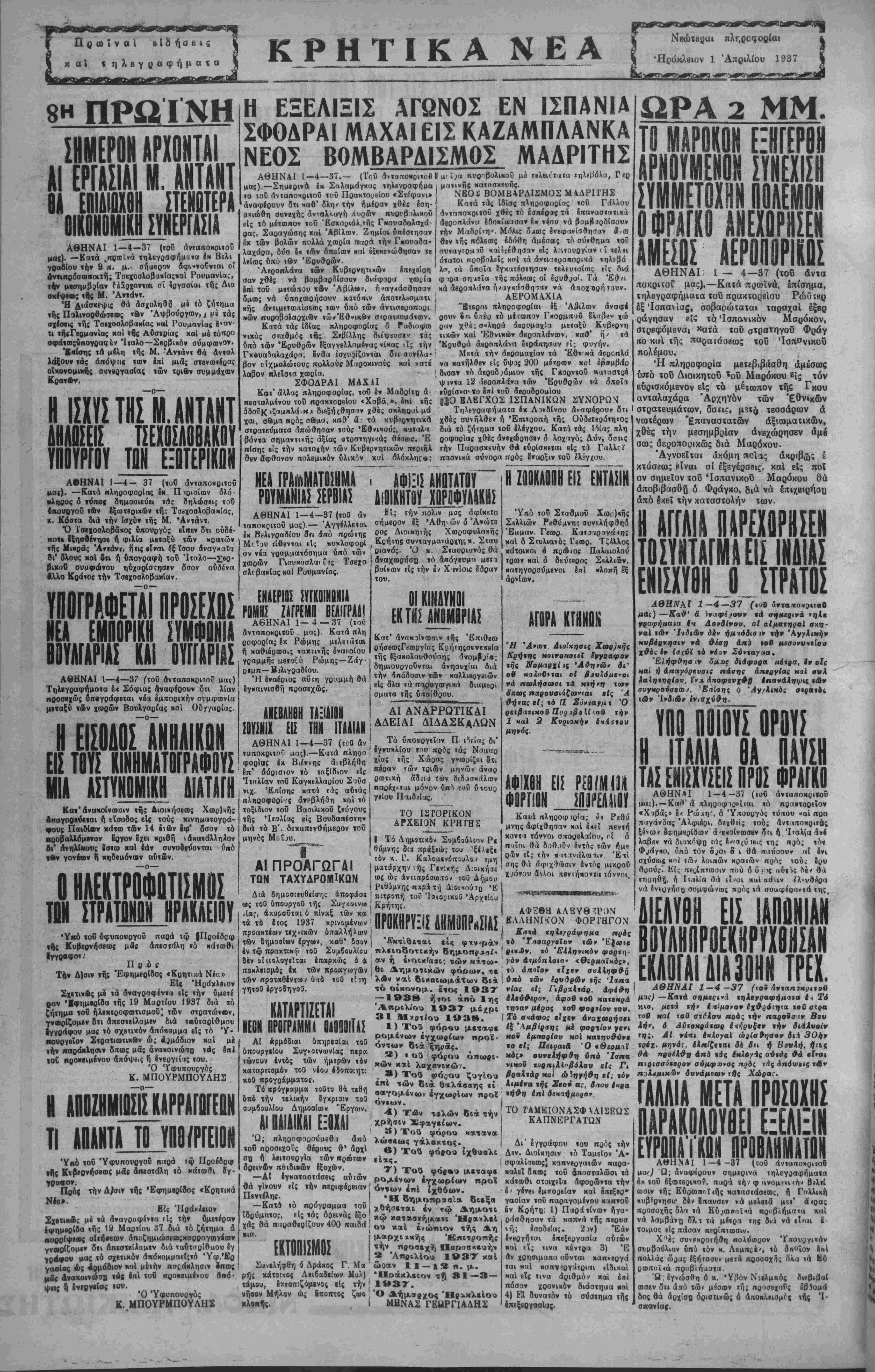 ! ΑΘΗΝΑΙ 1-4-37 (»ο8 άνταπΐκριτού