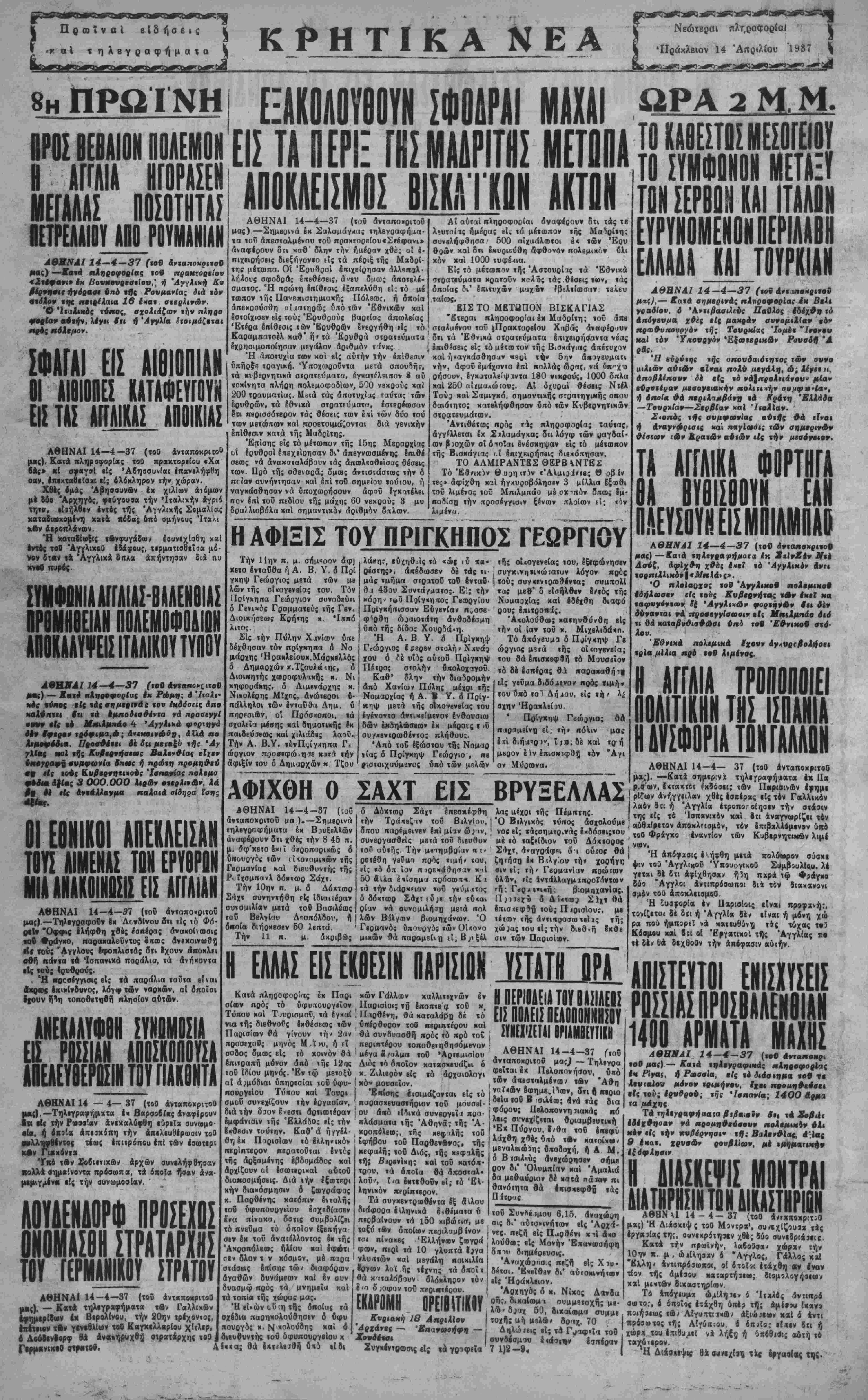 ΑΘΗΝΑΙ 14—4—37 (τού ανταποχριιο·