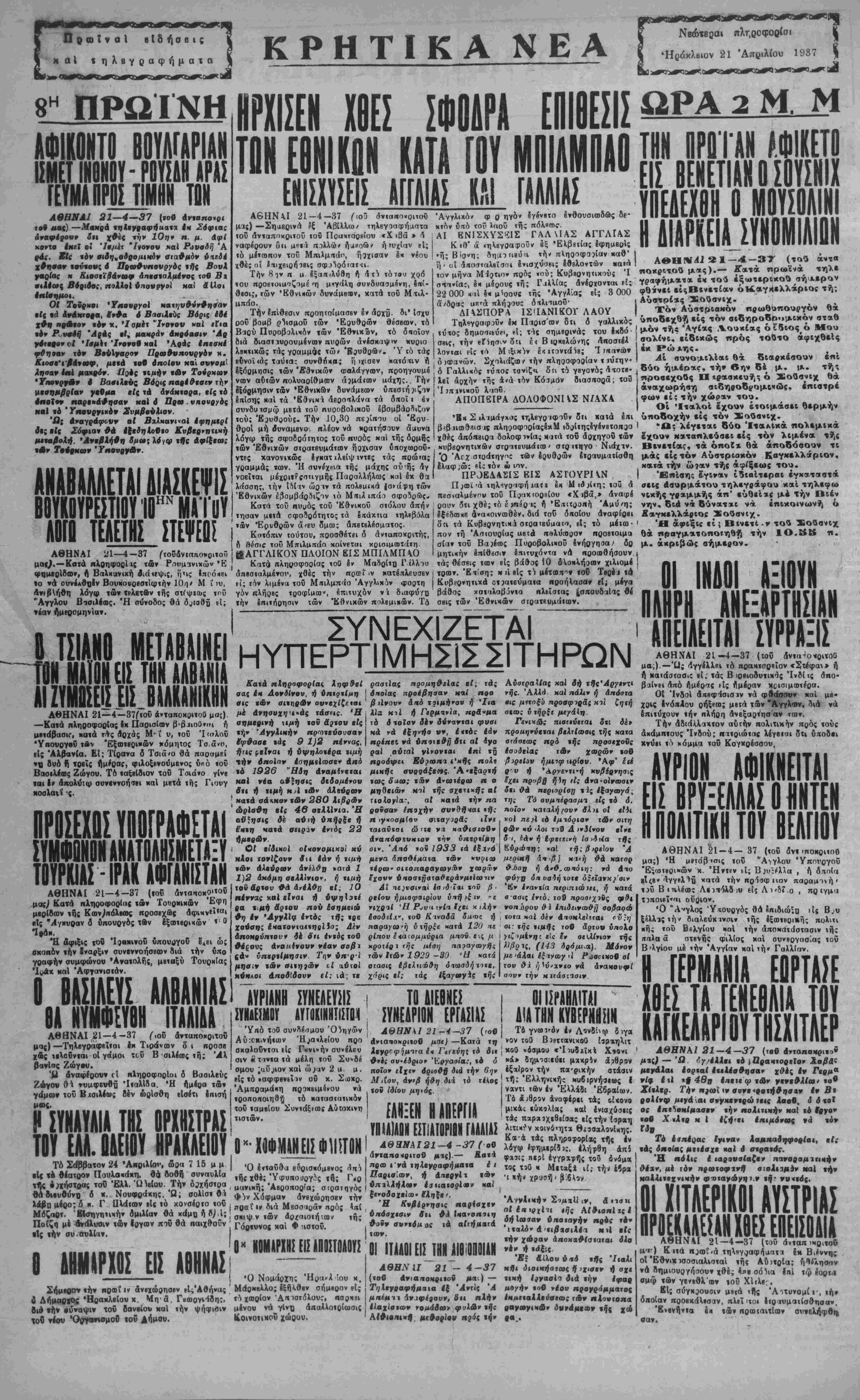 ΑΘΗΝΑΙ 21—4—37 (τού ανταποκριταί