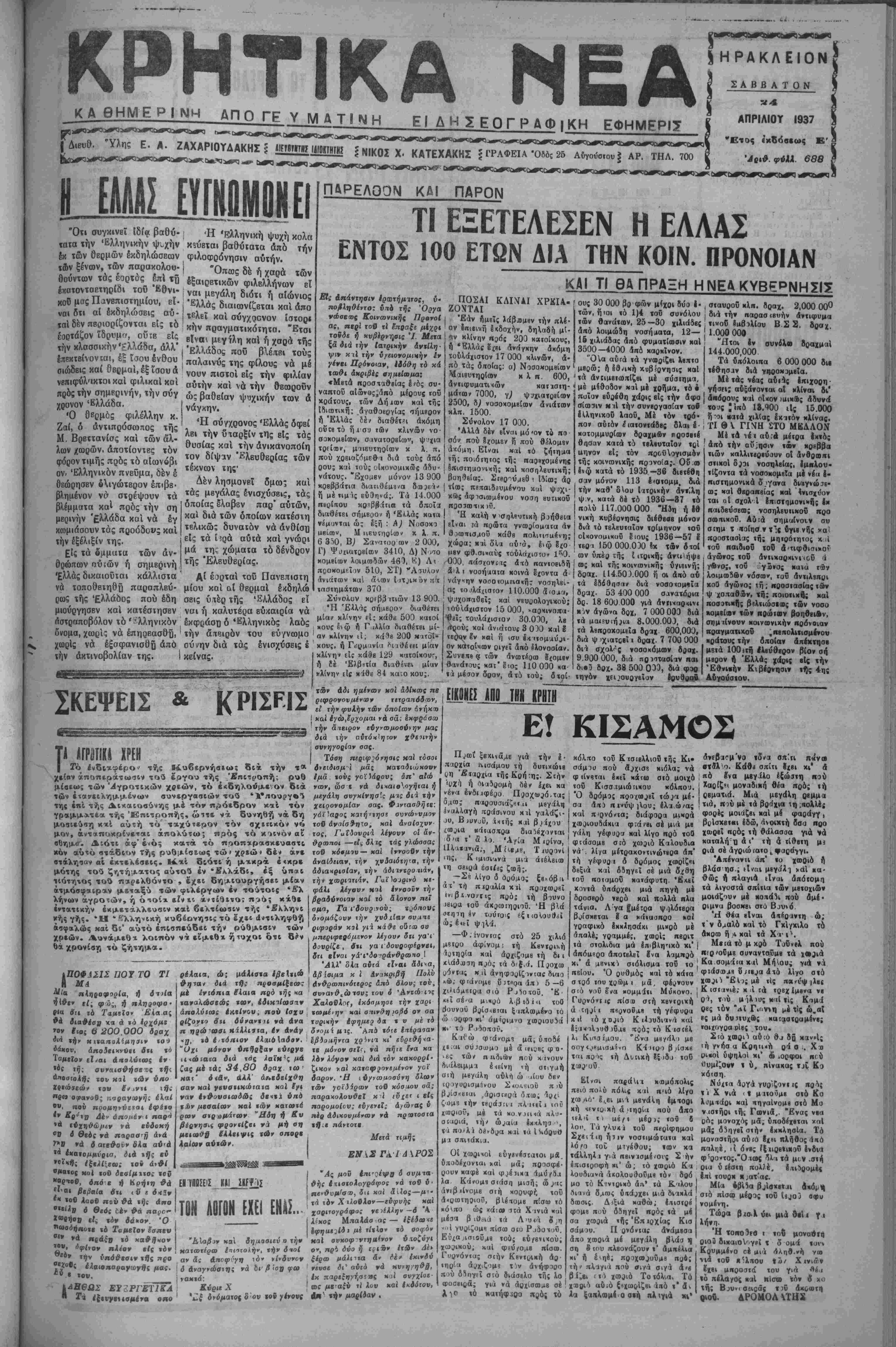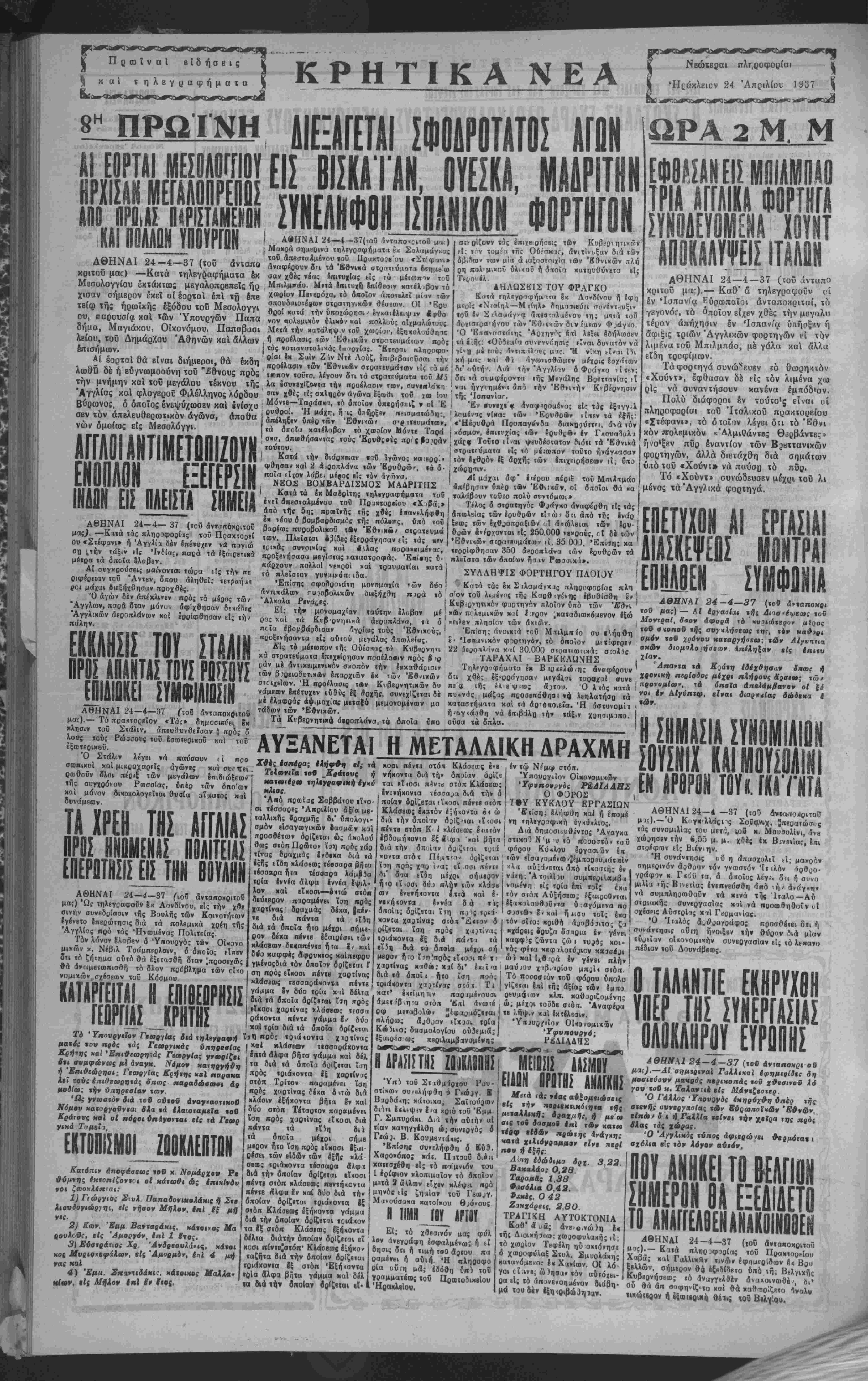 ΑΘΗΝΑΙ 24—4—37 (τοϋ άνταπο