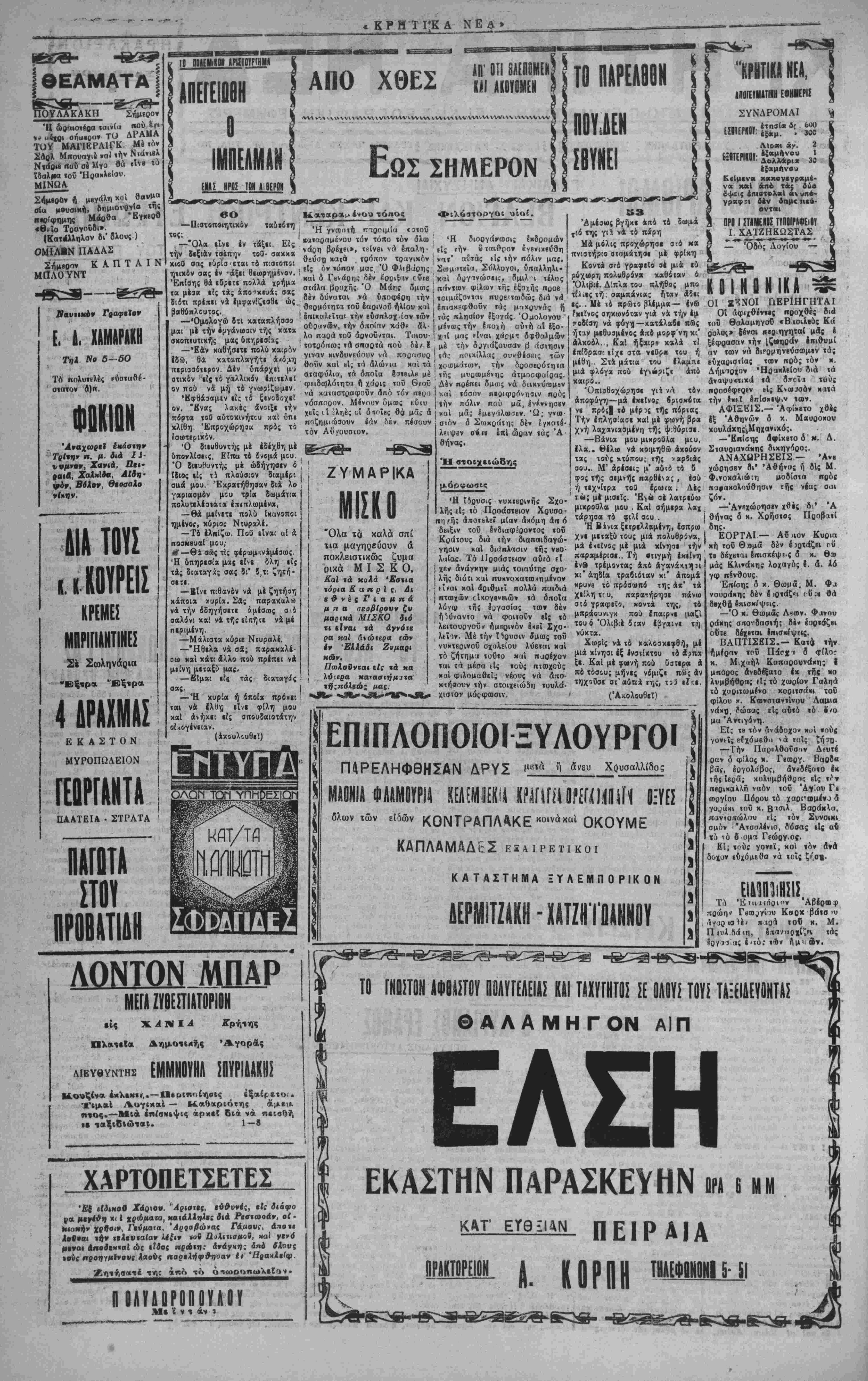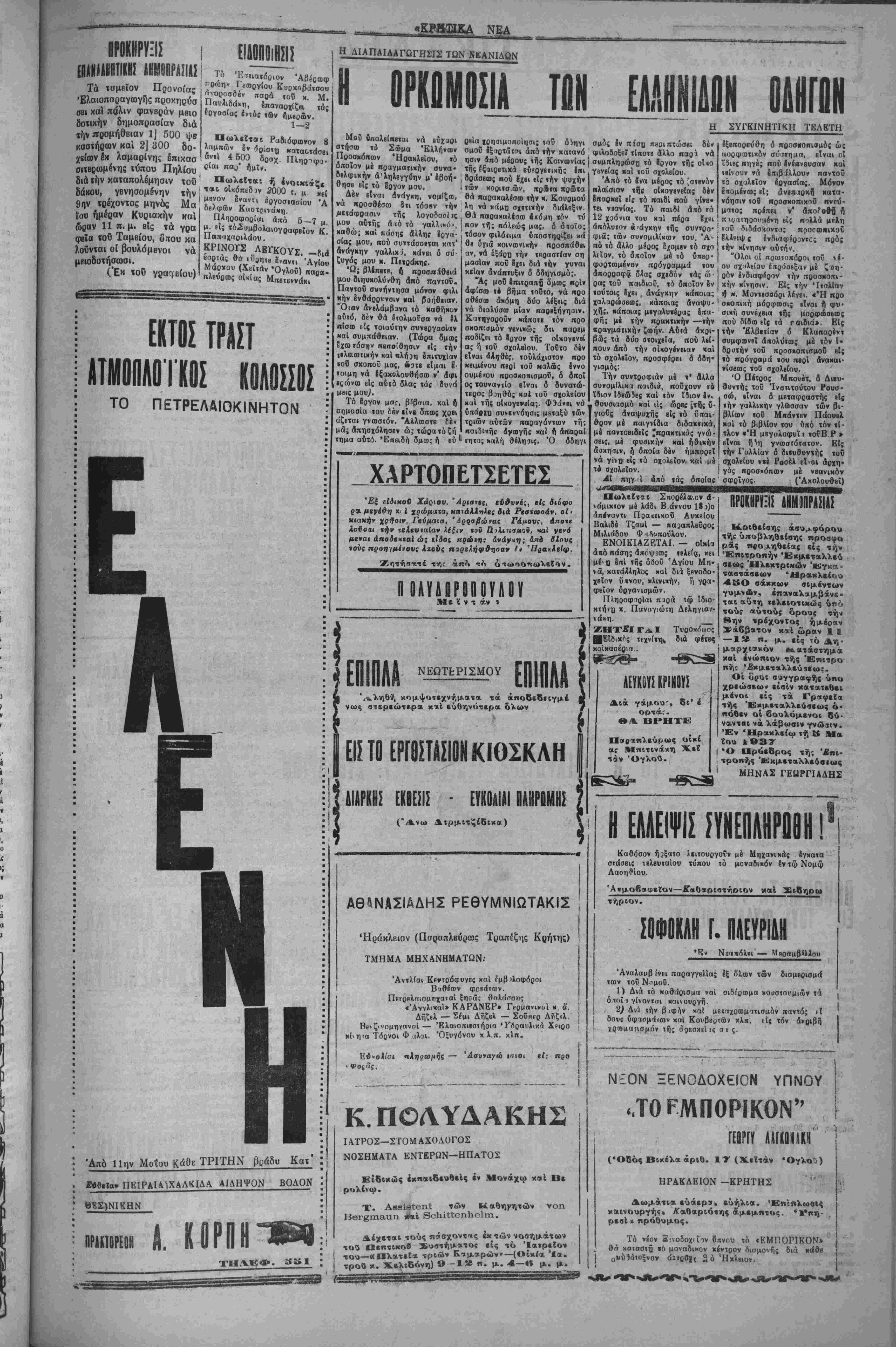 Άκριβΰς δέ ί<τί των προβλη- των, χιίνονται γενικαίς ώ; δβα* αύιοΰ έπέτυχεν νά κατα στήου αμφοτέρας έκ των ένθουσιωδεστέρων ςρίλων καί βοηθών των Κρη των. Ή δδοποιΐ» μας, ή προαγωγή μας ώ; τόπου, ίχοντος σπουδαίΐ/ζ άνάγ κάς άπό απόψεως έχπολι τισμοΰ >.αί προοδον, δεν