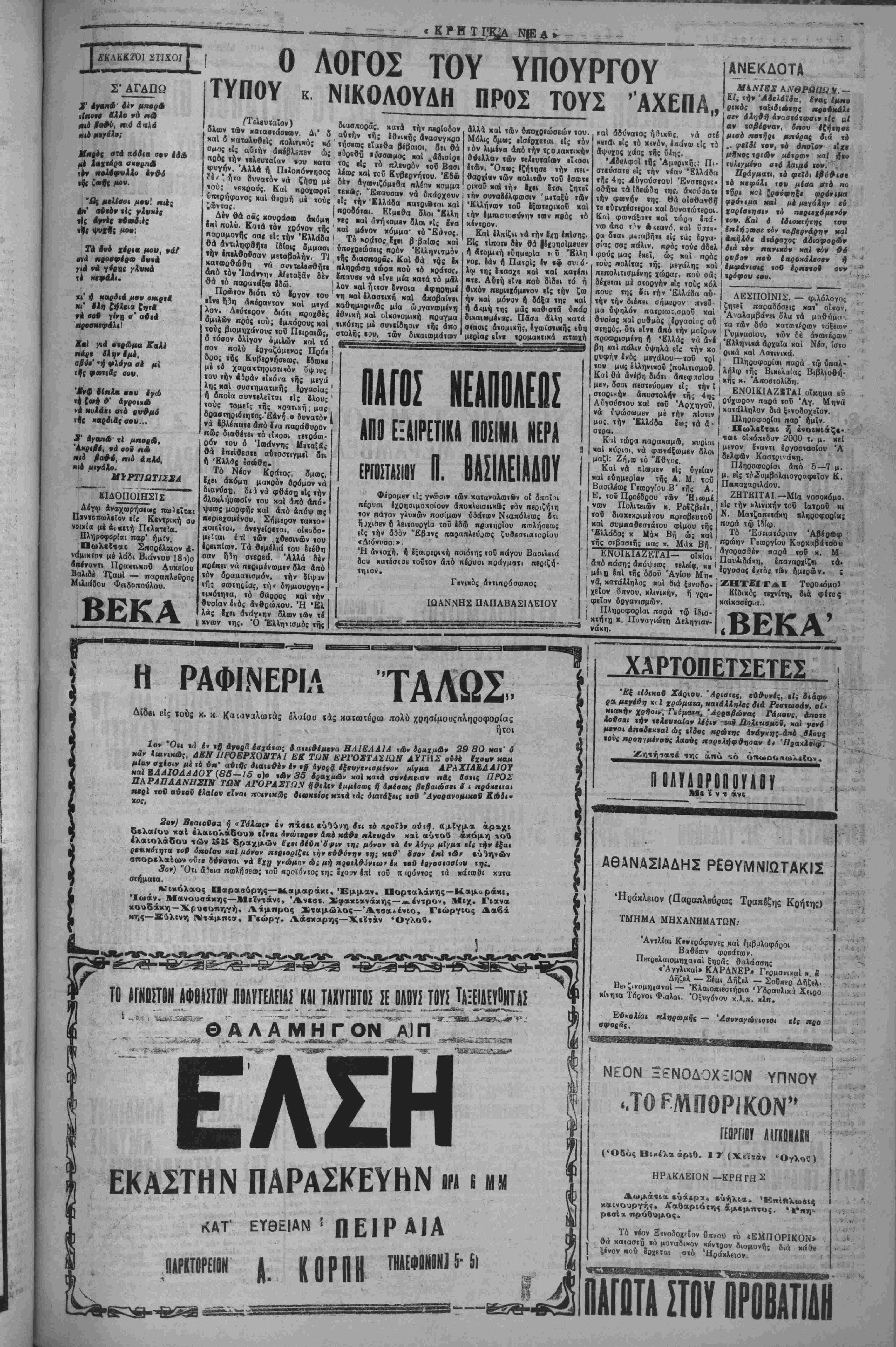 Τ*βέΡν« <ή άπό- ς τοθ Μηνά Κ*νδιρ4 η βτ4 μαγευτιχό Μαστα- μπ* έναντι έ ρ γ β ο τ. χ. τιμάς'ΑπολύτιοςΛαΐ κάς 5λοι τή Ρέγουλά σας ΣτοΟ Μηνά σία Μασταμπά. α. Μπετ.ινάκη "εί 600 300 2 1 30 εξαμήνου Κ<1μ<νοι κακονβγραμί- να καί άπό τάς δΰβ όψει; επιστολαί κ »ηό- γραφπ δέν δημ* ϊΐ«ύ- «Ο ί? βντ*' Εϊχβ αΐοβηνβή την 1ϊβ«.,ο Ι " "»«*"«««" άπέχθβια «ού ε.ιω^ε γιά τ-Νν Ι }££}Ι™:Η5»1^. γάμο —*ι' άποφαοιστικά —δ ^ — Όδό; Λ.ιγ'ου — π»; ό βουτηχτήί σιή θάλοσοσ, 5 ίίχβ οιχτεϊ οτή καινούογια Ιωή. Ή φοόνηιις %χζ §Λ''β.λ?8 νά „ _ ^ . πανΐθϊυτή ην Μ σελ γιά την II Ι] Ι Ν [1 Ν | Α λ ί.Τ£Γ ' Θ. ίίΪΓ||'ί·Γ! ' «νΤΥΧ'Μ ΑΡΡΑΒΟΝΚ. δΐι ηληςωνε κάτι Ληό τή-ύ«ο -10.*· Β«!'ορ« Βικη»οη'υ- χιέωσίτης ο' 1>ιεΐ>ον η<.> «ήν λ°ί Ειιποοος Αθηνών κ 1η