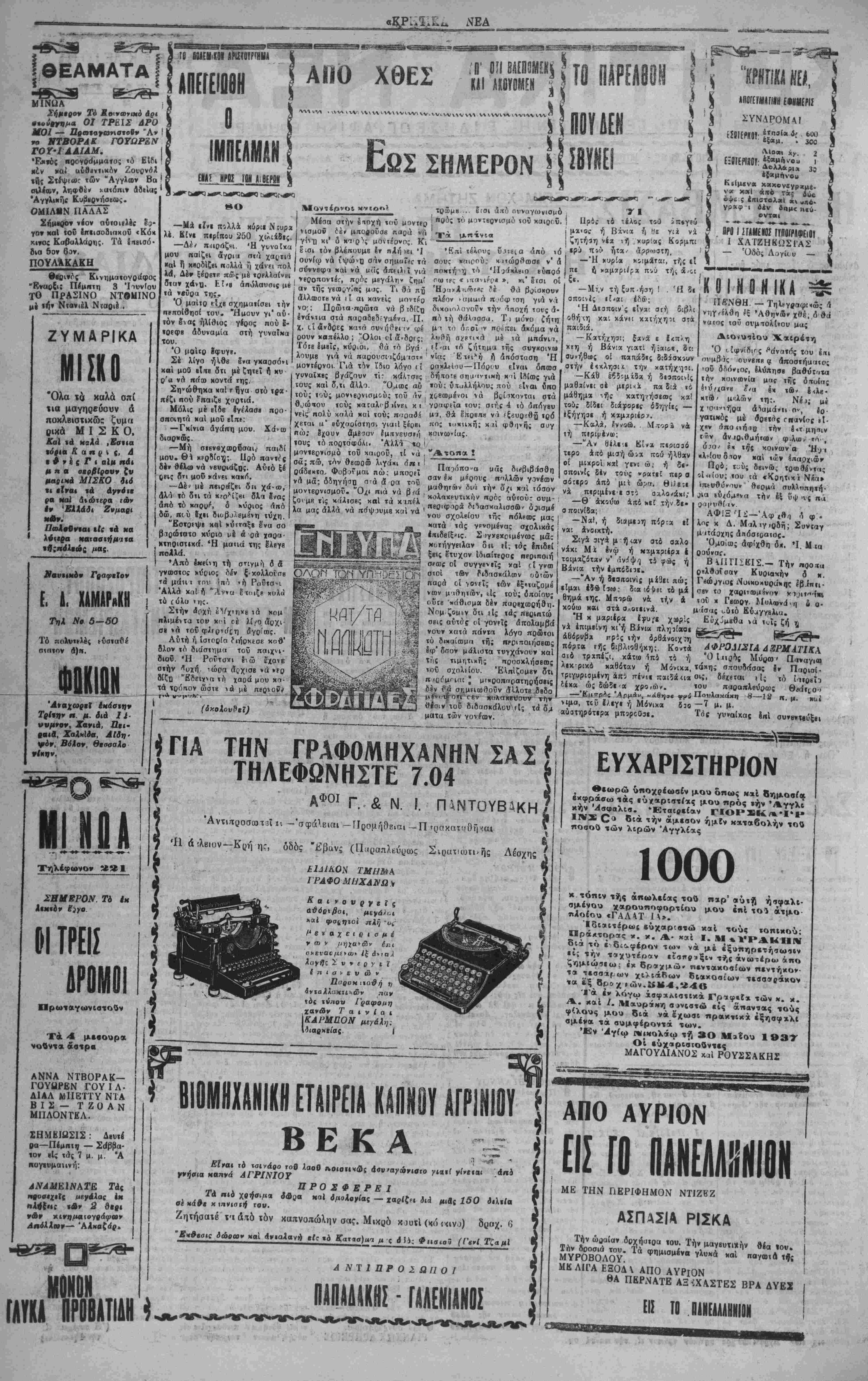 ΑΘΗΝΑΙ 2-6-37 (τοϋ αντα«οχο»»οδ μ).-Κ*,* «λη