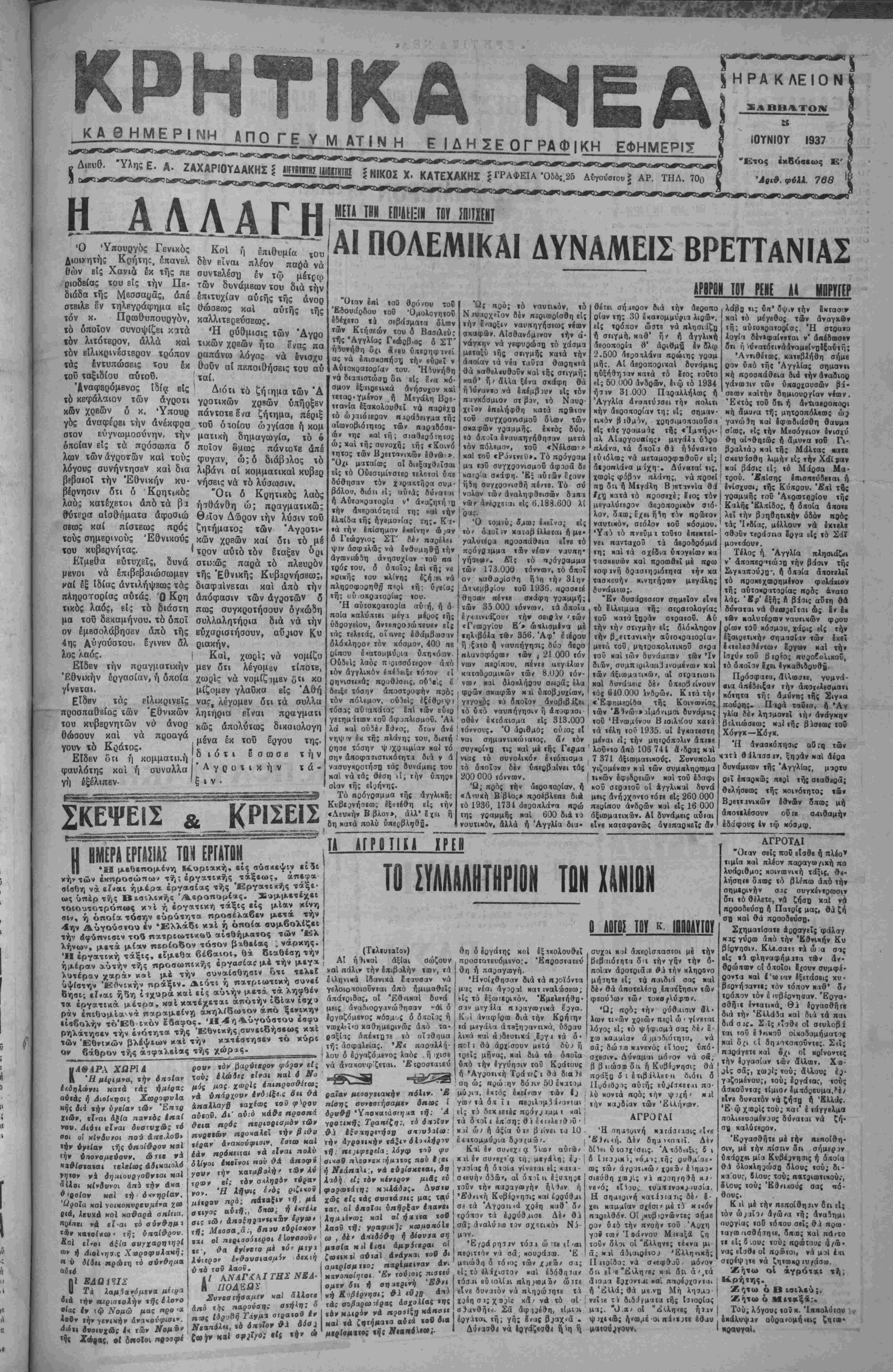 ΑΘΗΝΑΙ 5—6—37 ^ΐοΰ άνταποχριτοϋ μας)