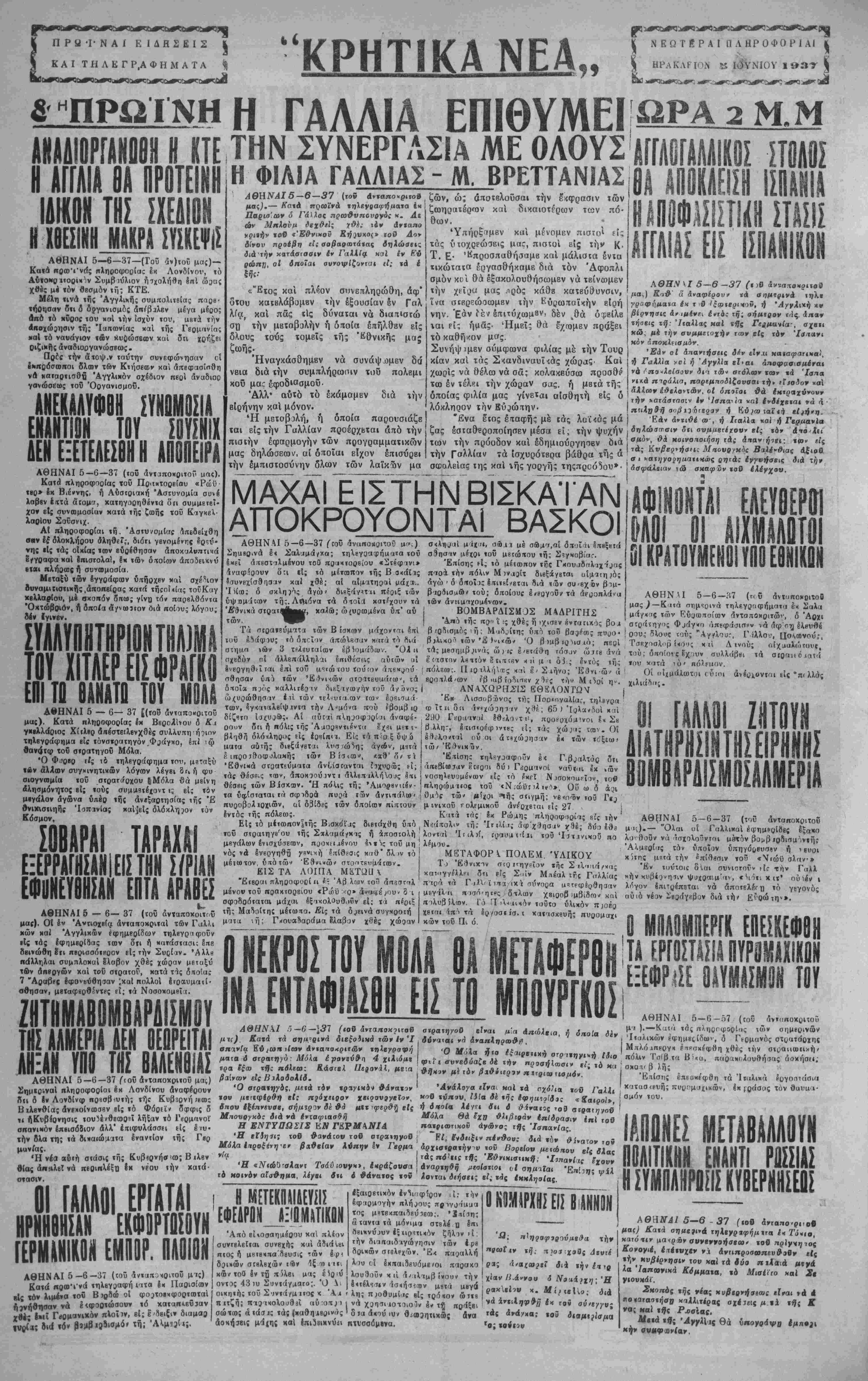 κπτασ<8υτι; πυυπμαχικών, ίκ τράσυς τόν θαυαα- σμόν «ου. Μόλα θά εχΏ &Χίβι9άν επίδρασιν επί τού πβιΐριαΐΓΐχοϋ άνώνο; τής Ίσπανίας. Εί, ένδΐίξιν πένθο,,Γ διά τόν θΐνατον τον Αρχιστράτηγόν χον ΒορεΙου μειώηον είς όλας τάςπό'ειςτβς Έθηκισΐική; ·1ιηα·1ις ϊχανν Λναρτη&ή ΜεοΙστια (,1 αημιϊαι Έτιίηη; Ψί λονται διήαεις εί; τβς έκκλησίας. ΟΙ ΓΑΑΑΟΙ...Ε Β1 ΣΑΝ ΕΚΦϋΡΤΩ ΓΕΡΜΙΝΙΚΟίΙ ΕΜΙΙΙ ΓΑΤΑΙ Ρ. ΥΝ ΟΝ ΑΘΗΝΑΙ 5—6—37 (ΐοϋ αν»αΐΓθ«οιΤοΰ μις) Κατά πα.α>'»·νά «ηλβγοαφή πτα βκ Παοισίων