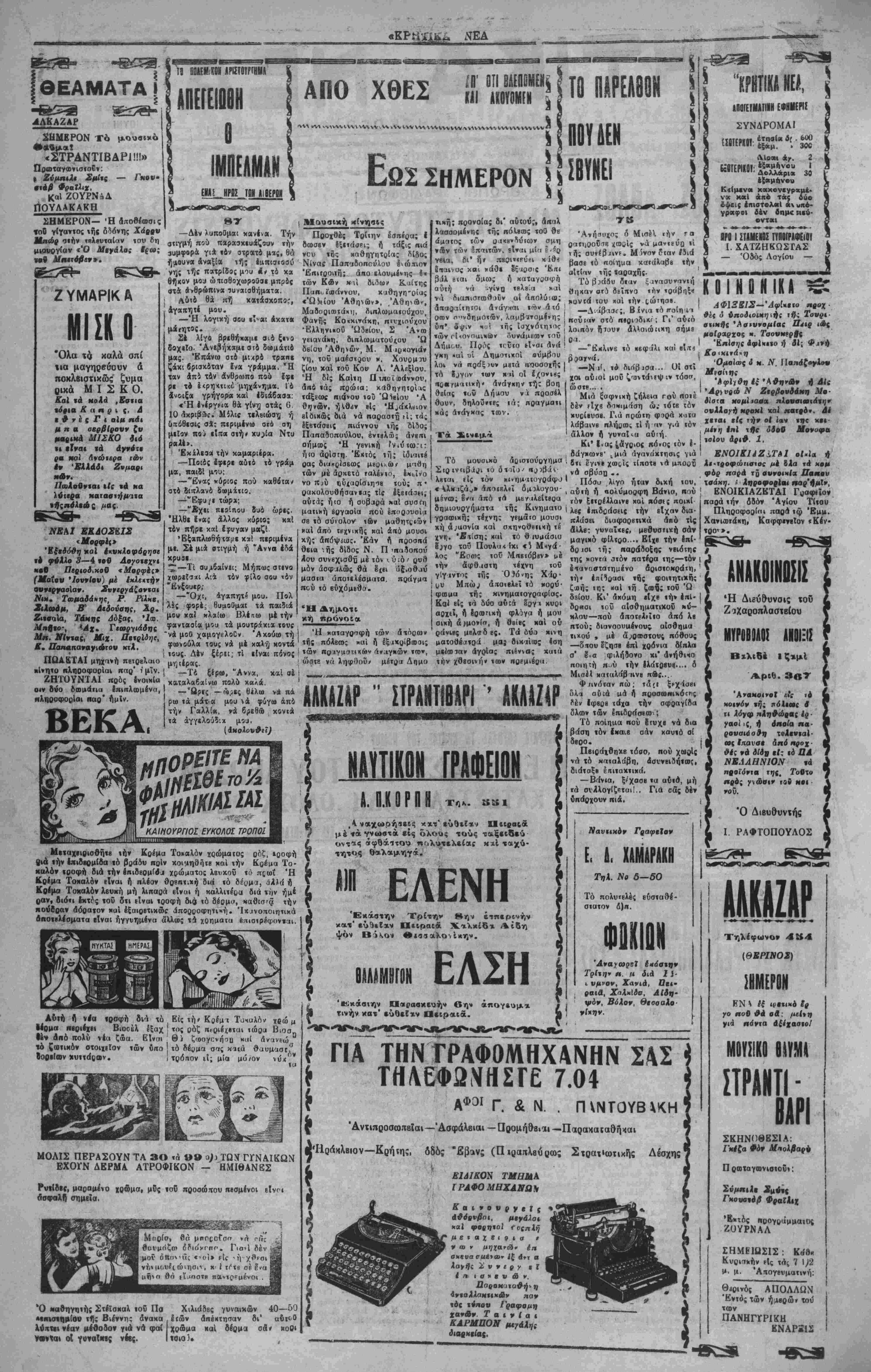 Τό Κρητικόν πιρΐπτιρον συ*εκέν<ρωσε χ δοκετοΰ; ίηιβχίητας, αί όηοϊοι έ&αύμα «α*> «ά Κοη«4*(ά προΐόντα.