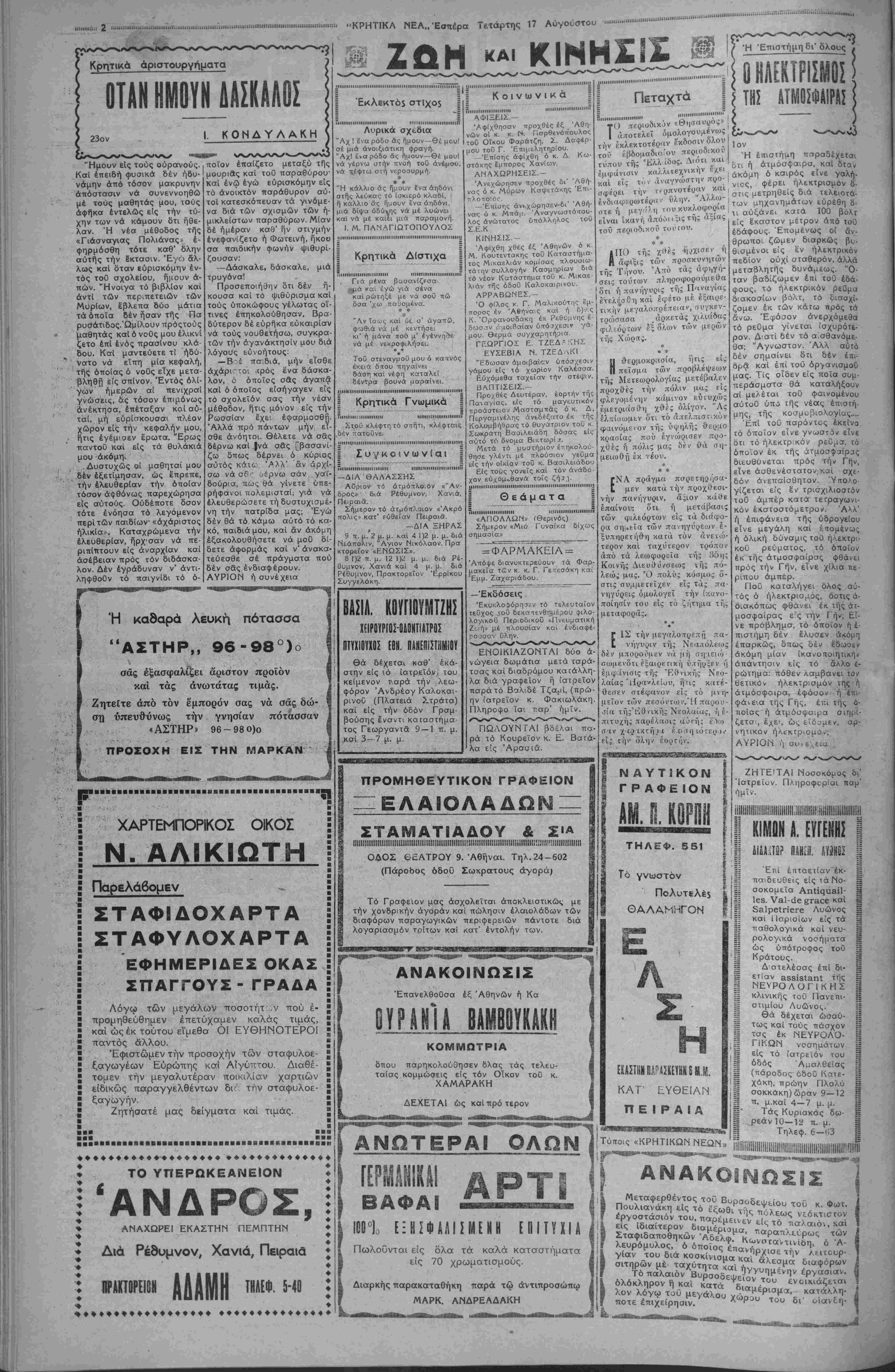 ΑΘΗΝΑΙ 17-8-33 (τοθ άνταποκριτοΰ