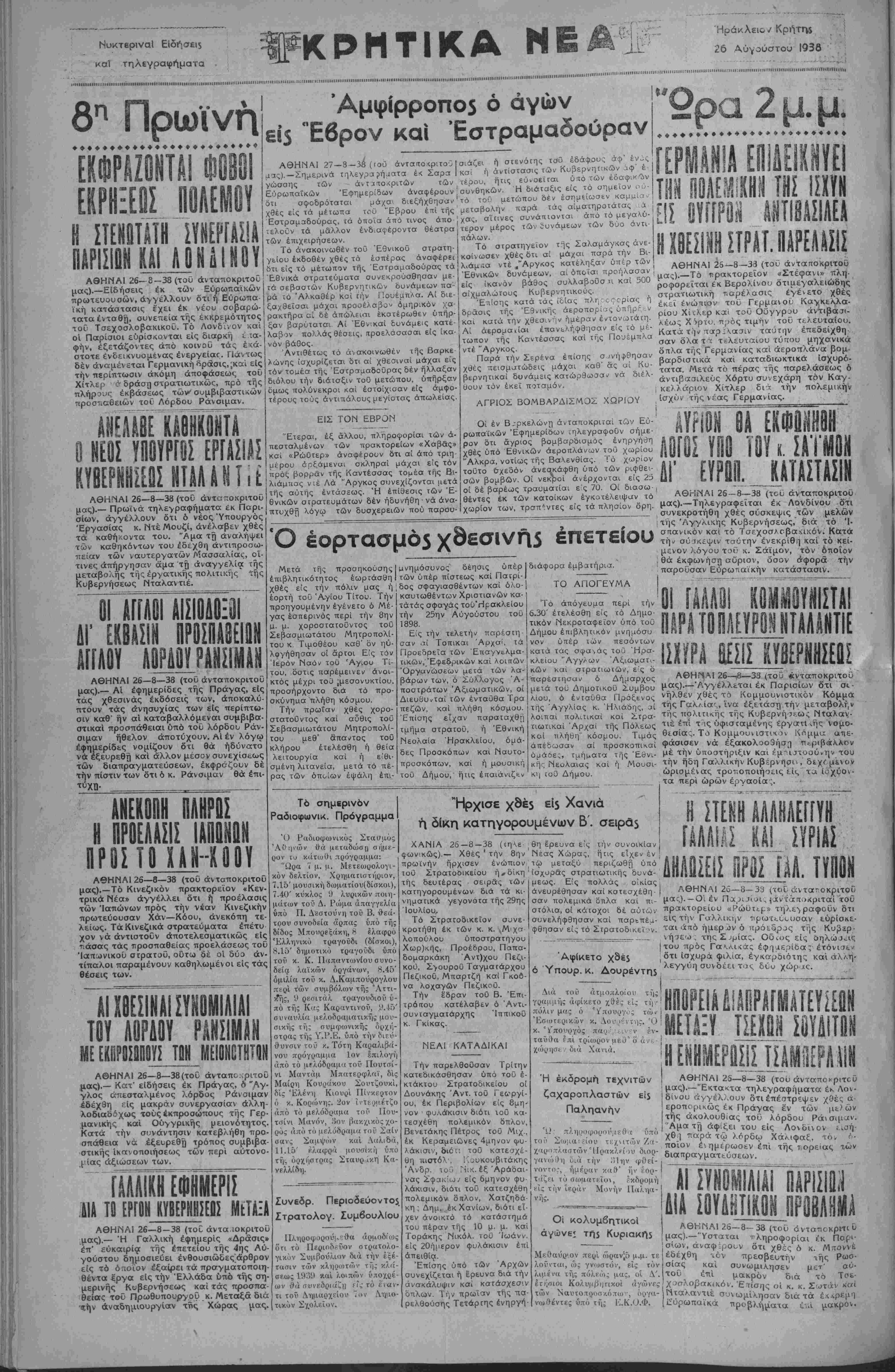 ΑΘΗΝΑΙ 25—8—38 (τού άνταποκριτοΰ