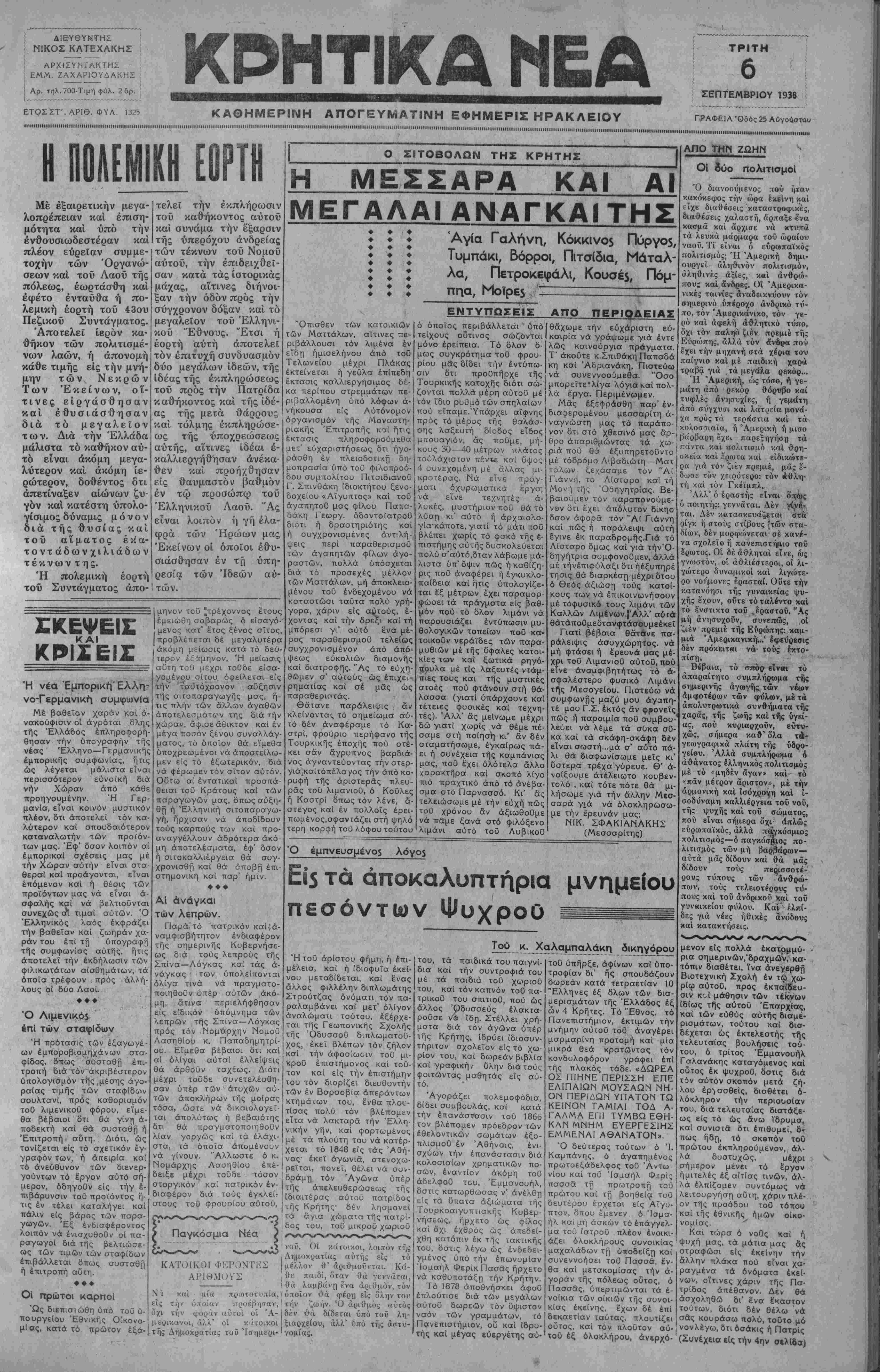 ΑΘΗΝΑΙ 6-9-38 (τοΰ άνταποκριτοϋ