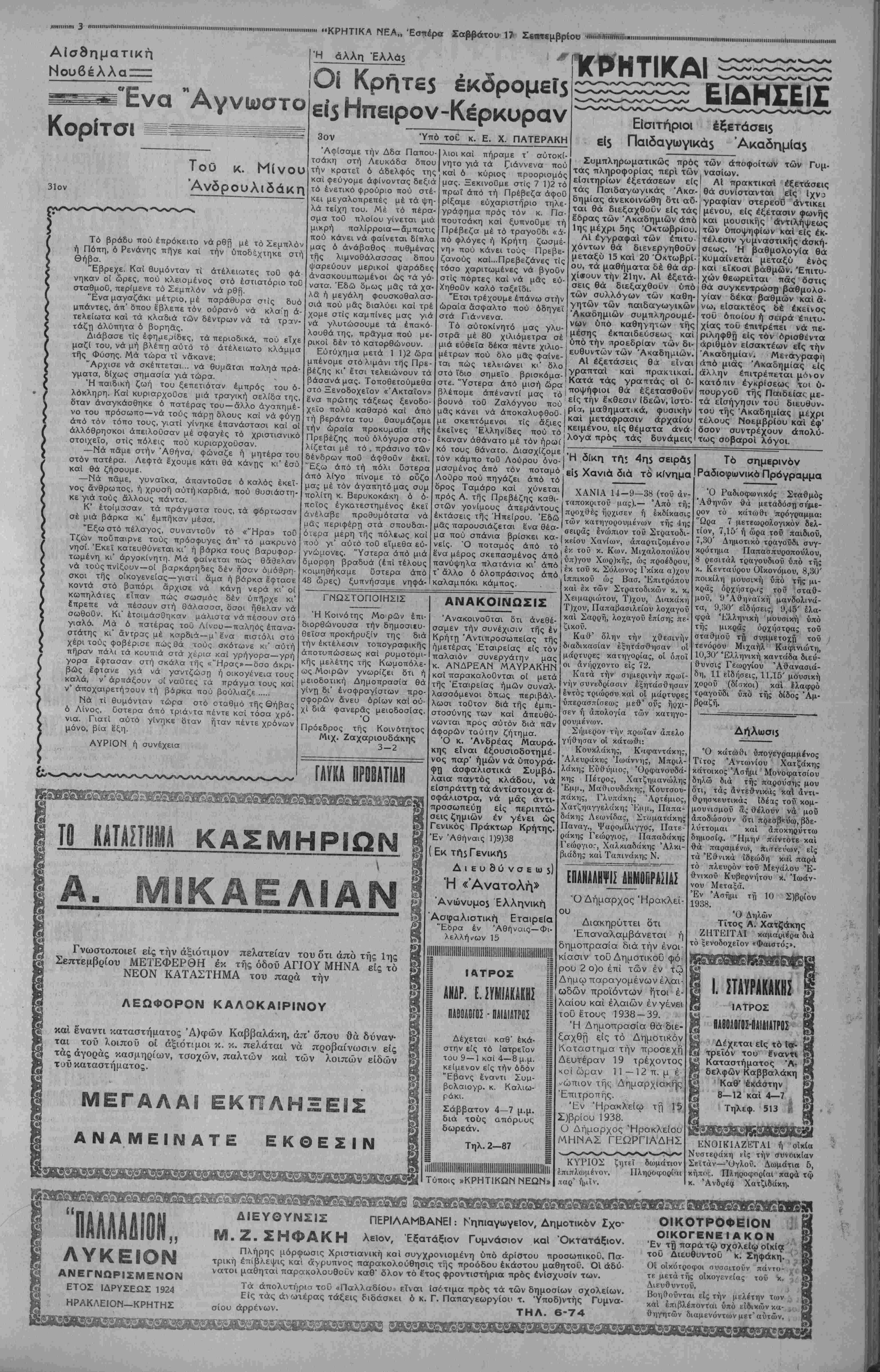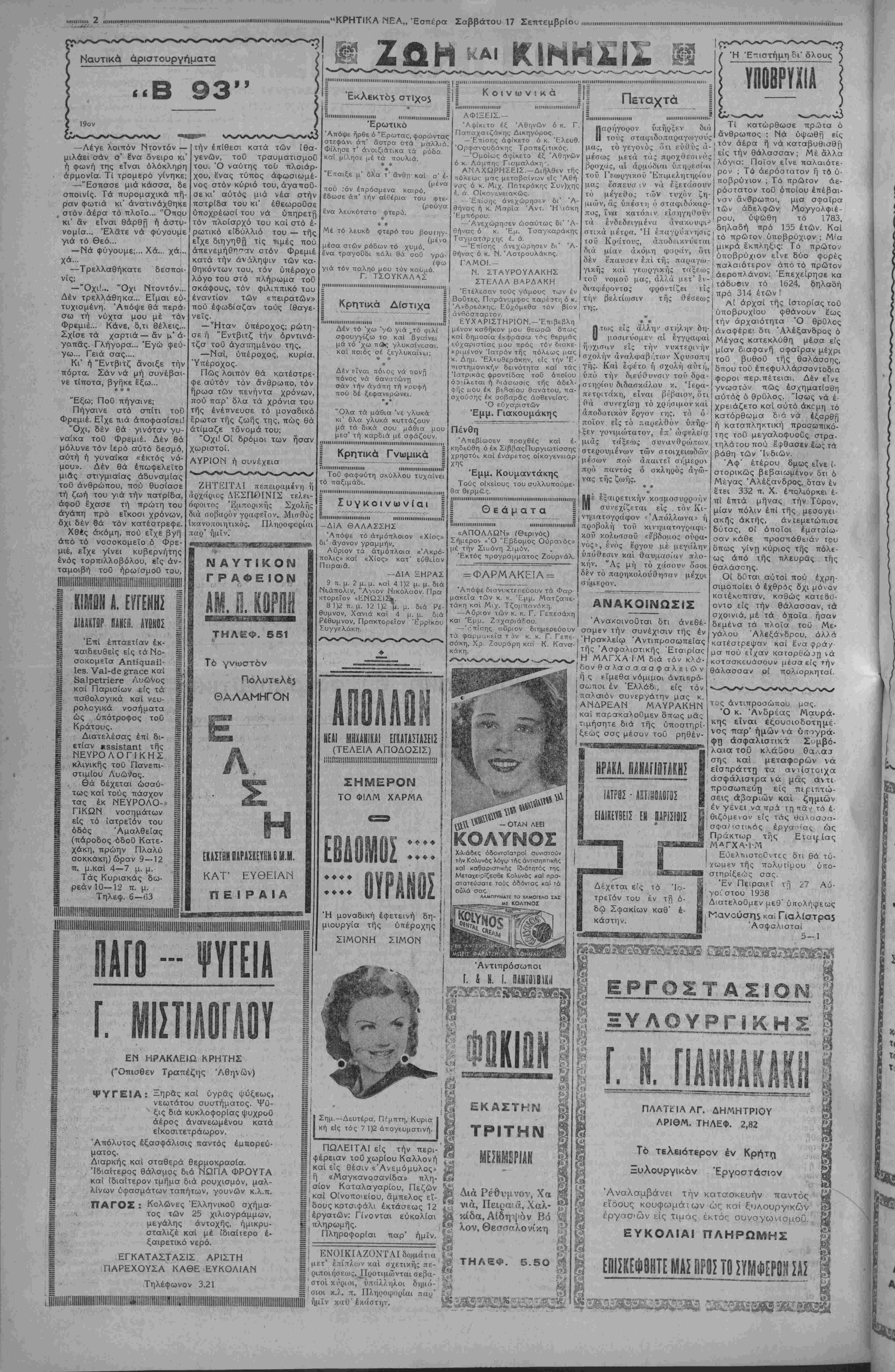 ΑΘΗΝΑΙ 17-9-38 (τοΰ άνταποκριτοϋ