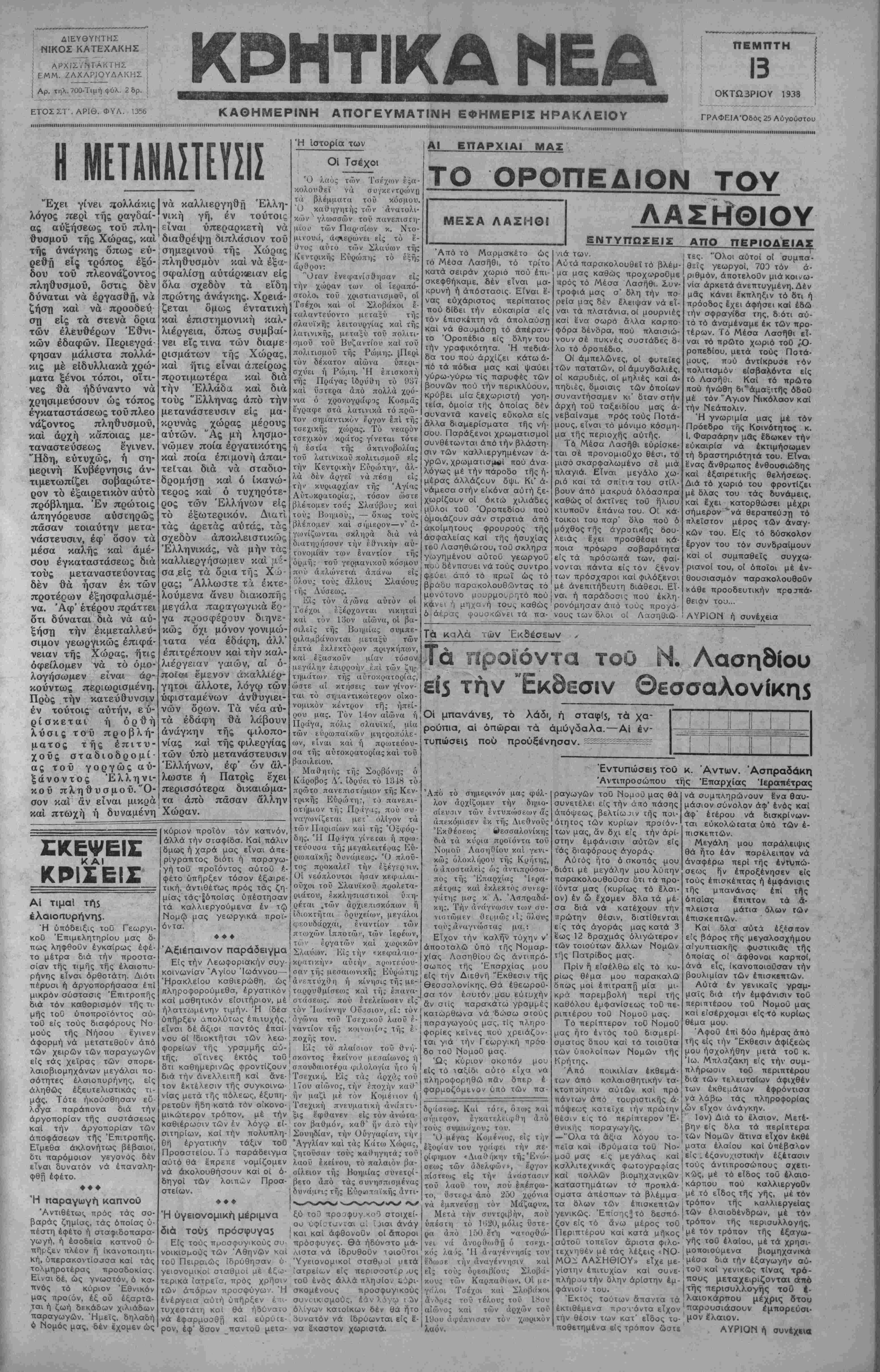 χθη σημερον την πρωΐαν δ Νομάρχης Λασηθίου κ. Πα-