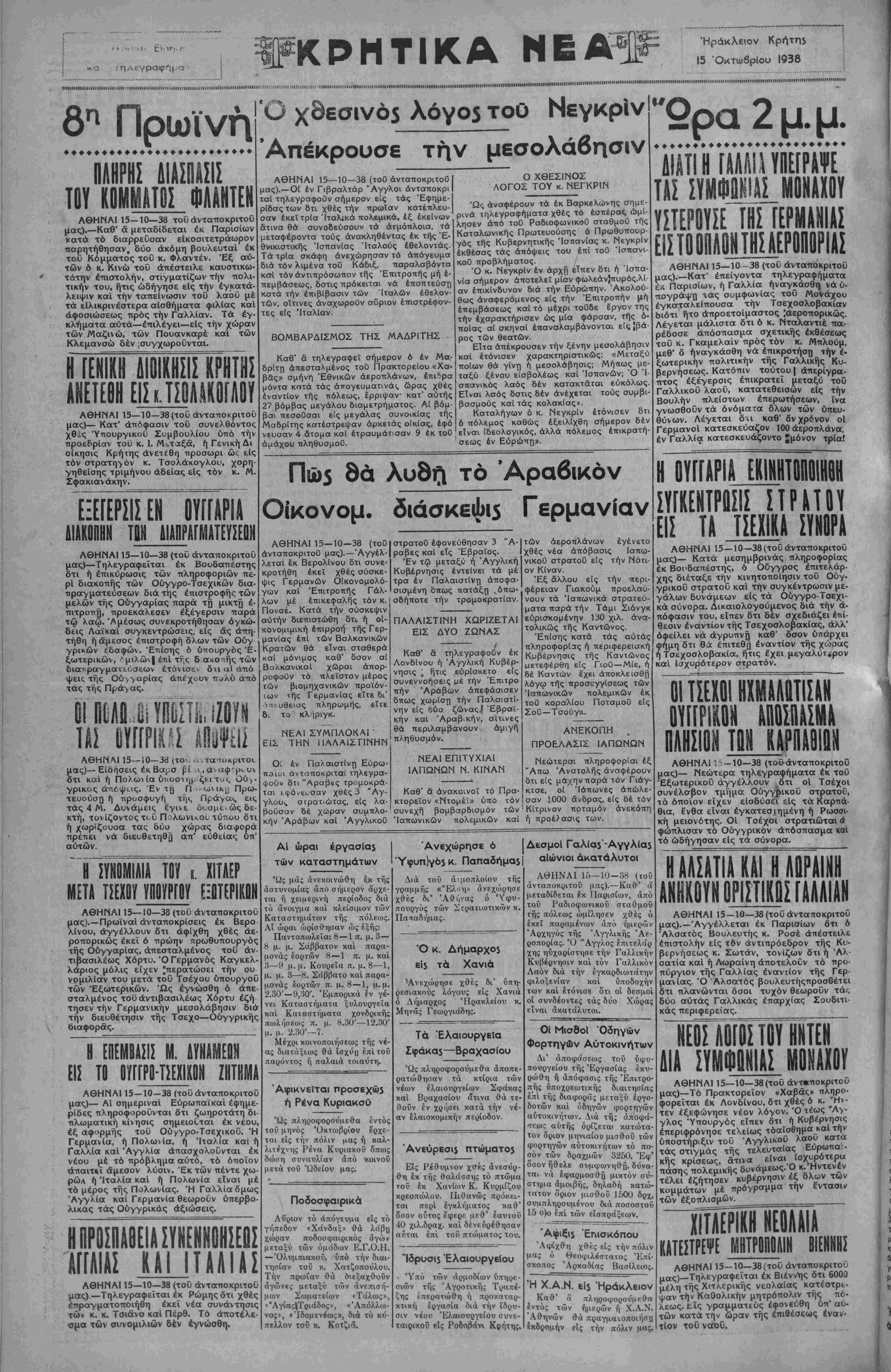 ΑΘΗΝΑΙ 15—10—38 (τού άνταποκριτοΰ