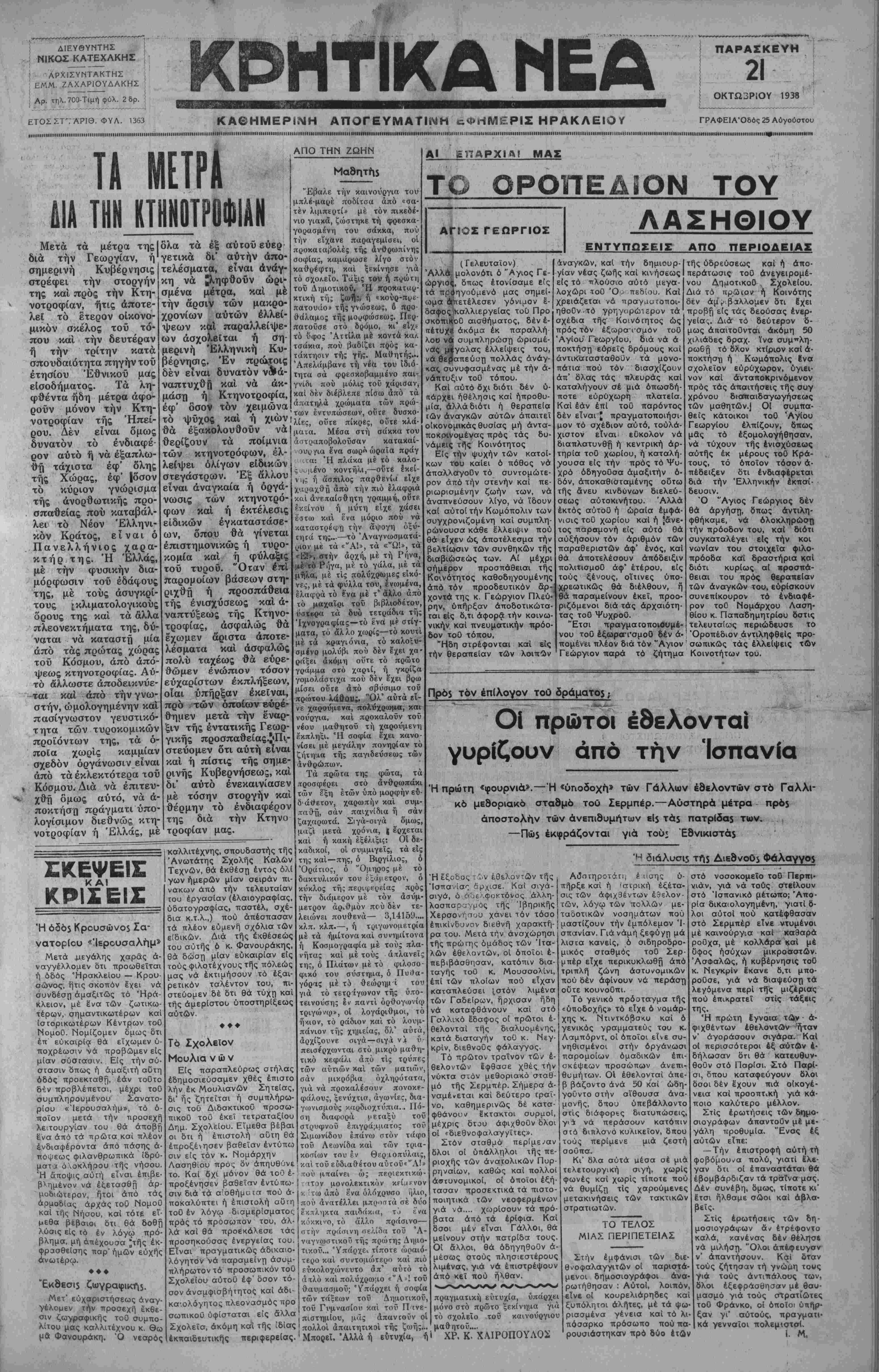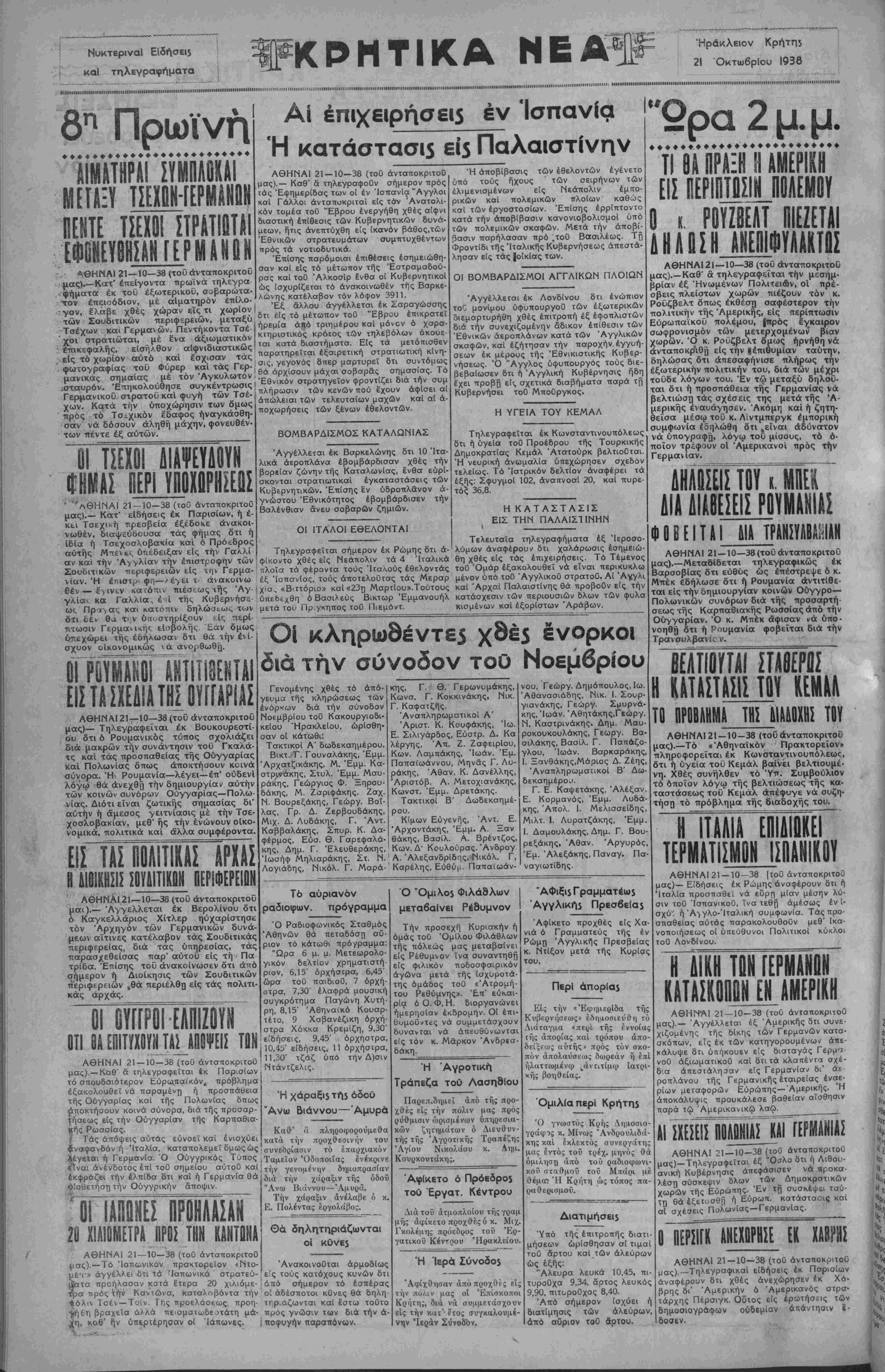 ΑΘΗΝΑΙ 21—10—38 (τού άνταποκριτοθ